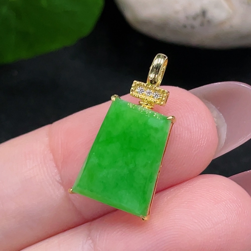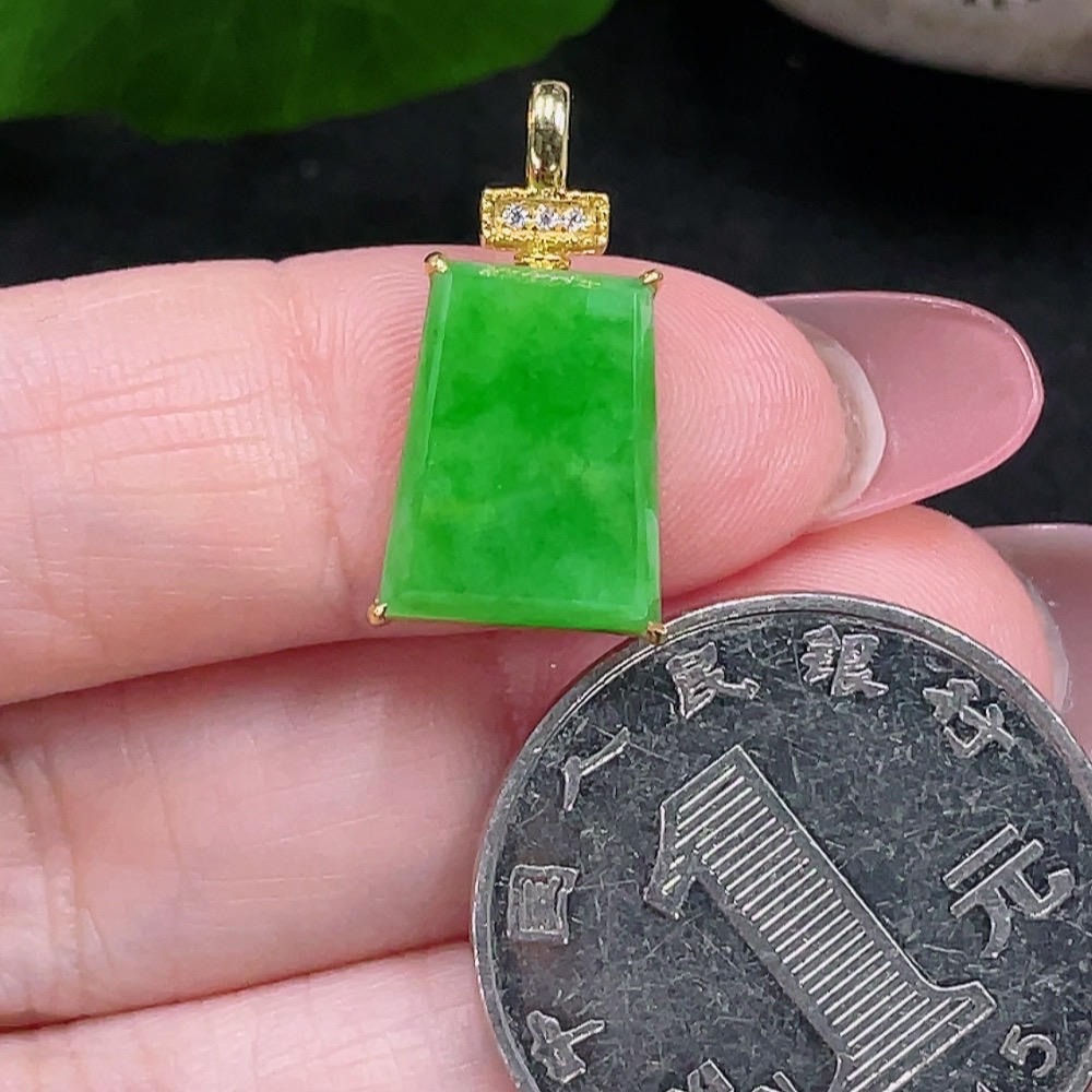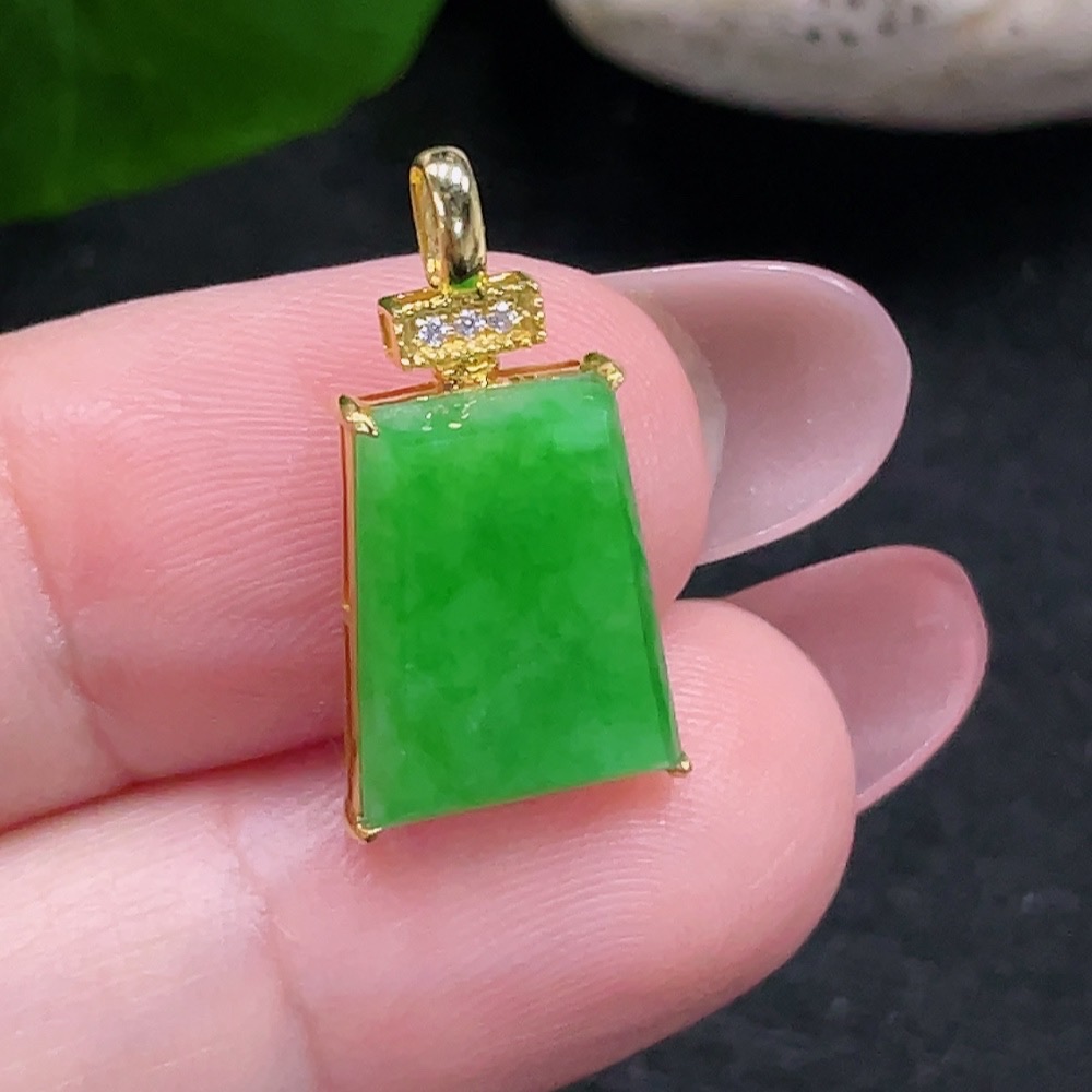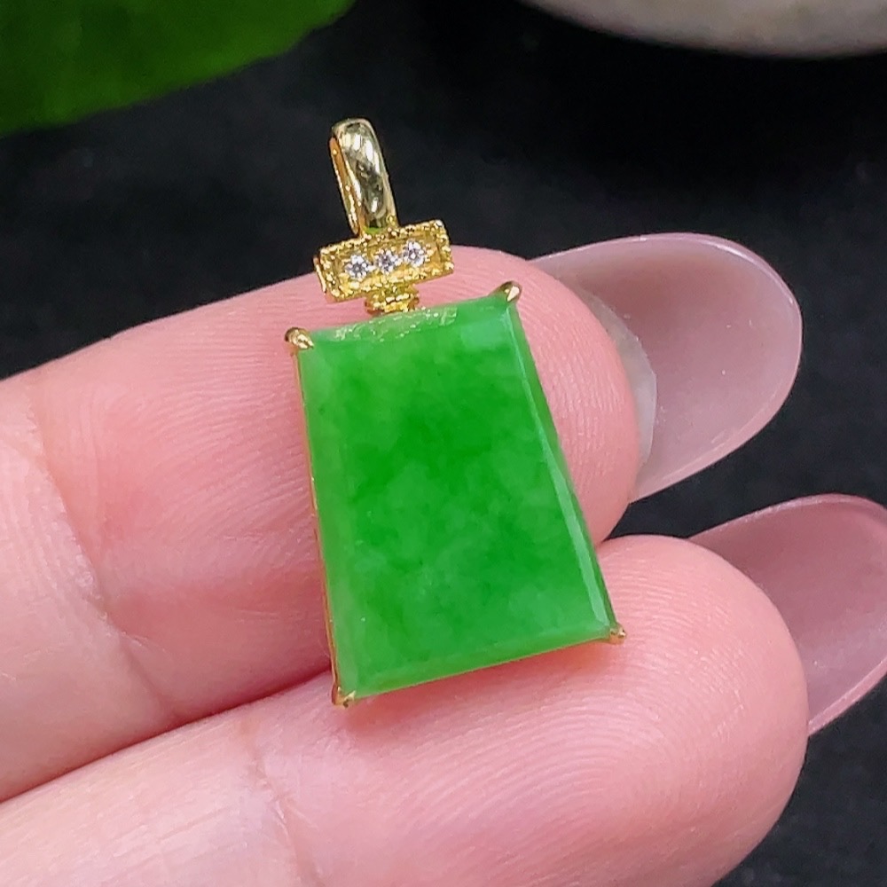 Jadeite Inlaid Pendant 18K Gold Total Weight Approx. 1.6g