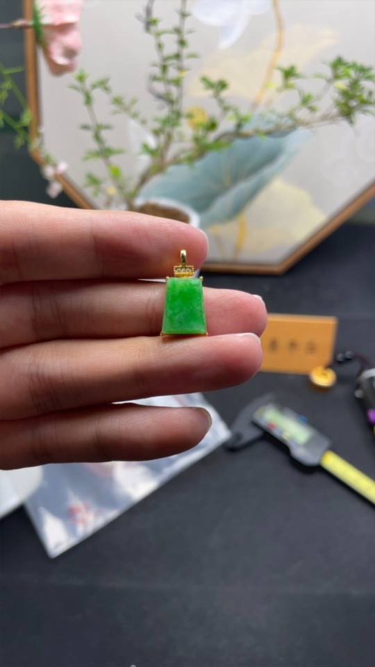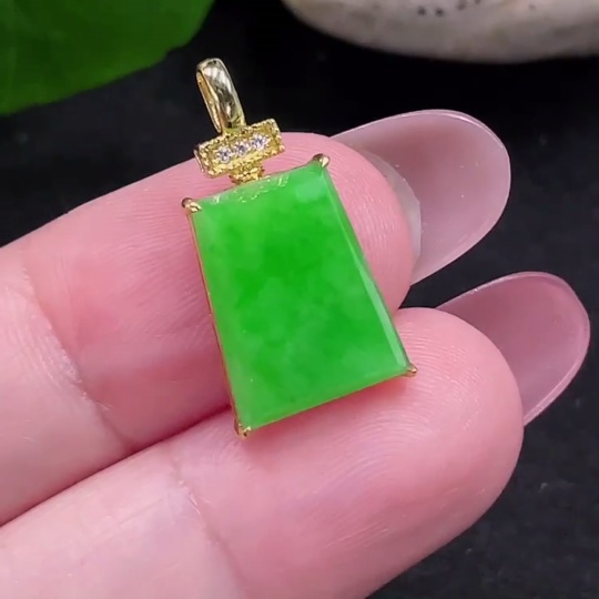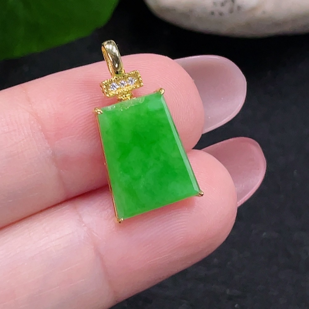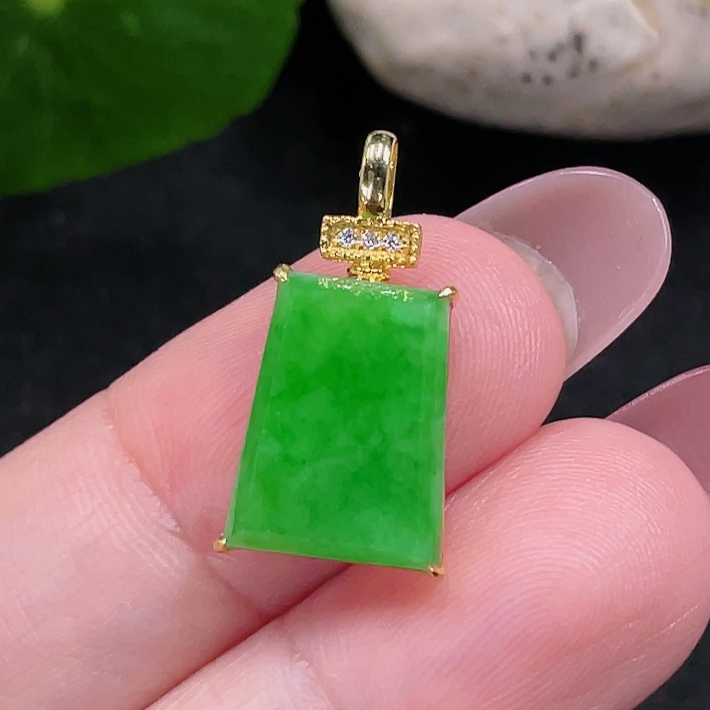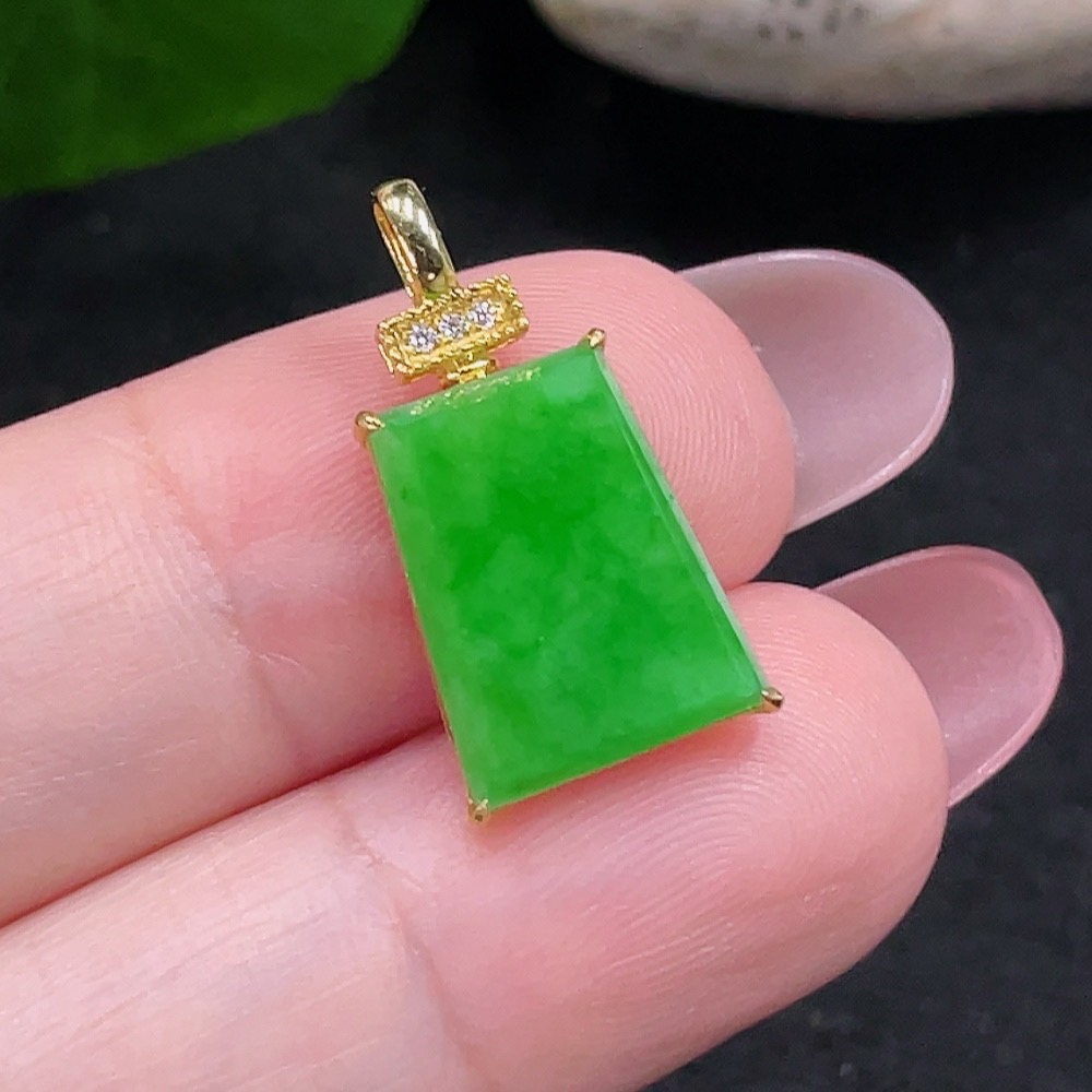 Jadeite Inlaid Pendant 18K Gold Total Weight Approx. 1.6g