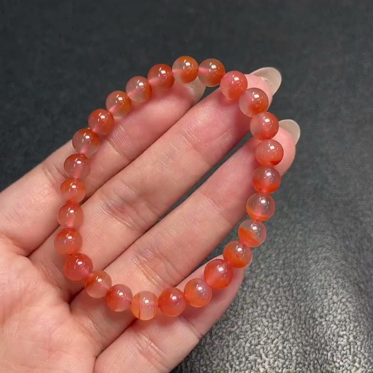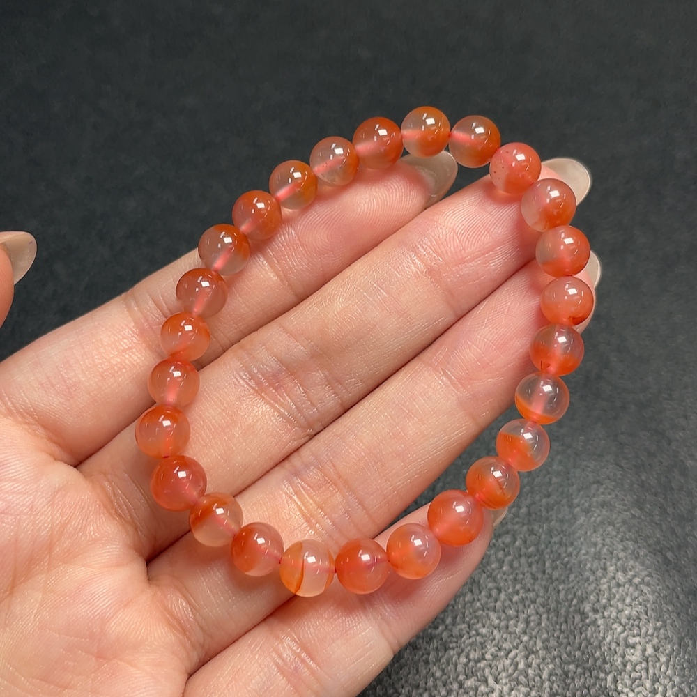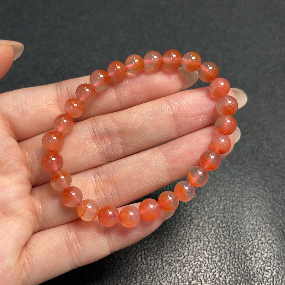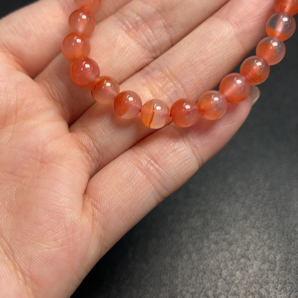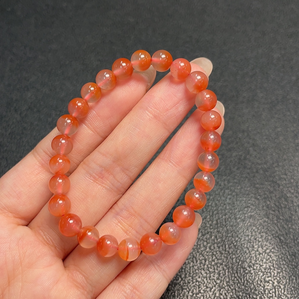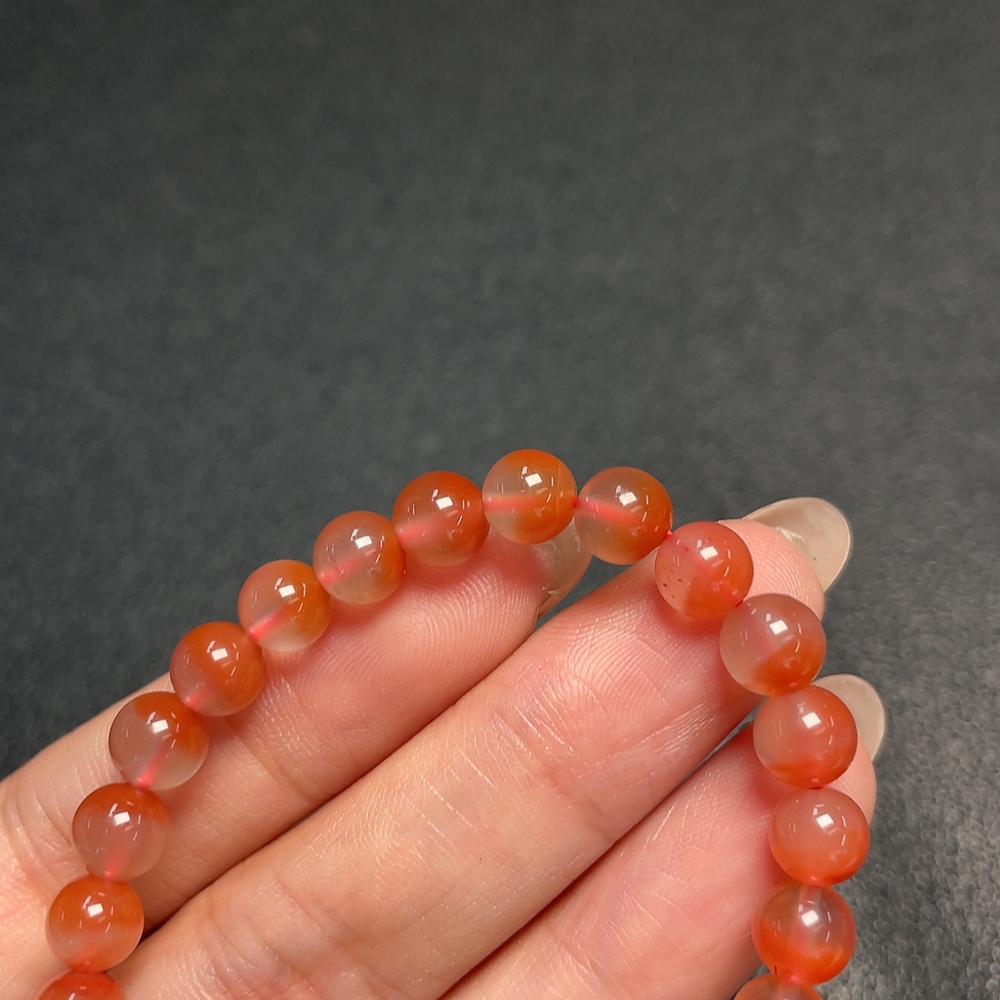 Red Agate Bracelet with Visible Organic Matter, Total Weight Approx. 10.55g, Size About 6.7mm