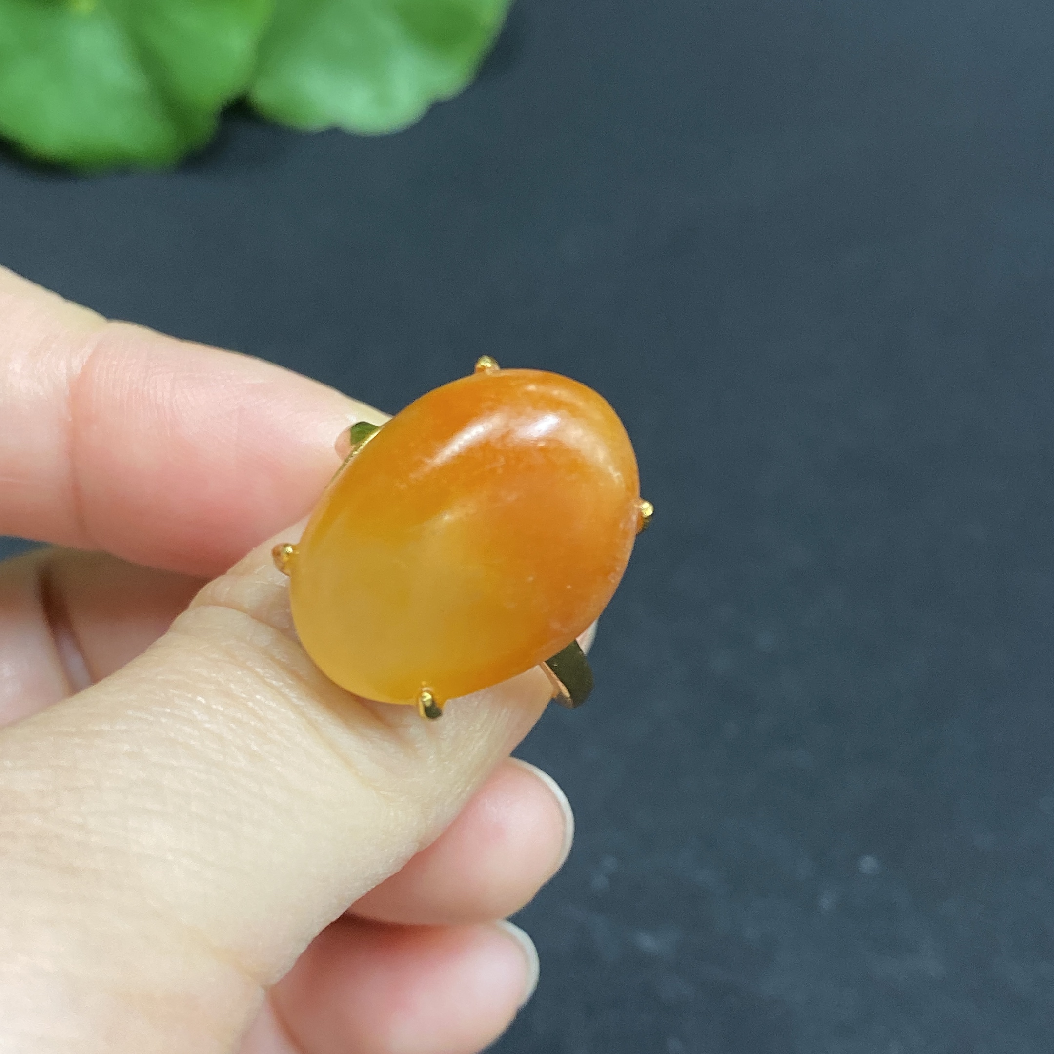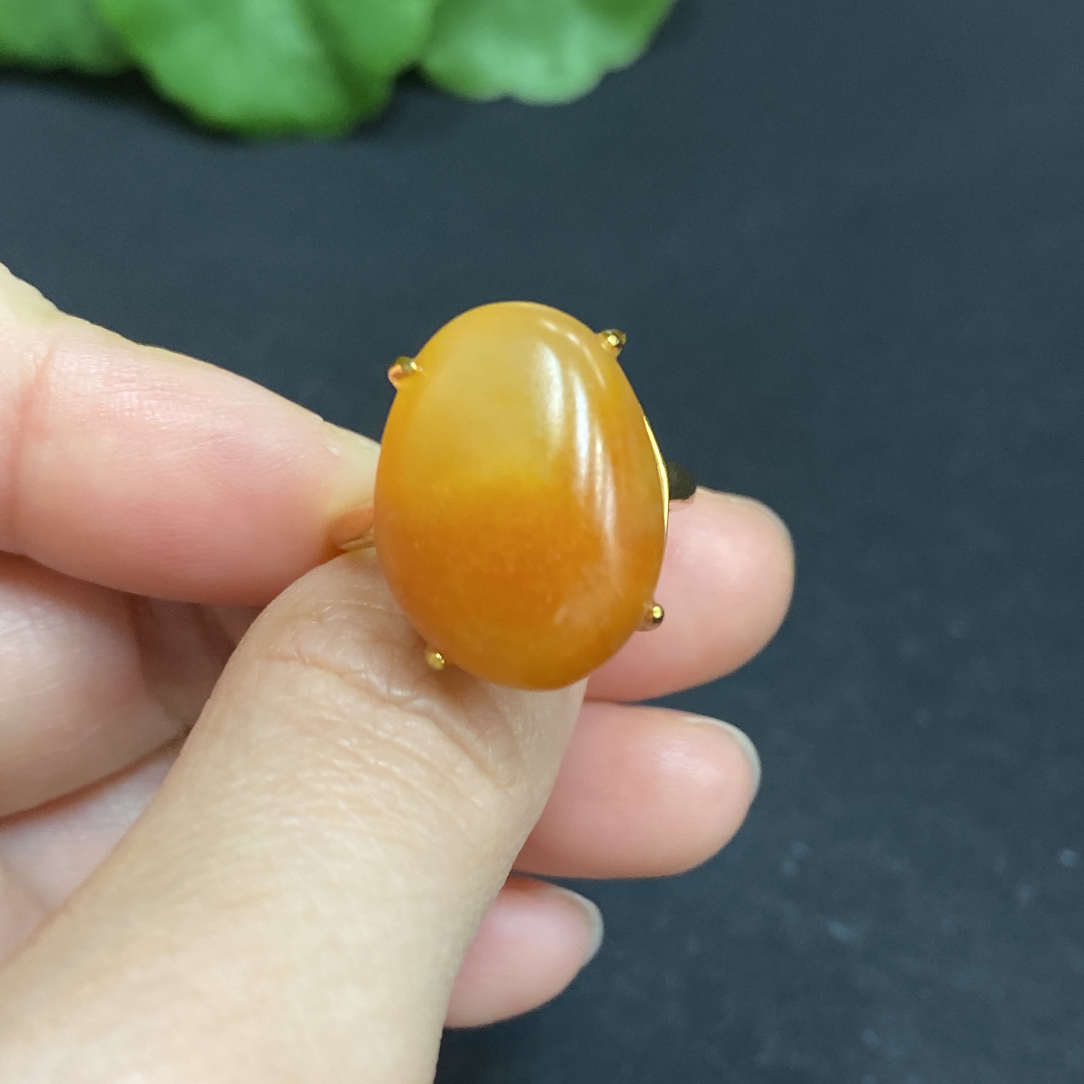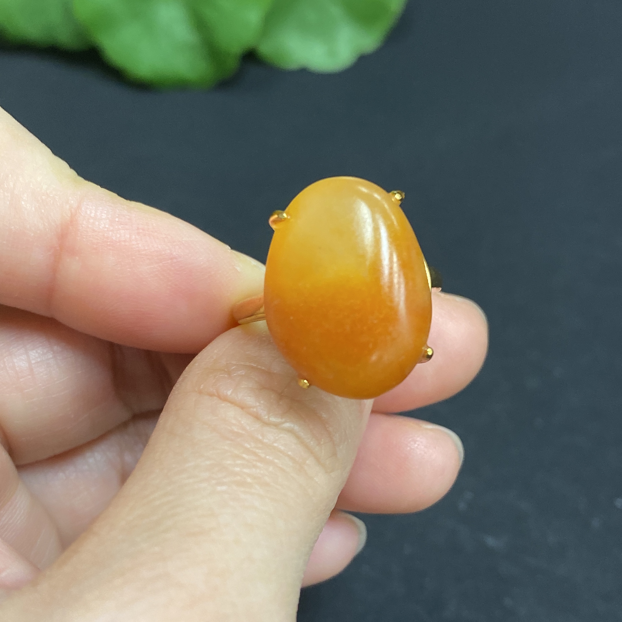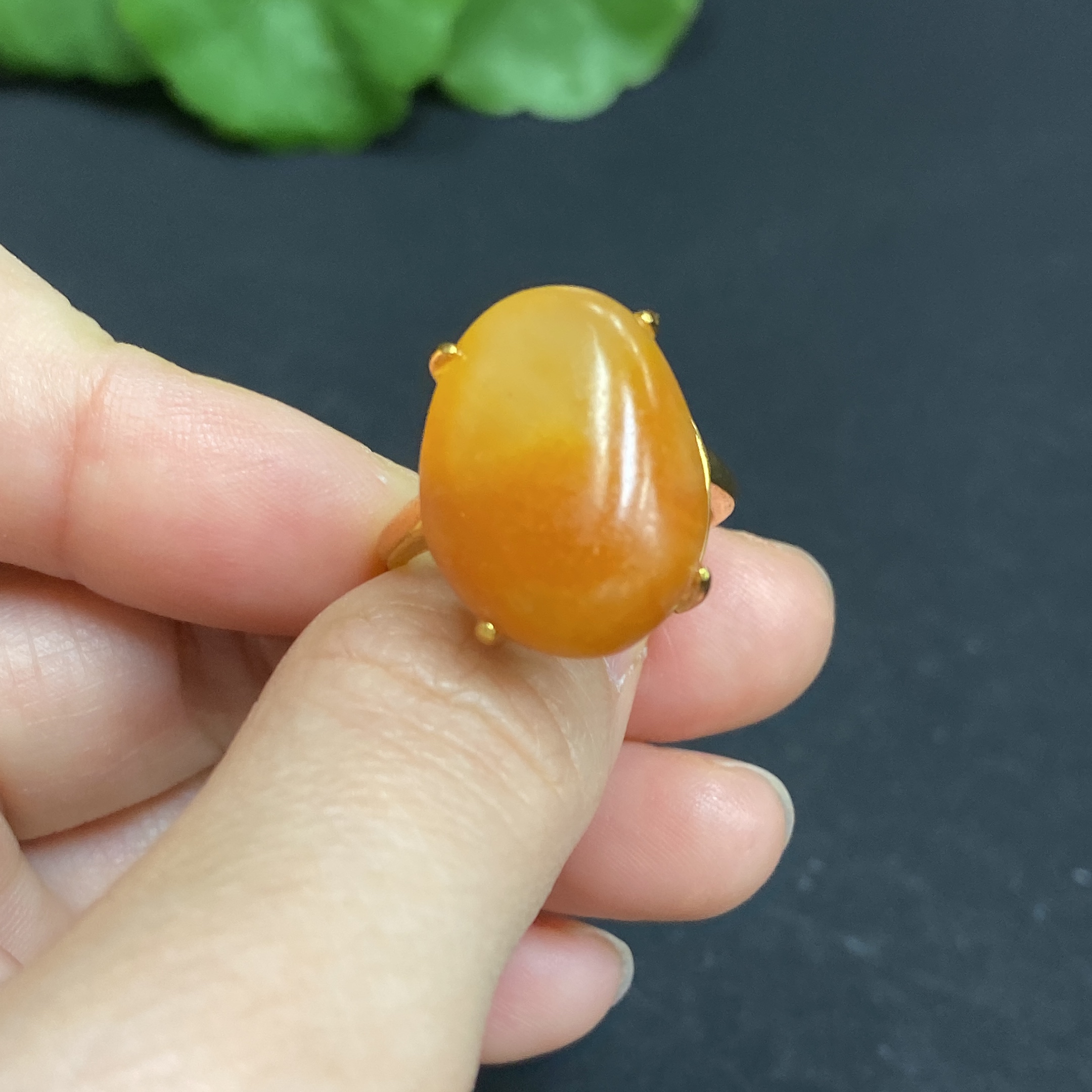 Hetian Jade Inlaid Adjustable Ring, Undetermined Skin Color Origin, Non-Gold, Total Weight Approx. 6g
