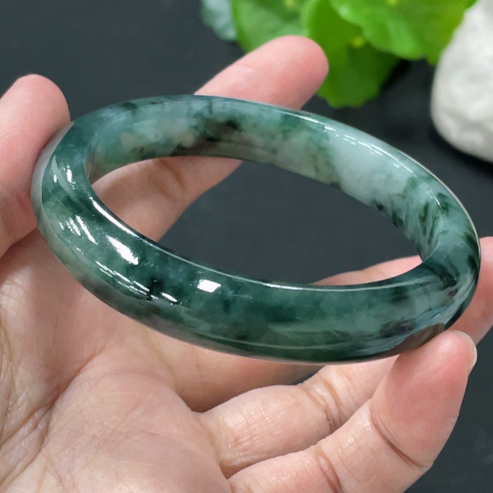 Jadeite Round Bangle, Total Weight Approx. 51.8g, Size 55.7