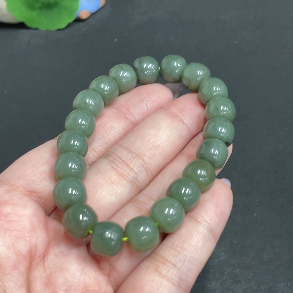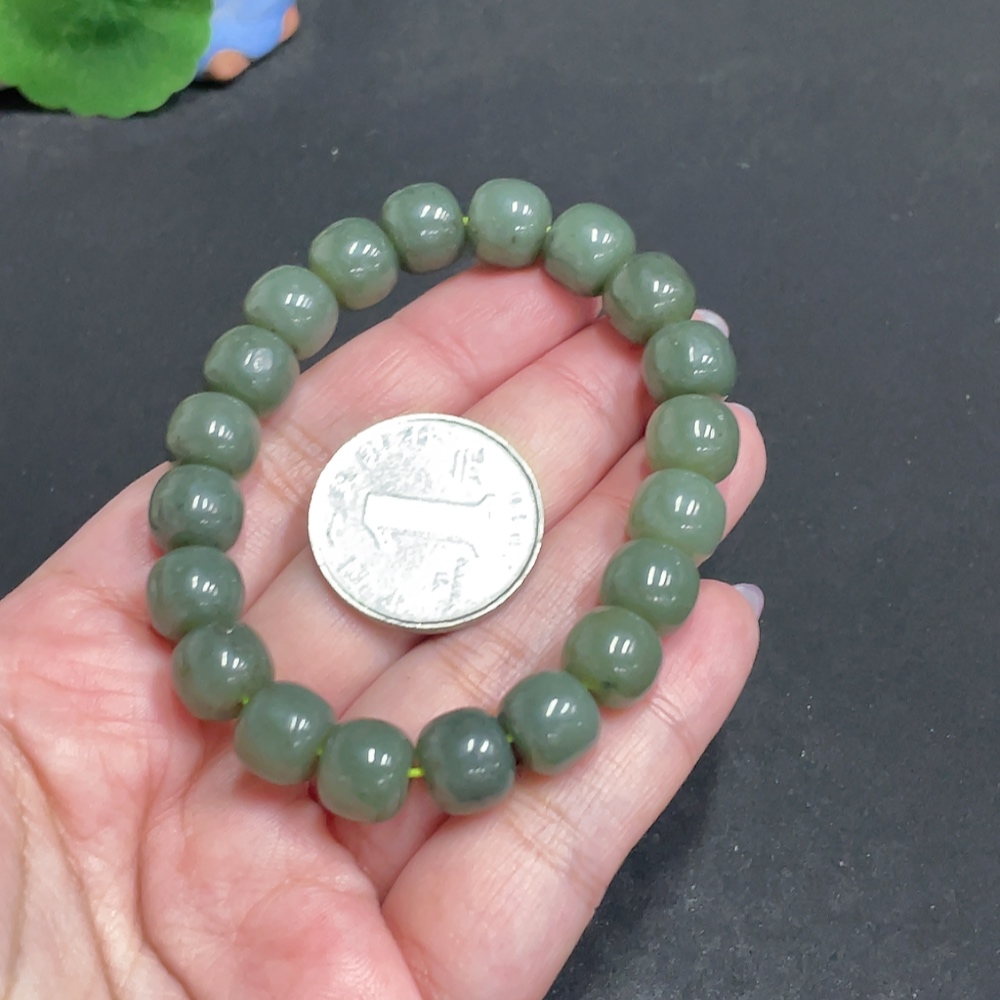Hetian Jade Bracelet, Approx. 10.1 mm Beads, Total Weight About 34g