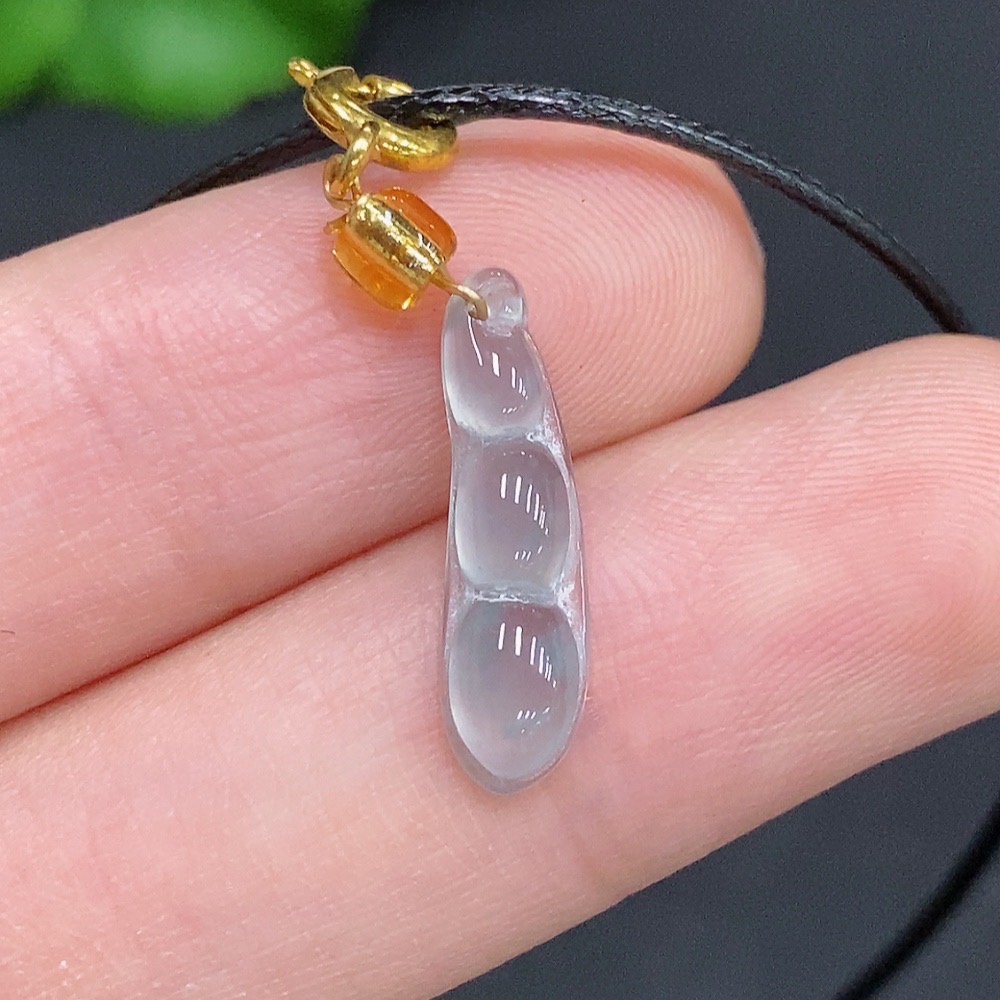 Jadeite Lucky Bean Pendant Non-Gold Inlaid Total Weight Approx. 0.5g (Excluding Cord Weight)