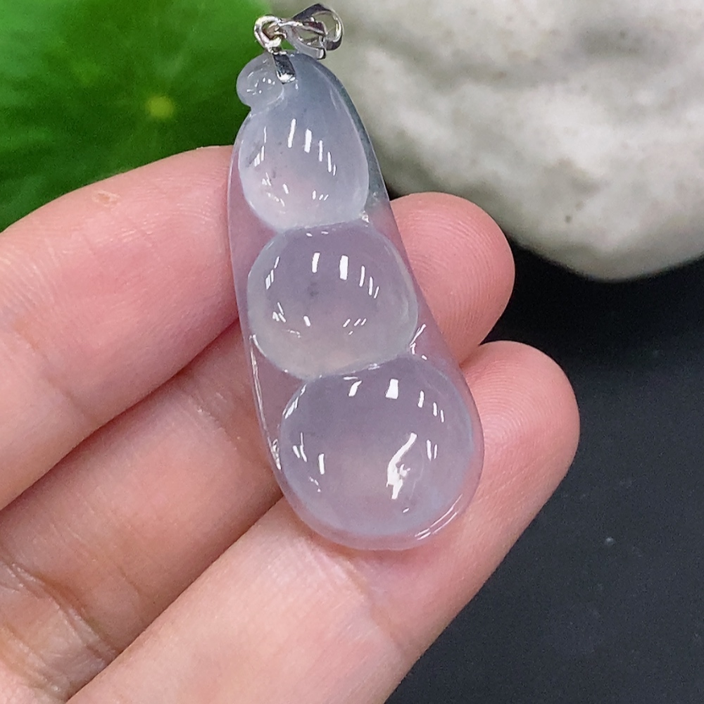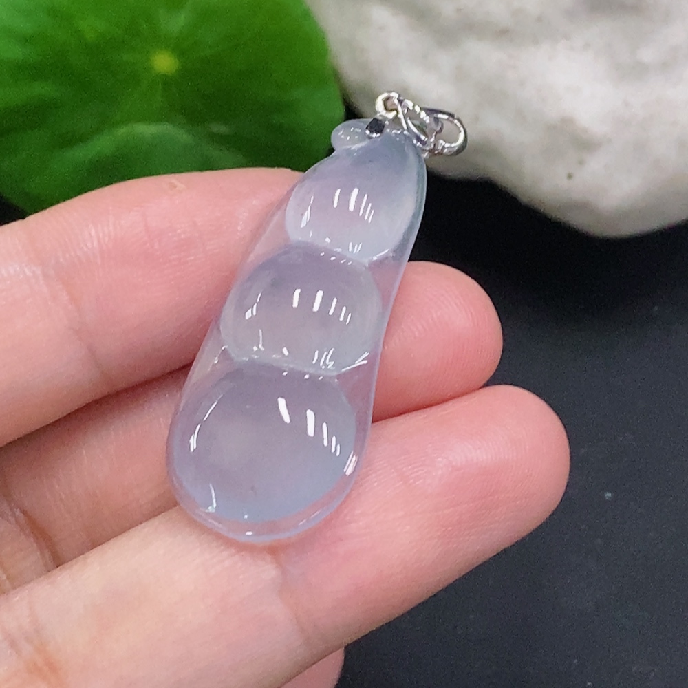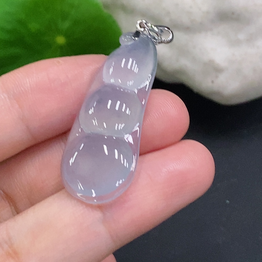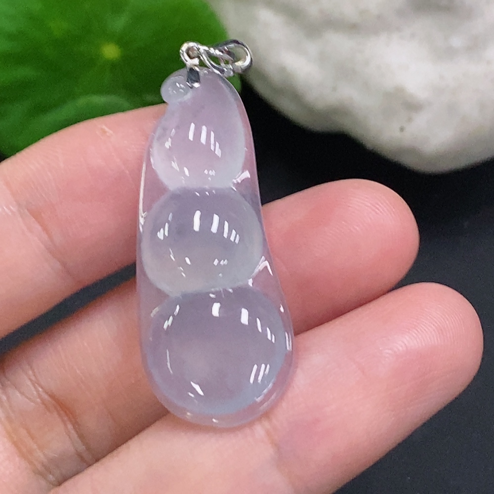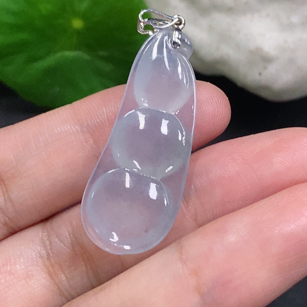Jadeite Lucky Bean Pendant with 18K Gold Clasp, Total Weight Approx. 4.8g