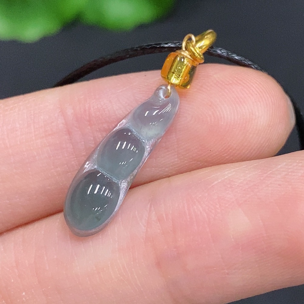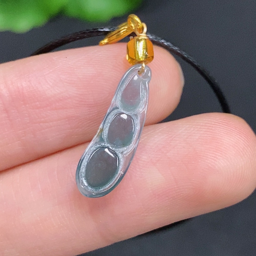 Jadeite Lucky Bean Pendant Non-Gold Inlaid Total Weight Approx. 0.7g (Excl. Rope Weight)