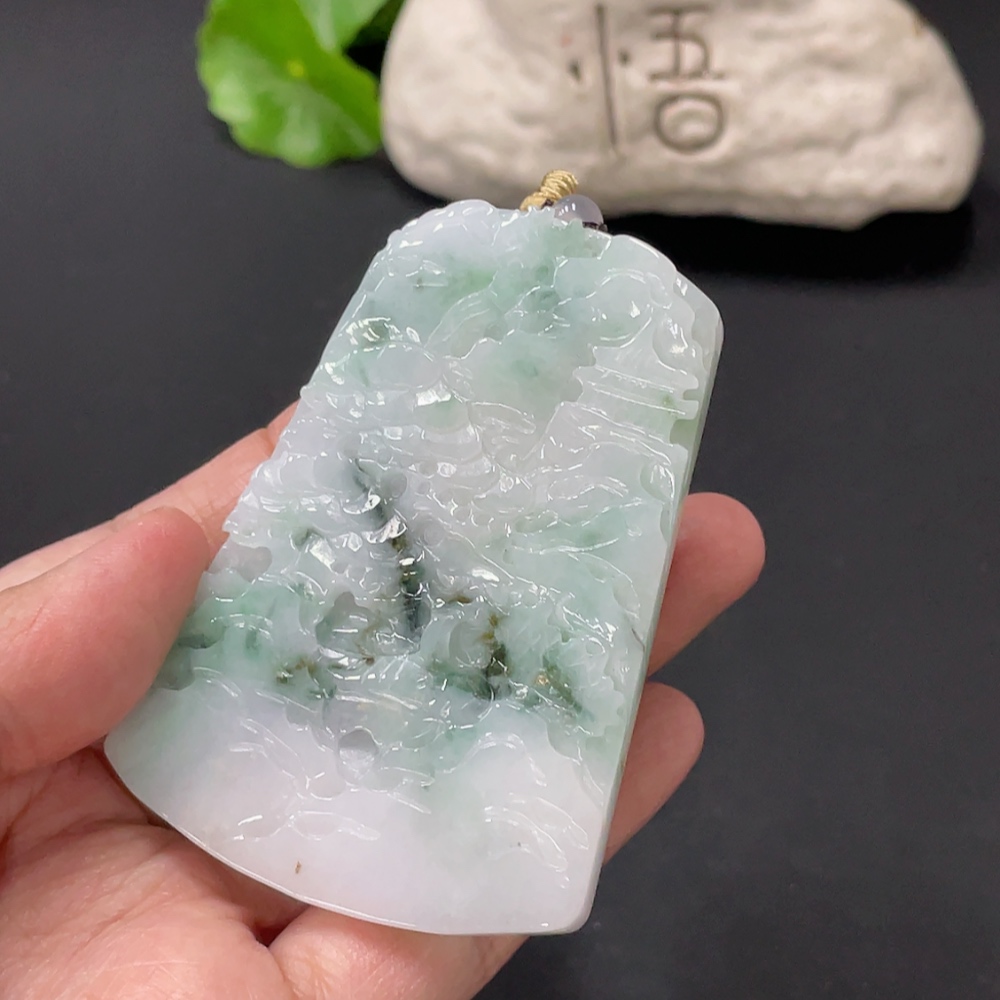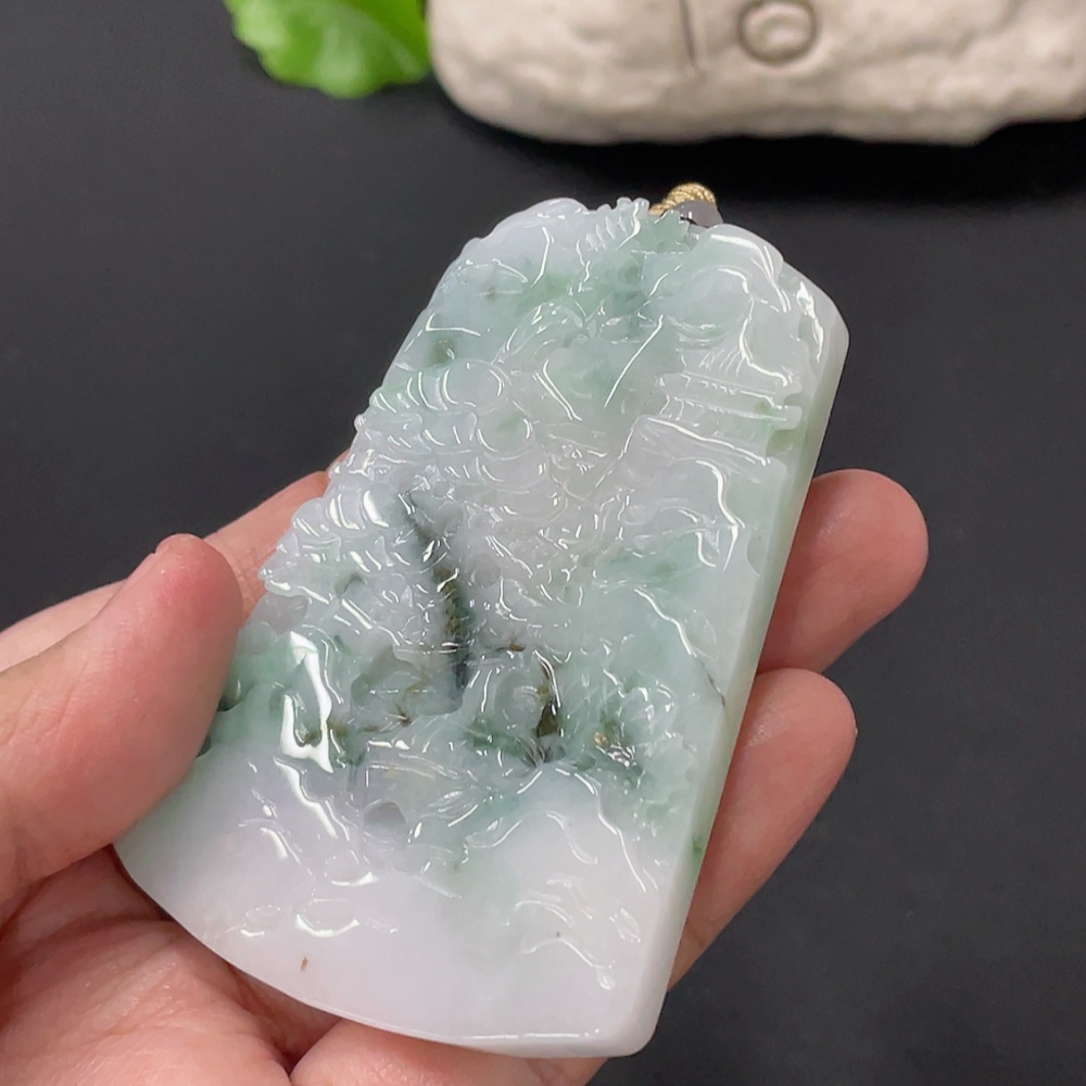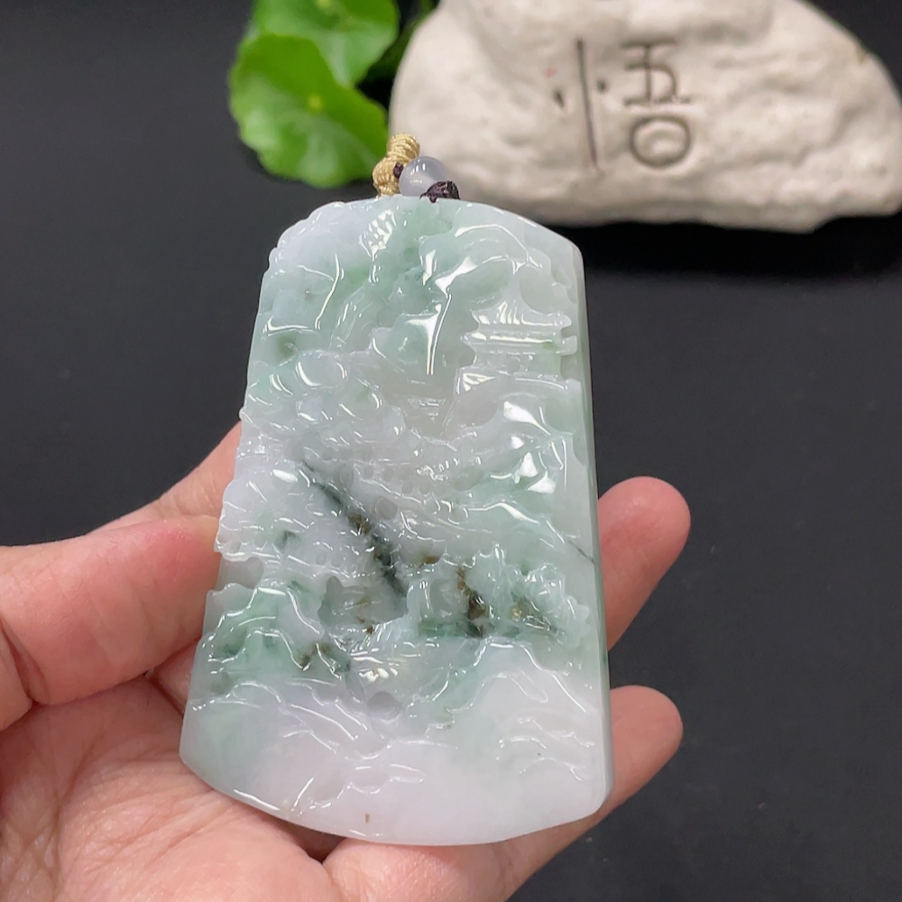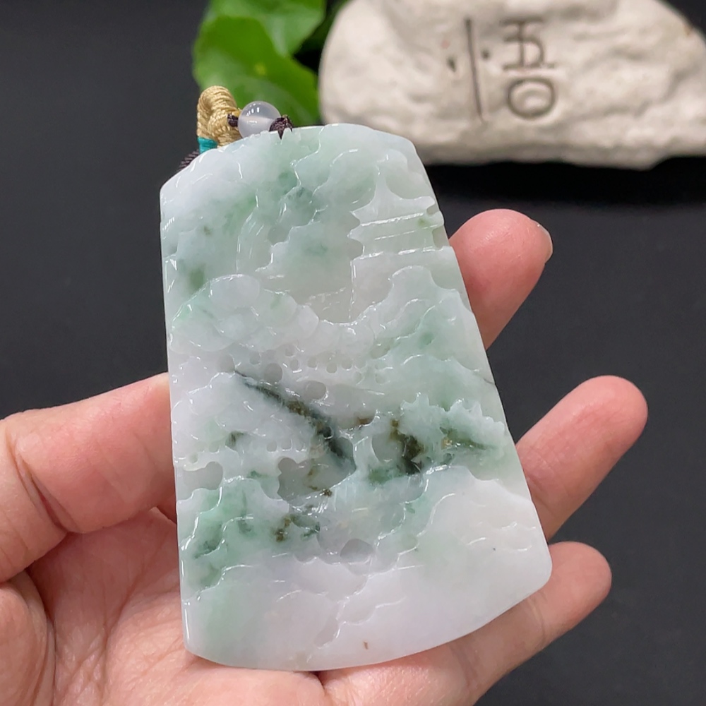 Jadeite Landscape Pendant Total Weight Approx. 67.5g With Non-Grade A Beads