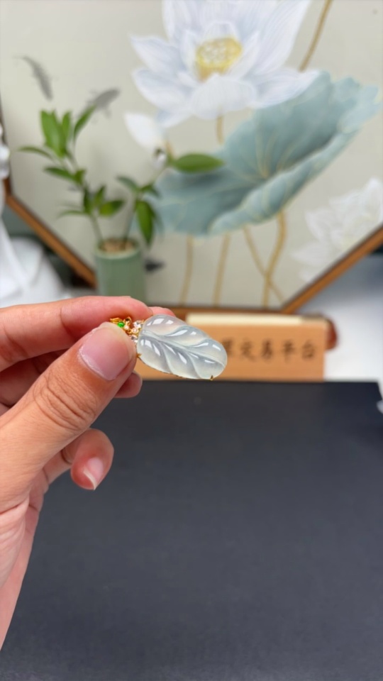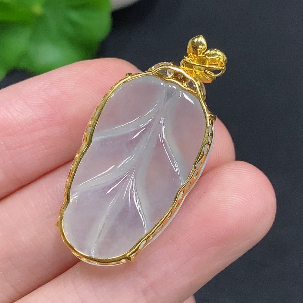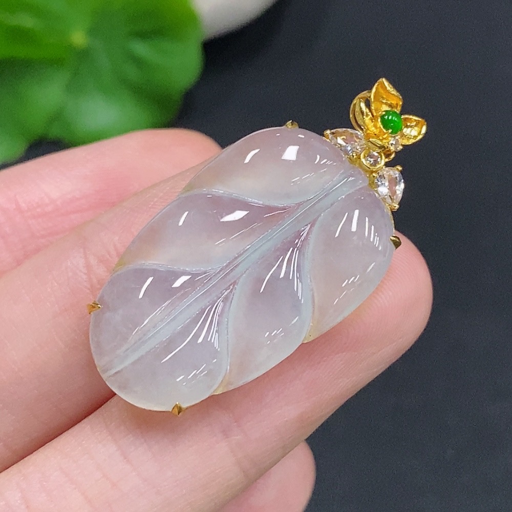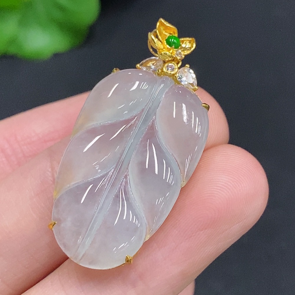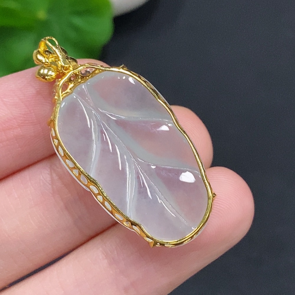 JadeiteLeaf Pendant 18K Gold Total Weight Approx. 4.4g Non-Diamond