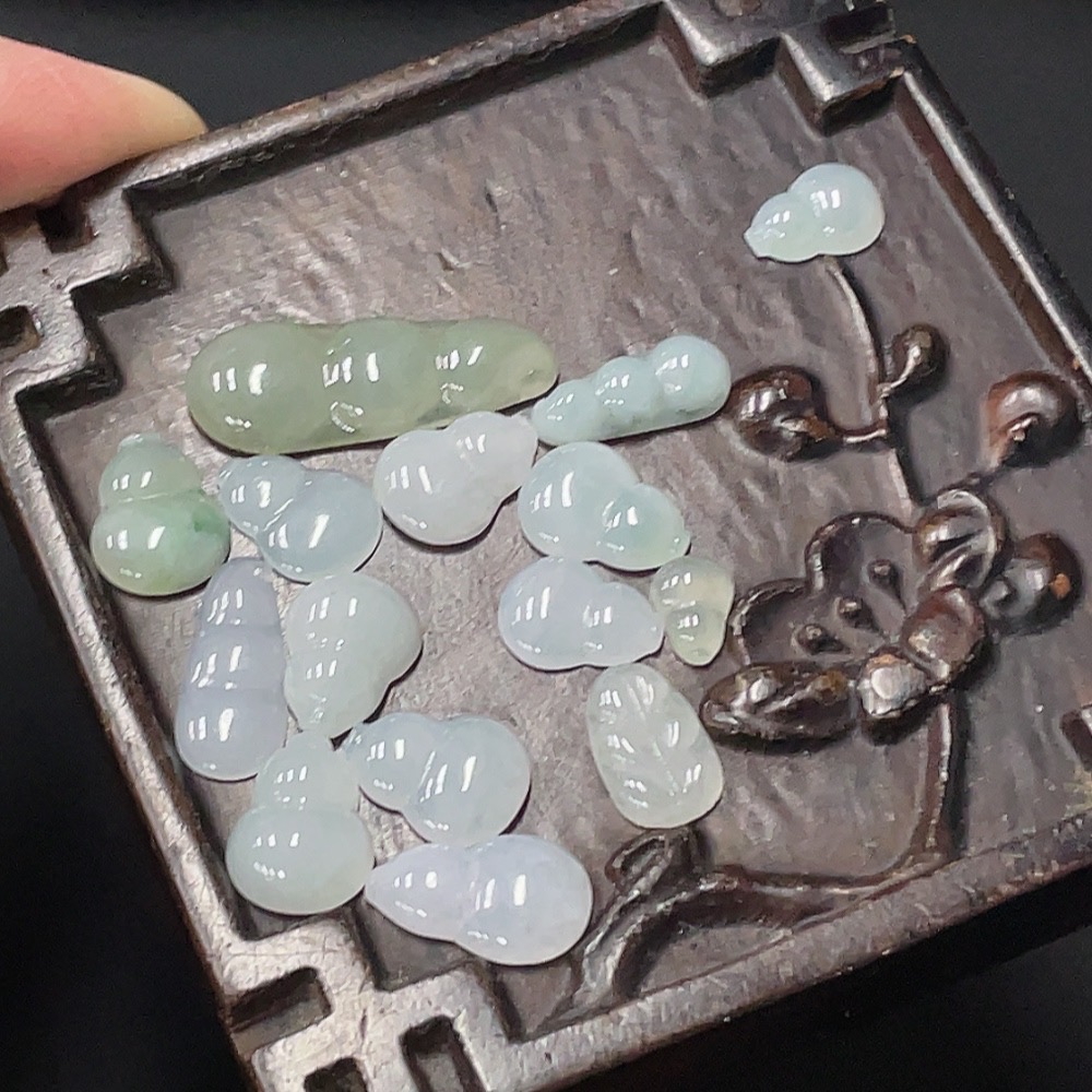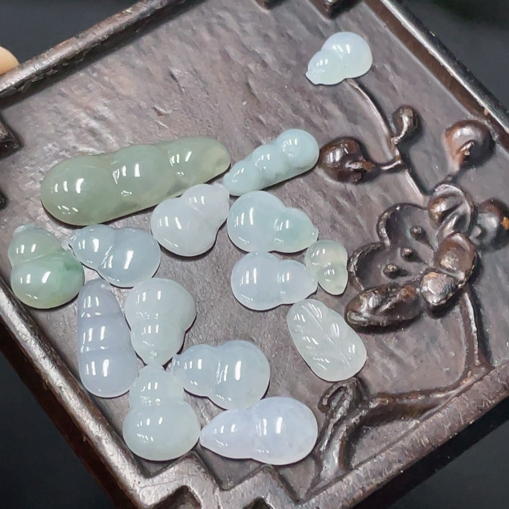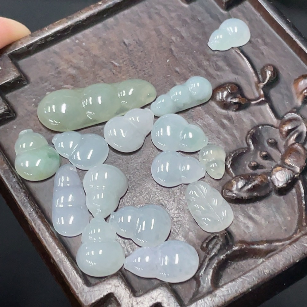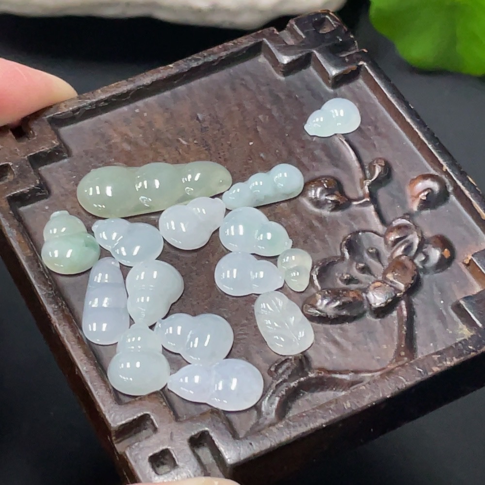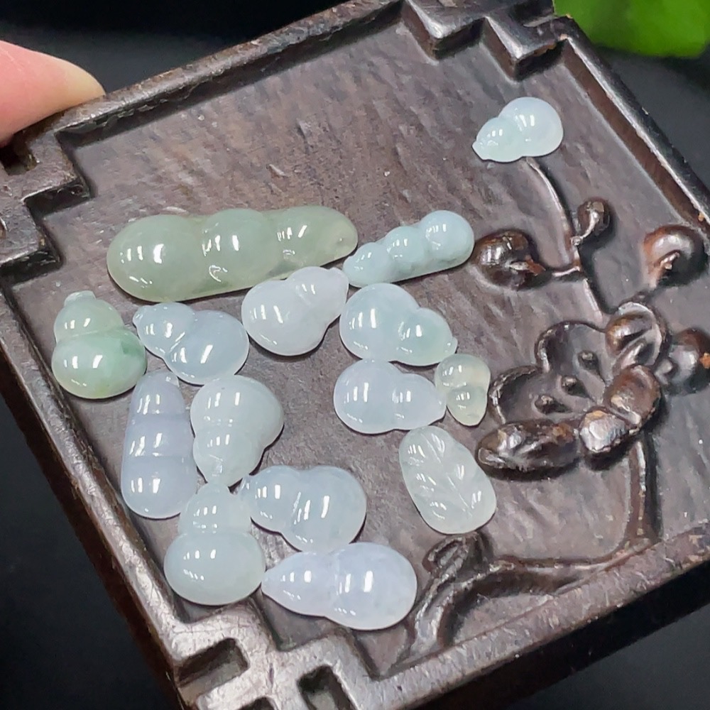 JadeiteInlaid Piece Gourd Lucky Bean