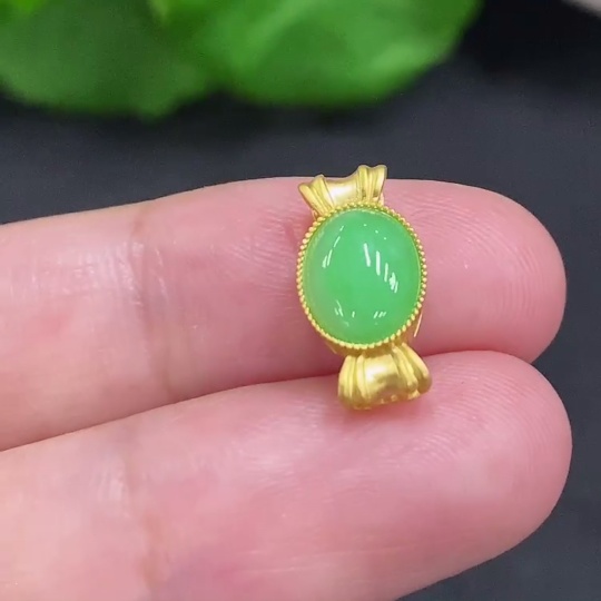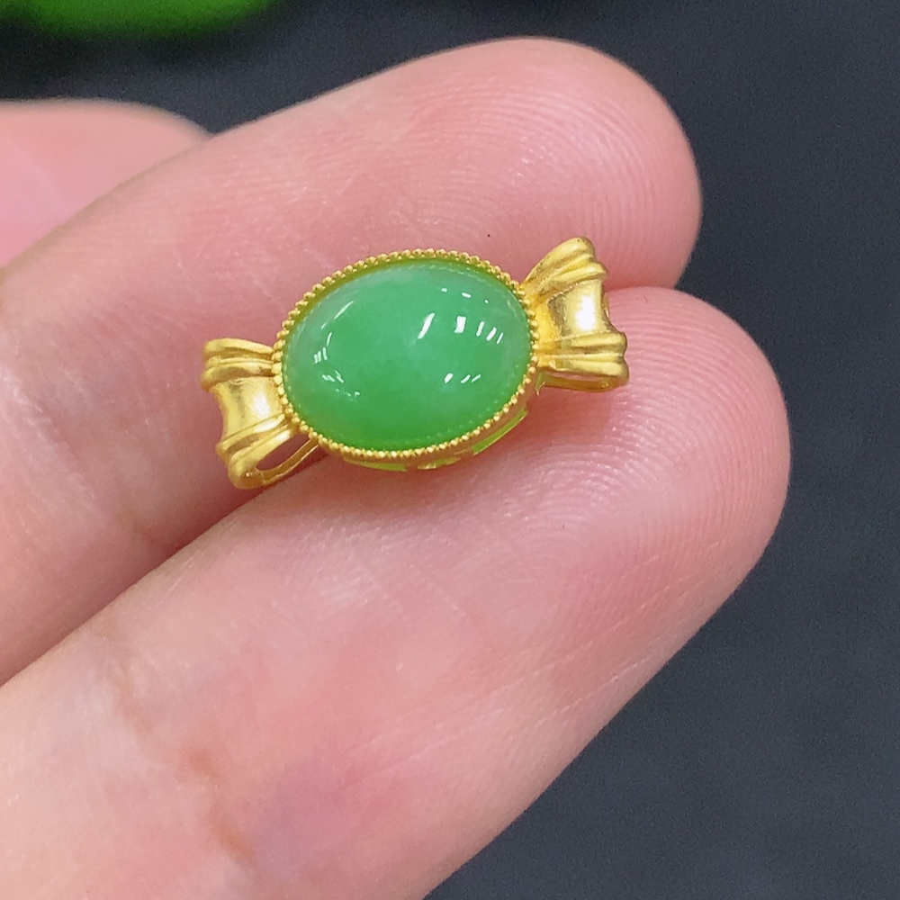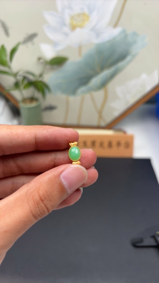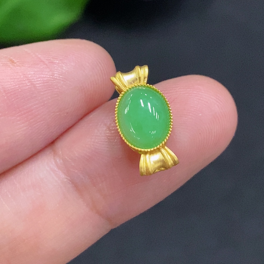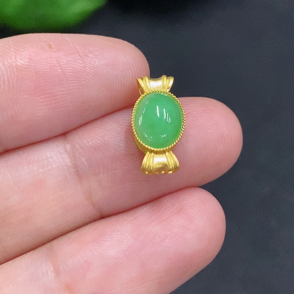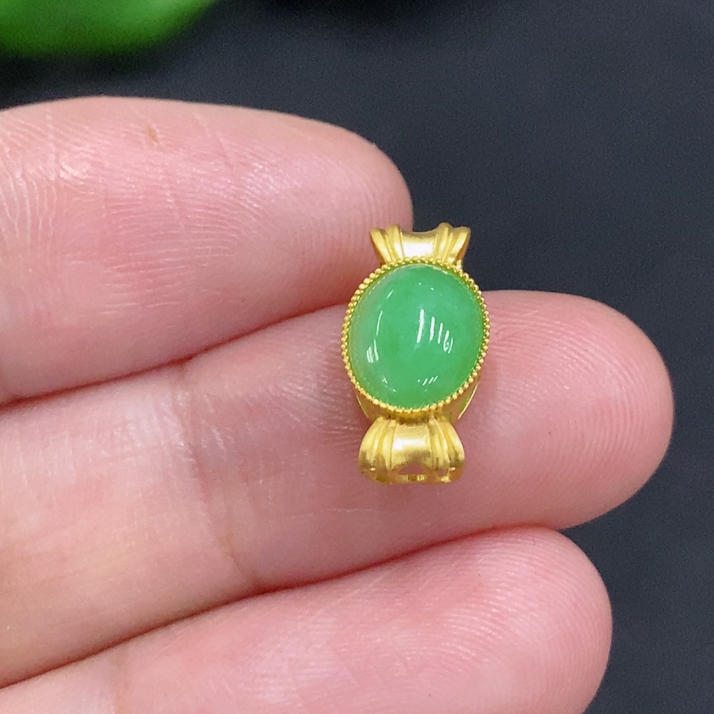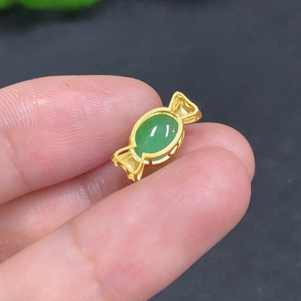 Jadeite Cabochon Pendant with 18K Gold Mount, Total Weight Approx. 0.6g