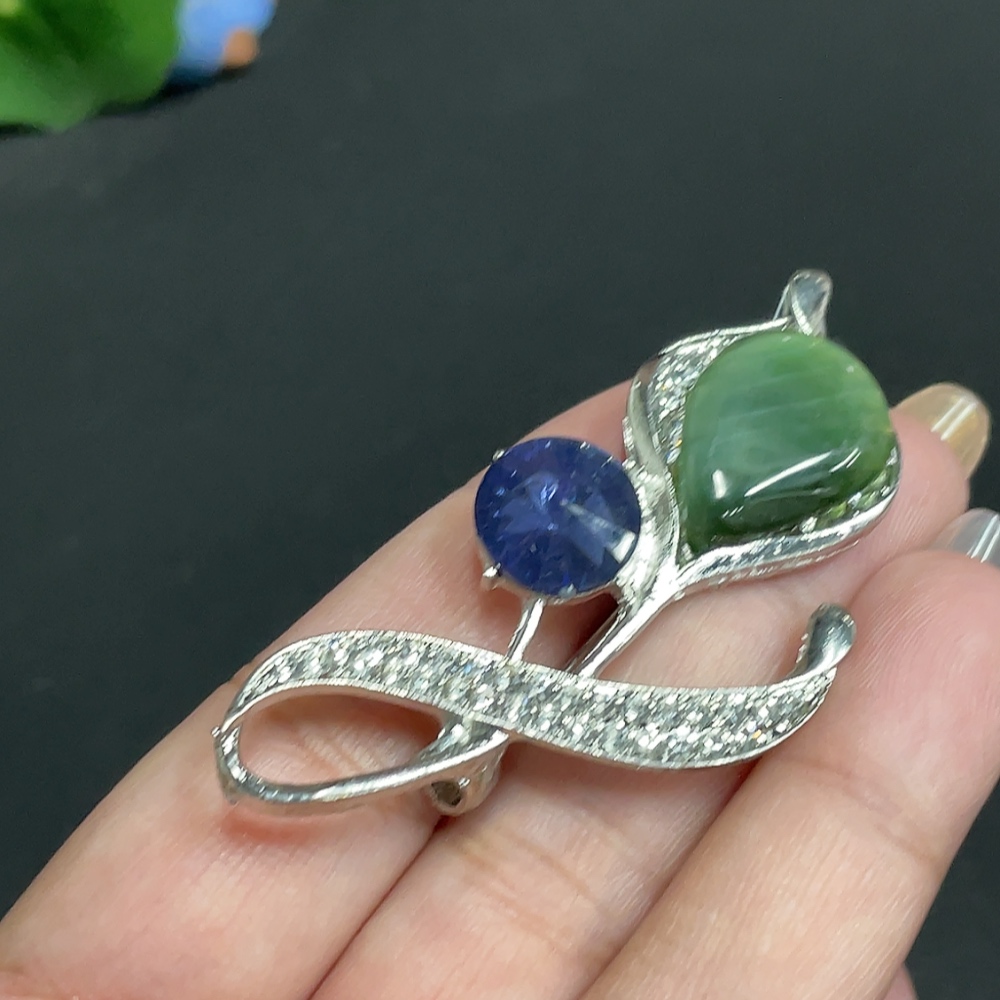 Hetian Jade Inlaid Brooch
