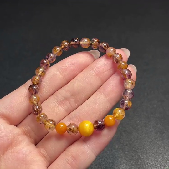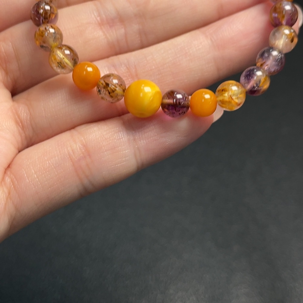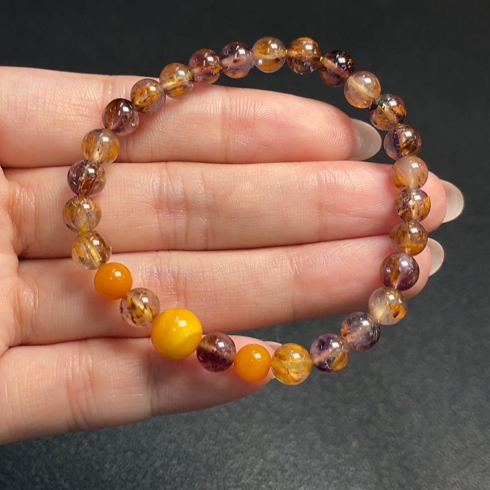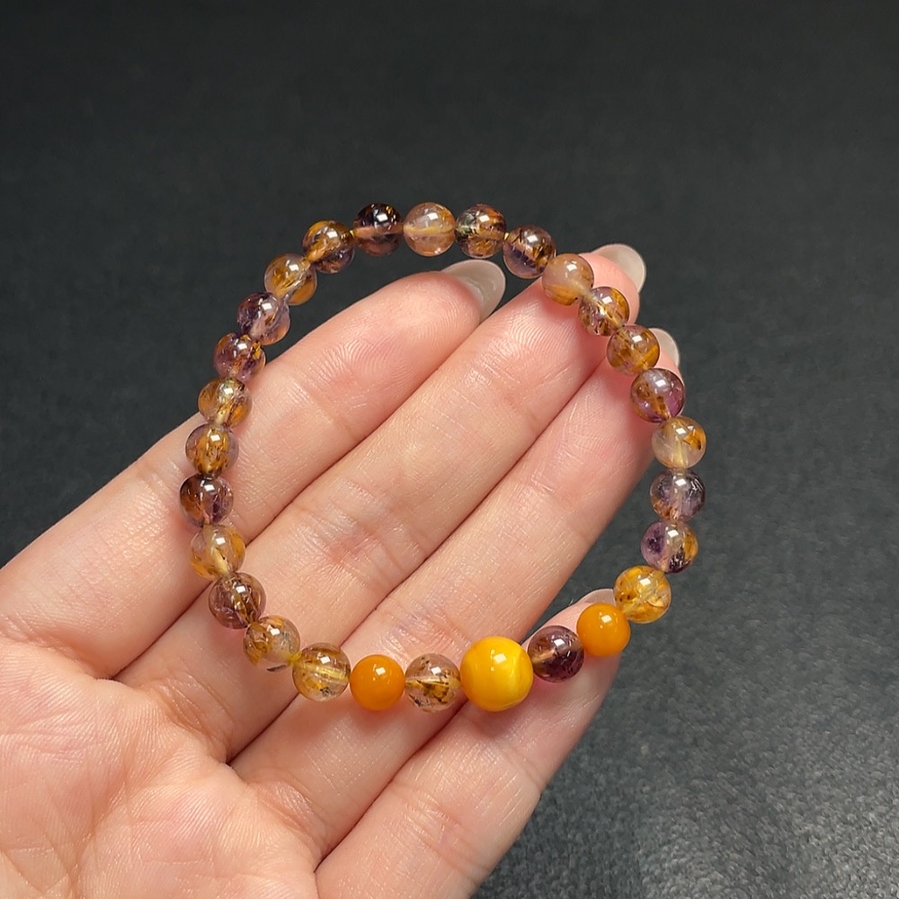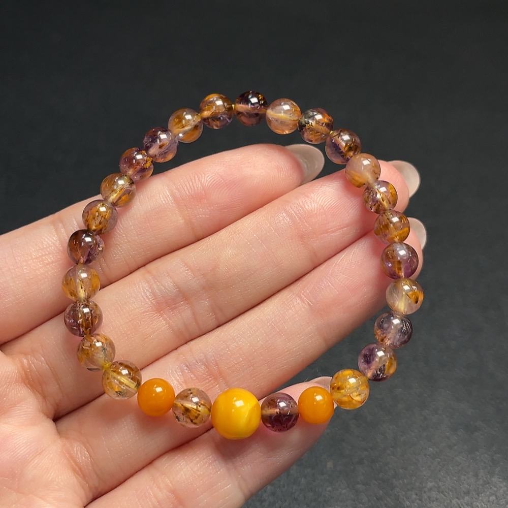 Crystal Bracelet with Amber, Total Weight Approx. 8.74g, Size About 6.1mm