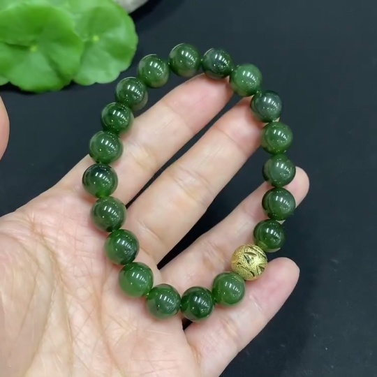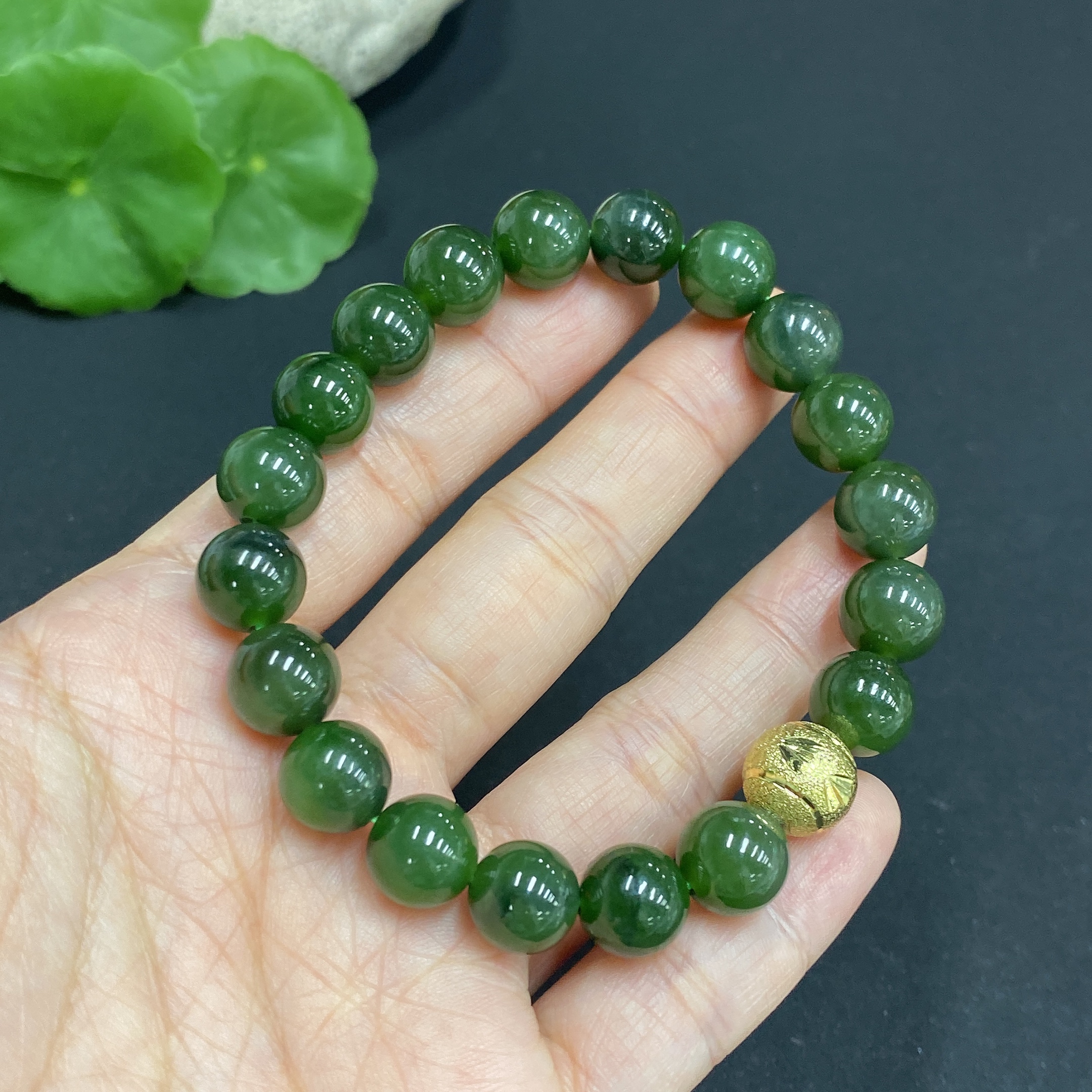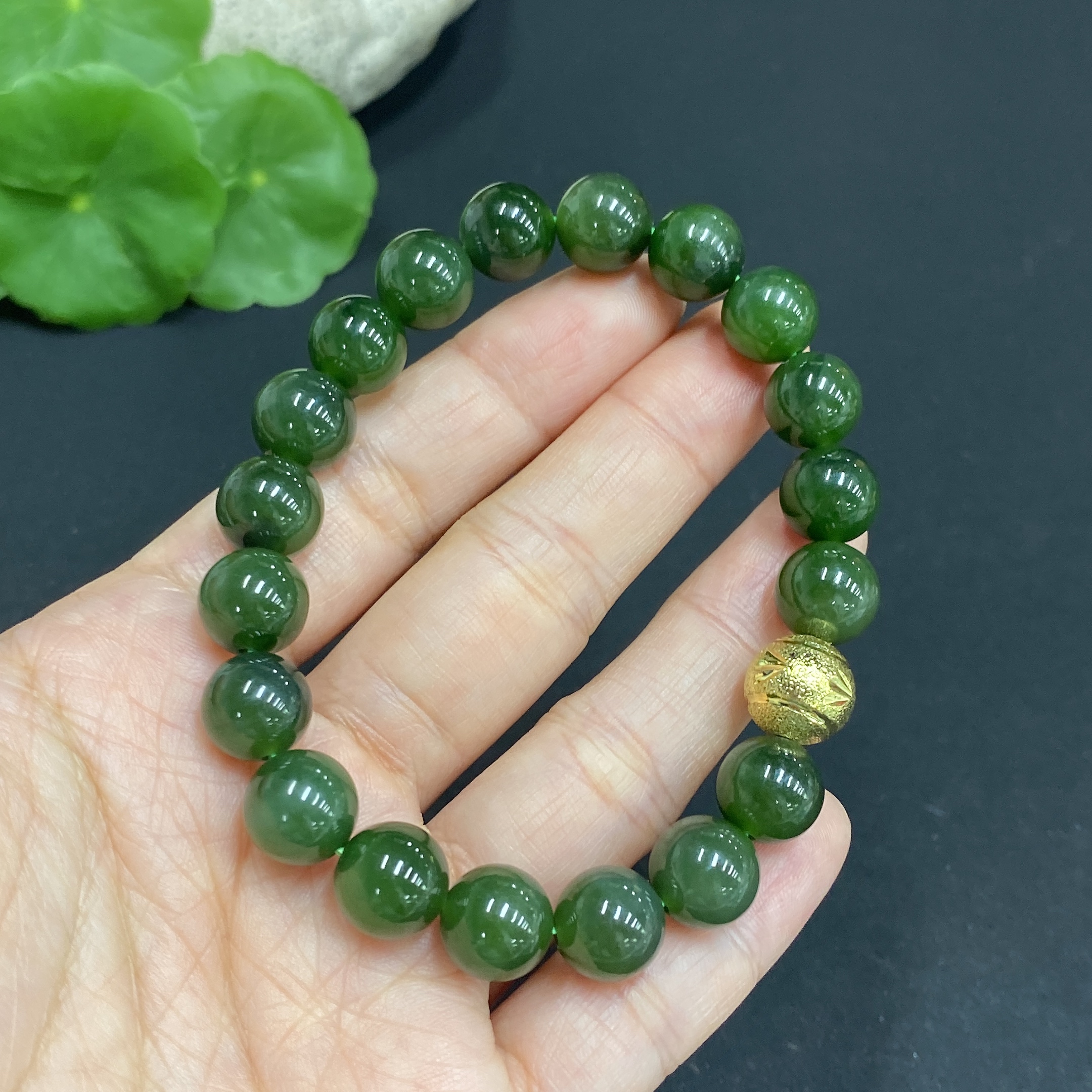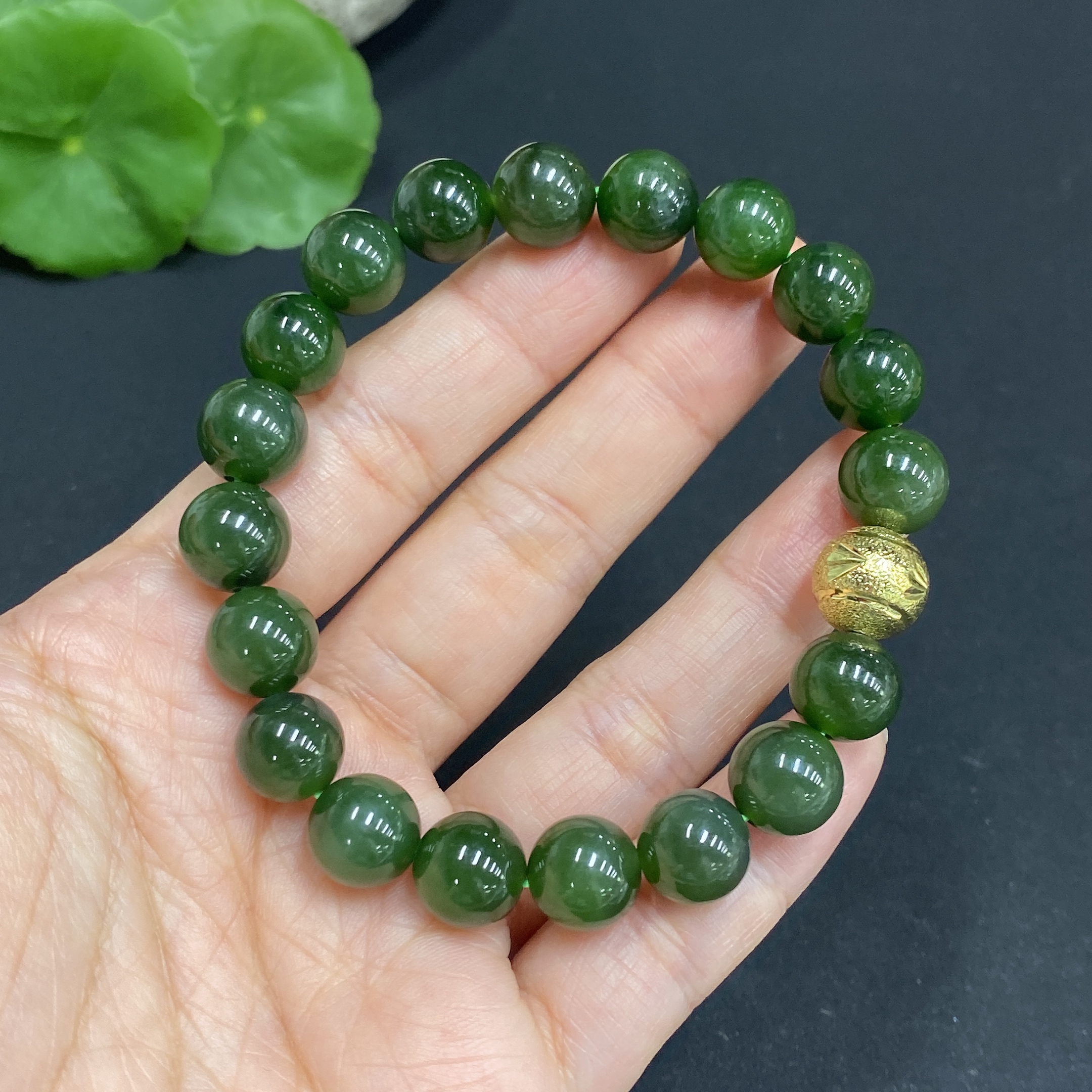 Hetian Jade Bracelet Approx. 9.4mm Non-gold Inlaid Total Weight Approx. 26.7g