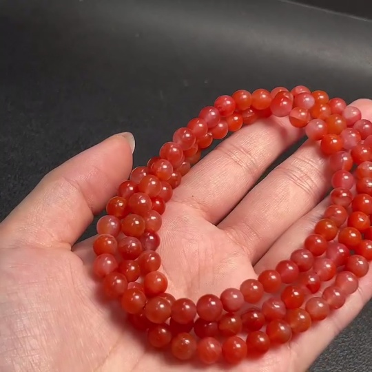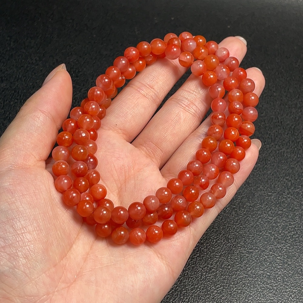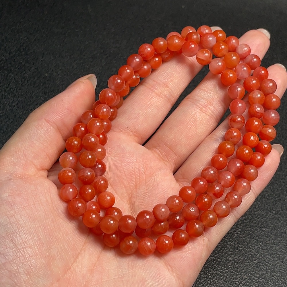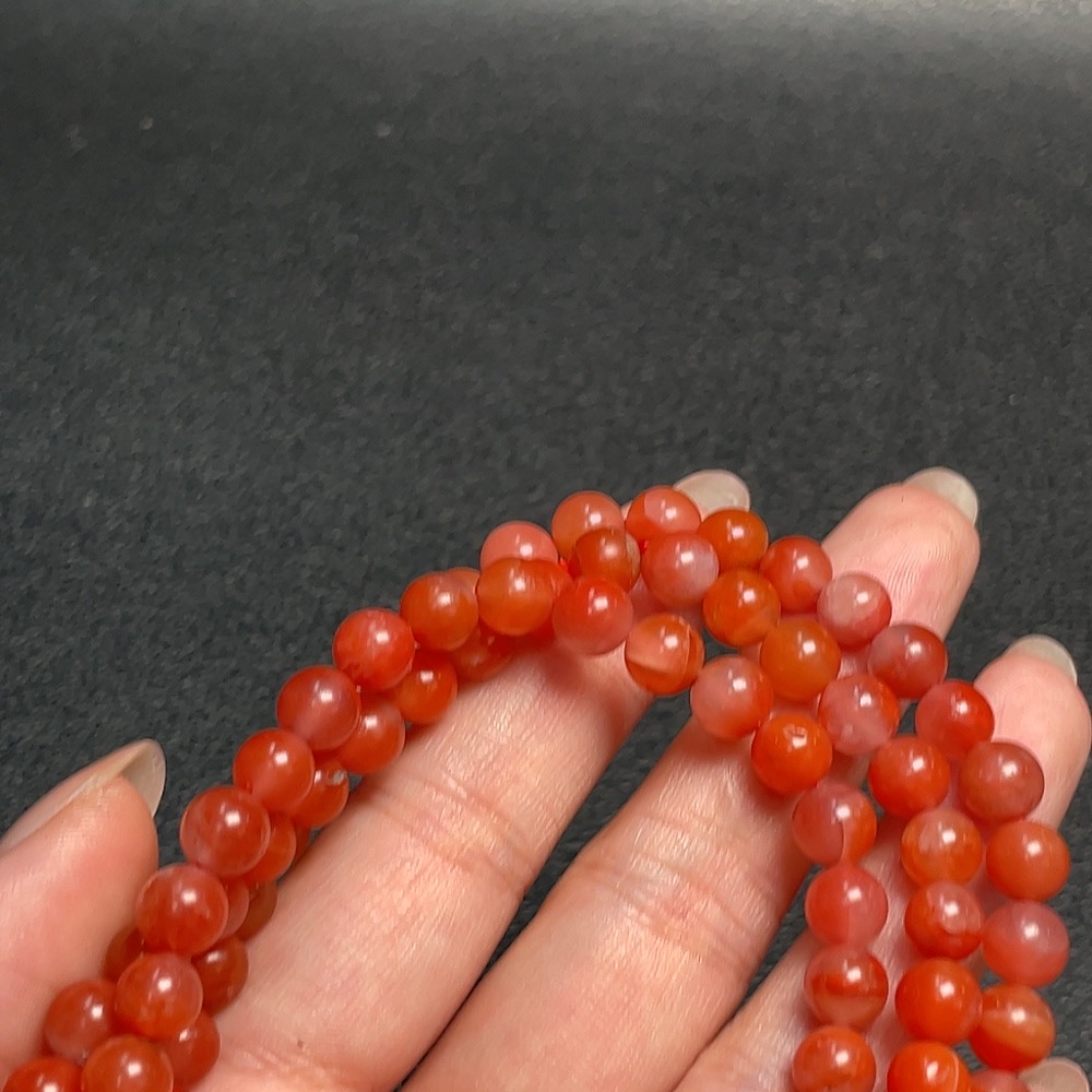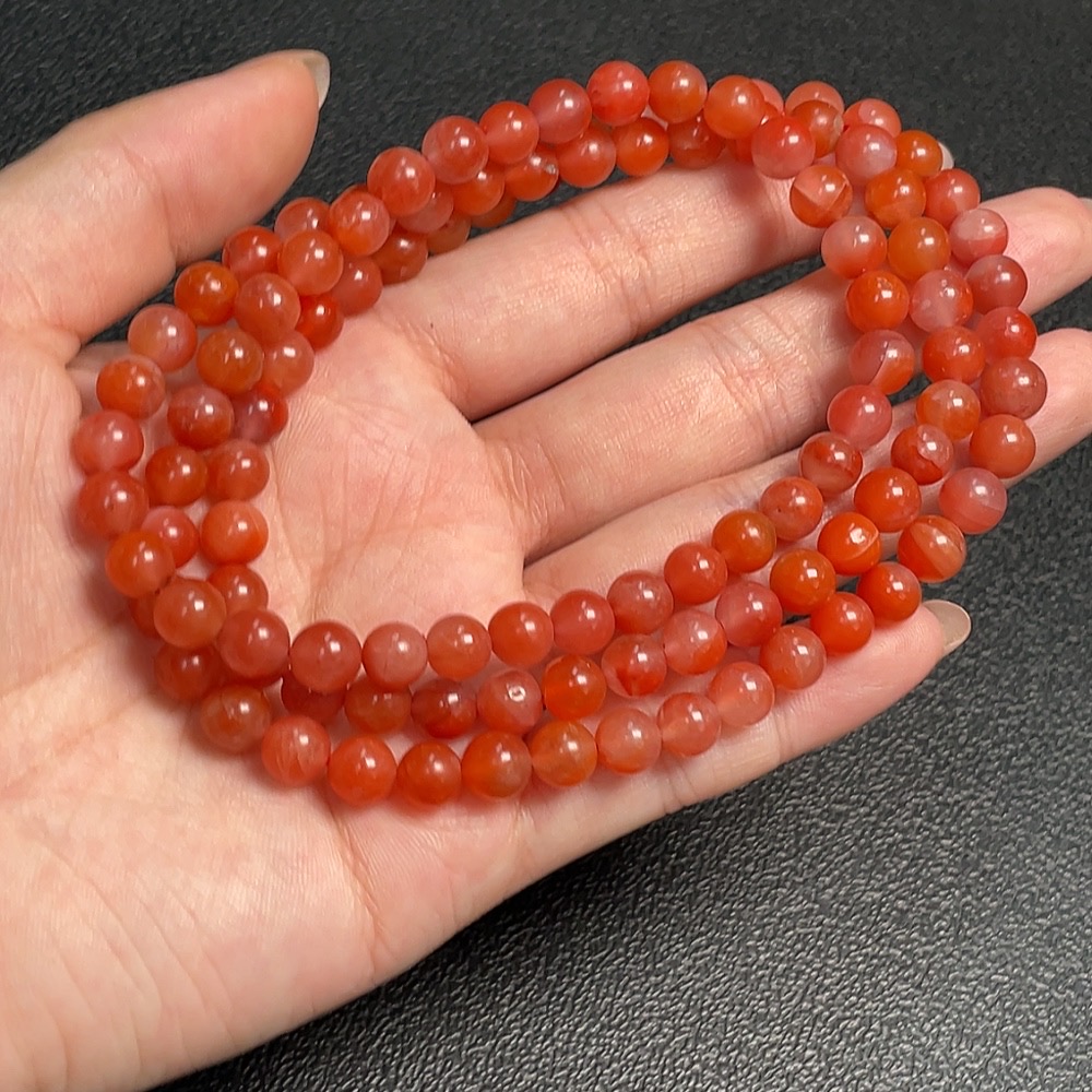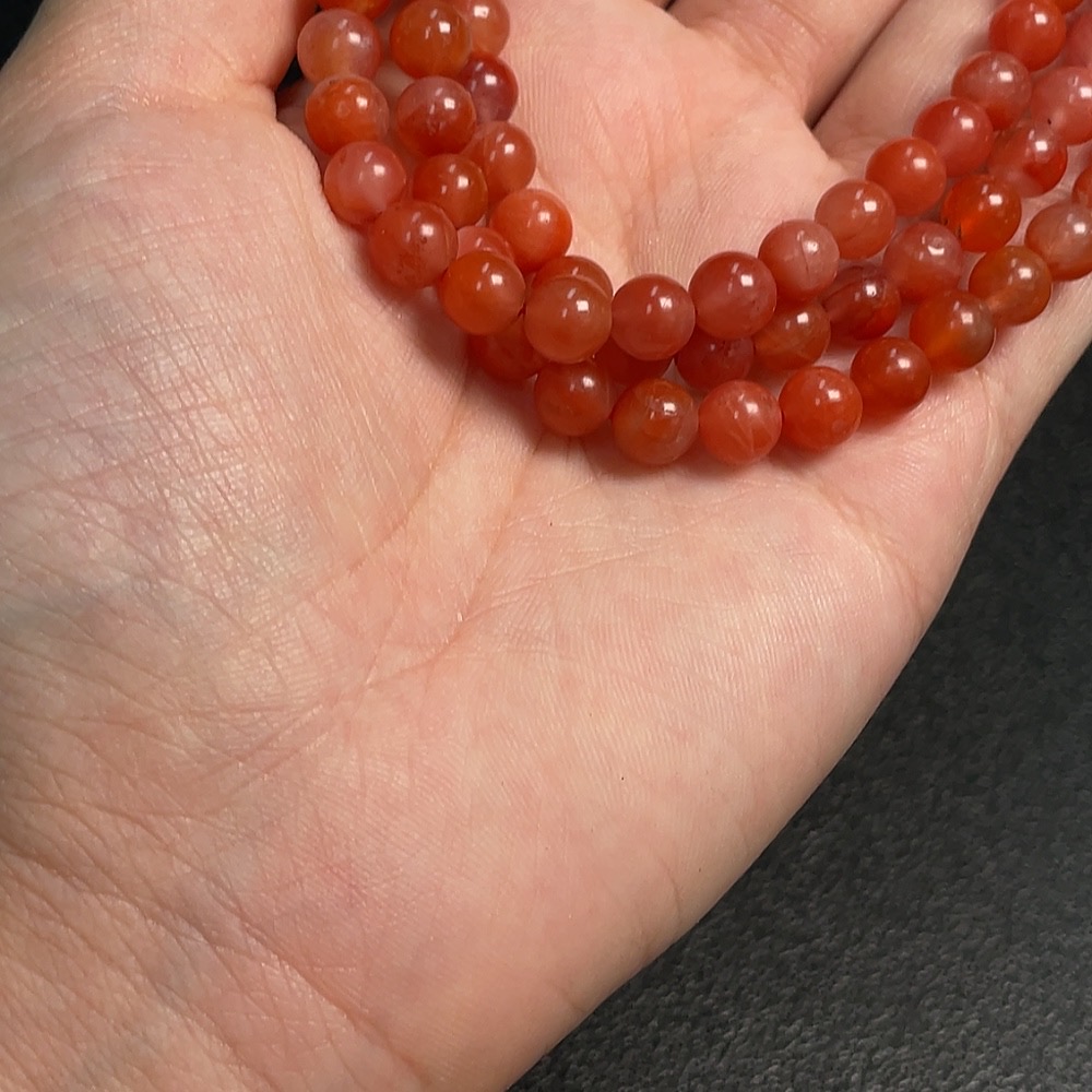 Red Agate Bead Strand with Visible Organic Matter, Total Weight Approx. 43.24g, Size About 6.6mm
