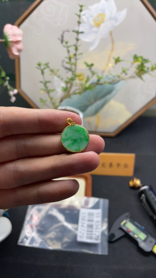 Jadeite Plain Pendant inlaid Pendant 18k Total Weight About 2.8g