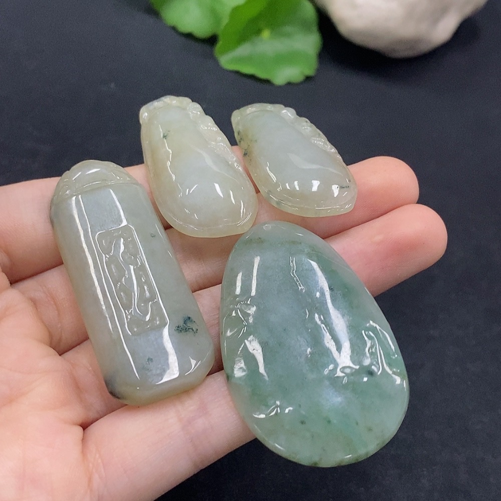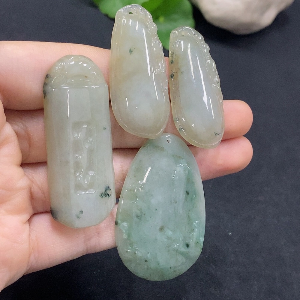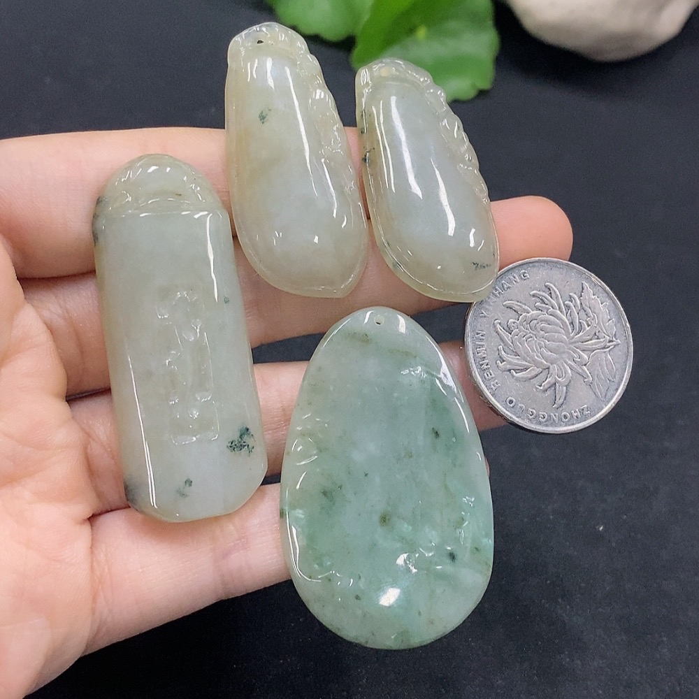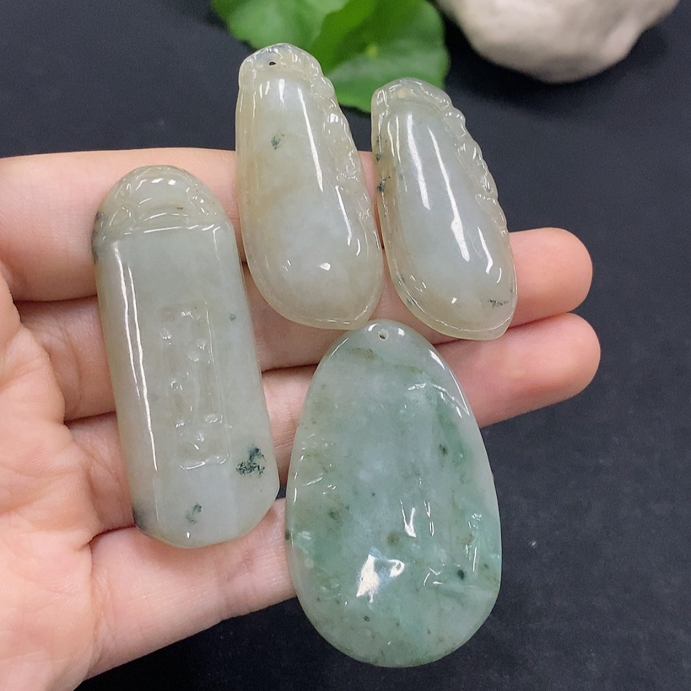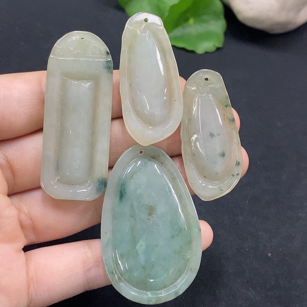 Trezaar - Jadeite Pendants Sell as a Lot Color Origin Undetermined