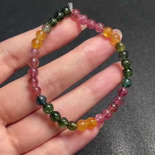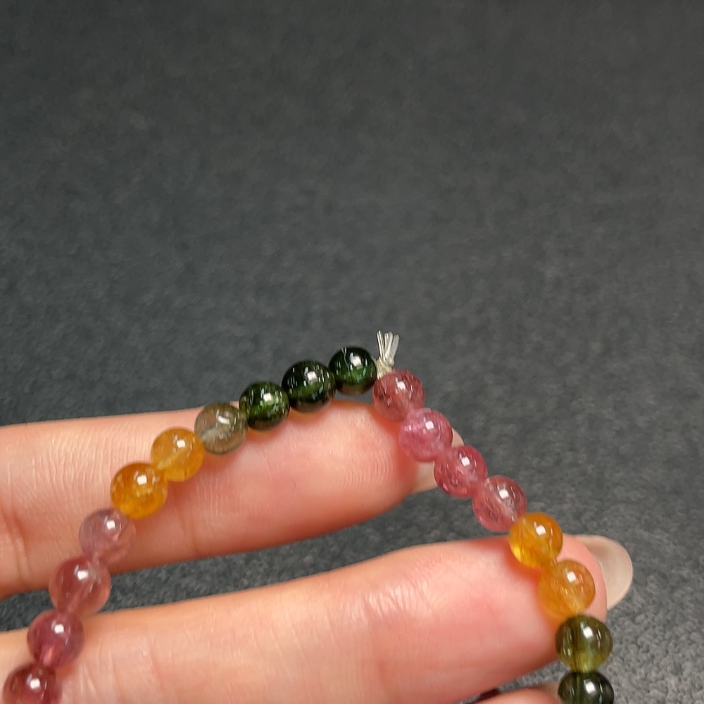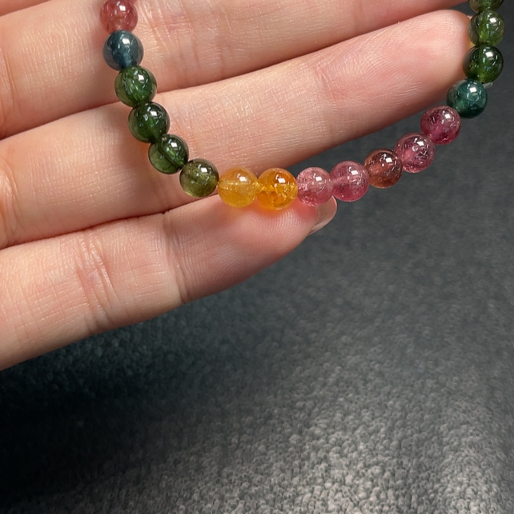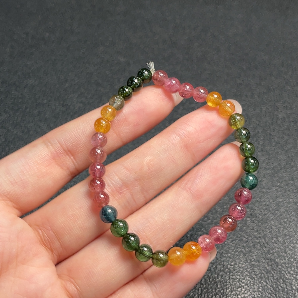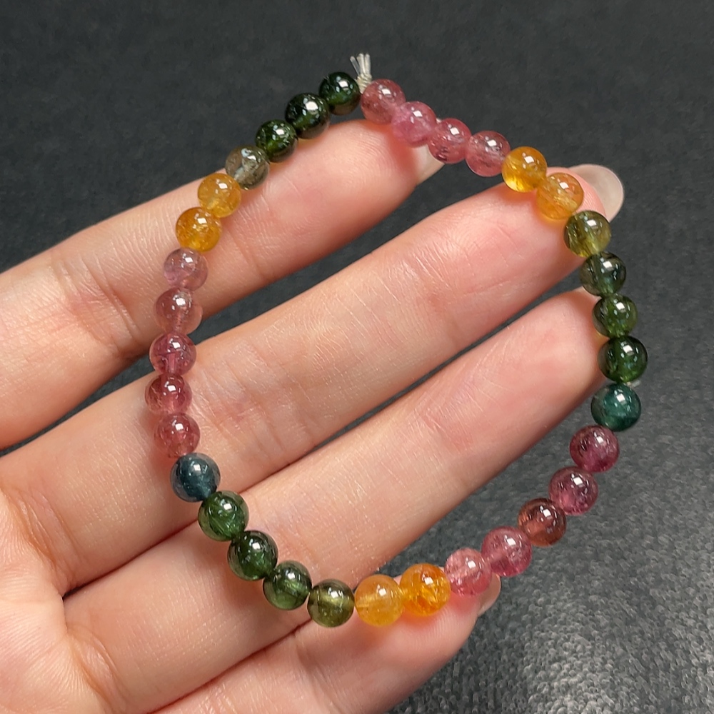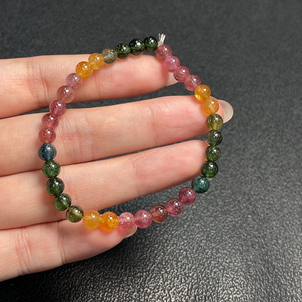 Tourmaline Bracelet with Other Mineral Components and Visible Organic Matter, Total Weight Approx. 7.31g, Bead Size Around 5.2mm