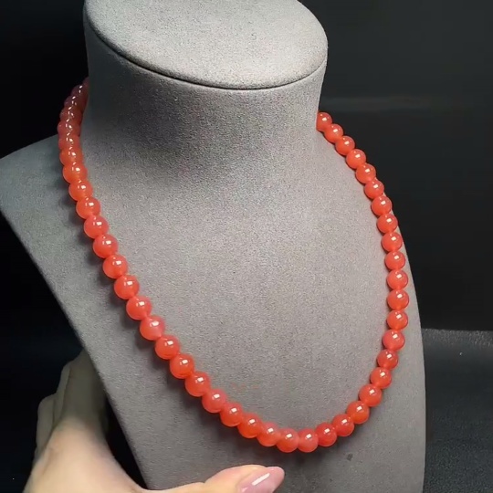 South Red Agate Bracelet with Visible Organic Matter, Total Weight Approx. 61.78g, Size ~9.2mm