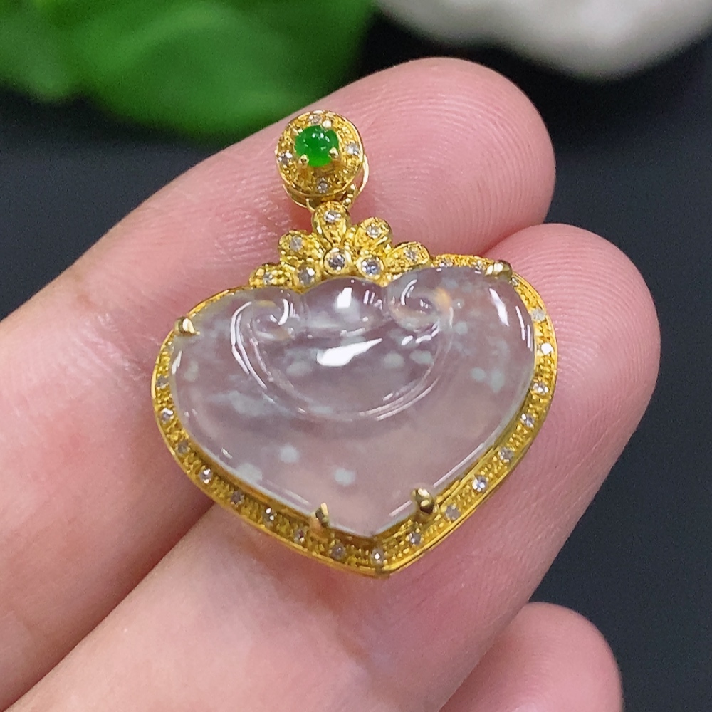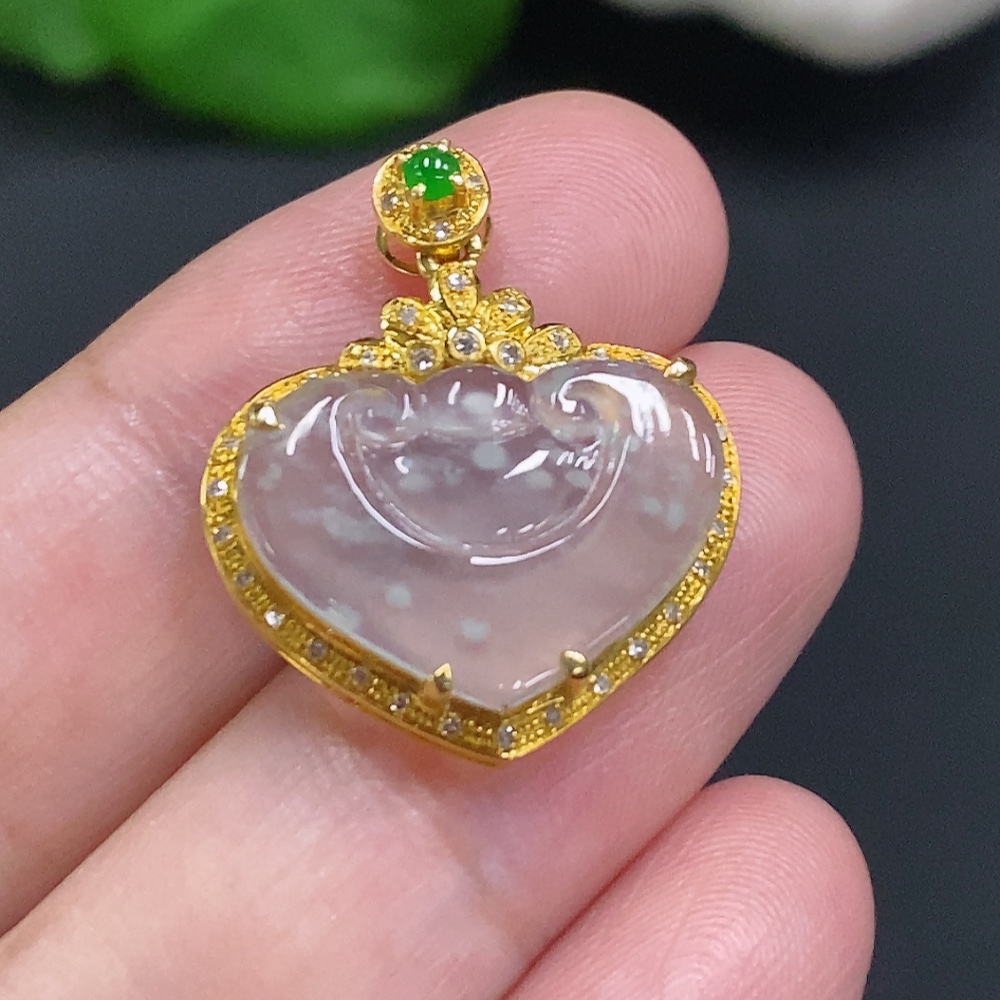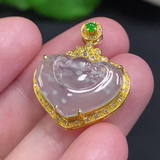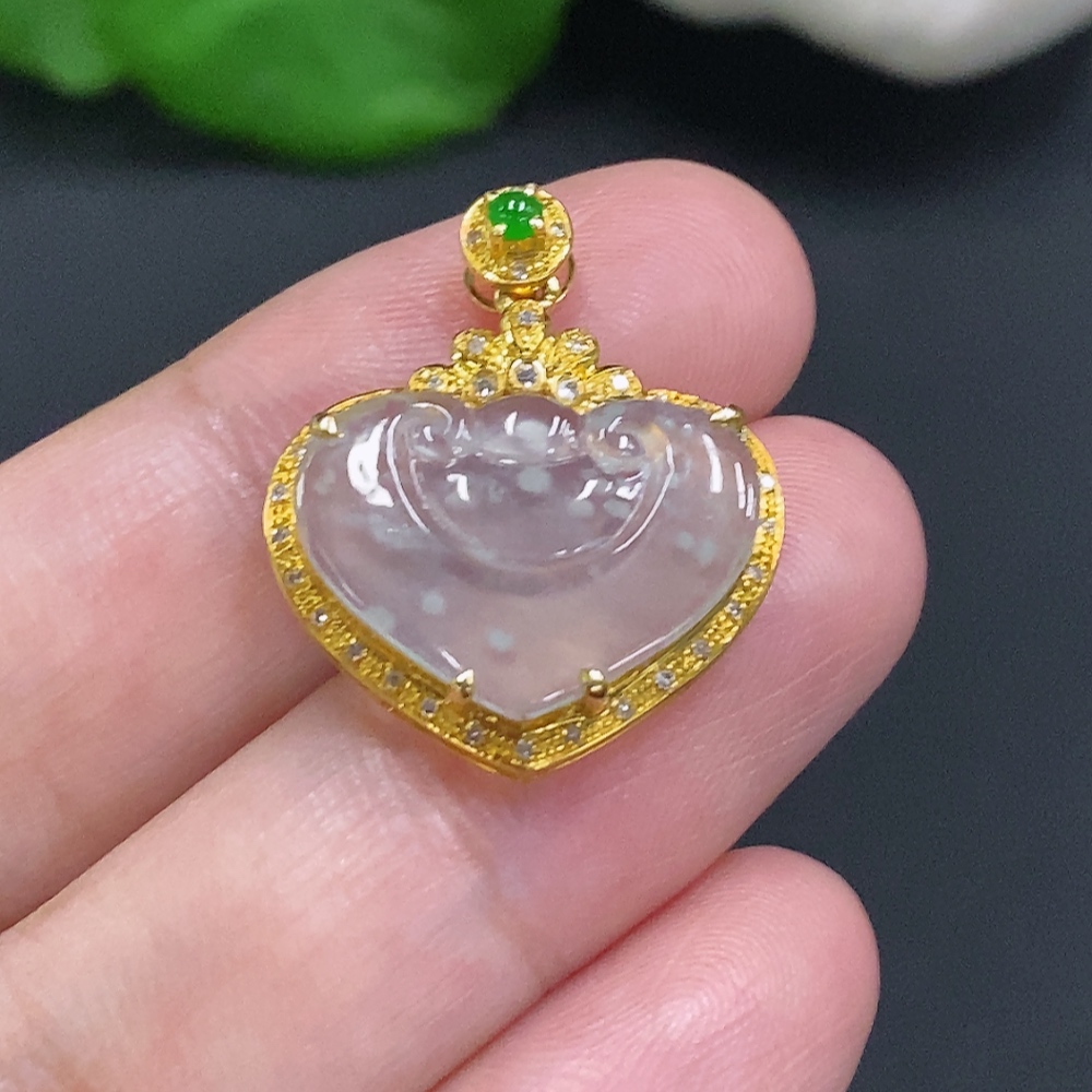 Jadeite Ruyi Inlaid Pendant 18K Gold Total Weight Approx. 2g