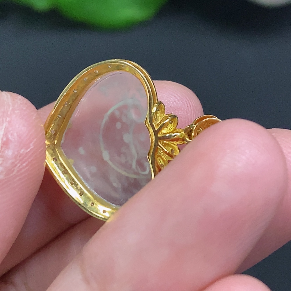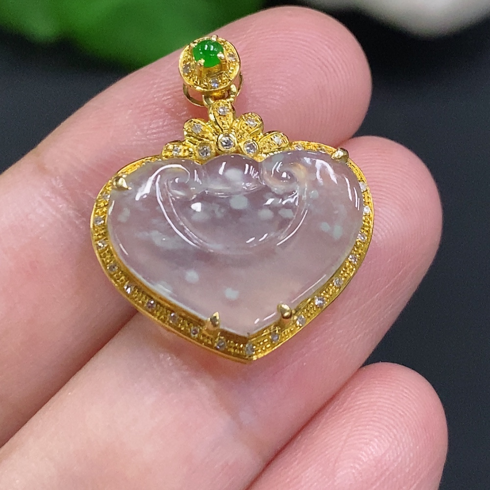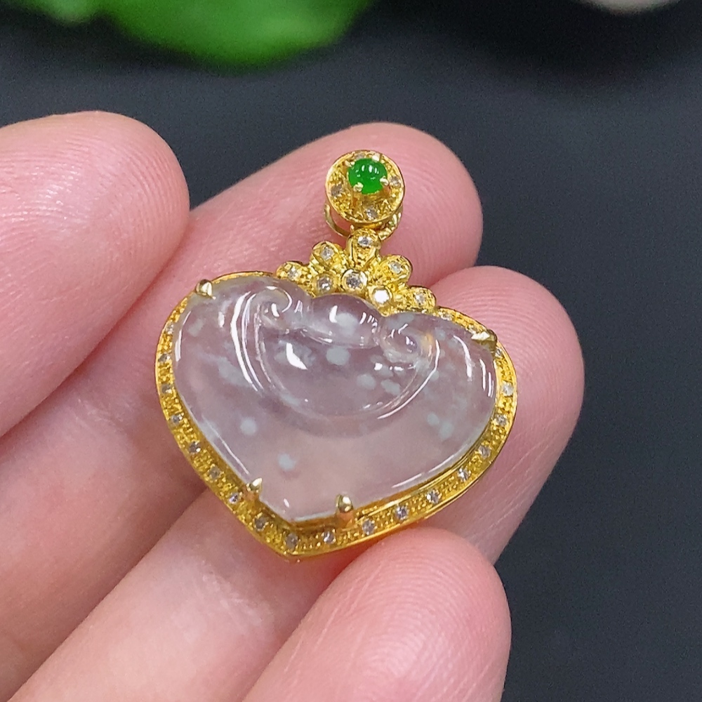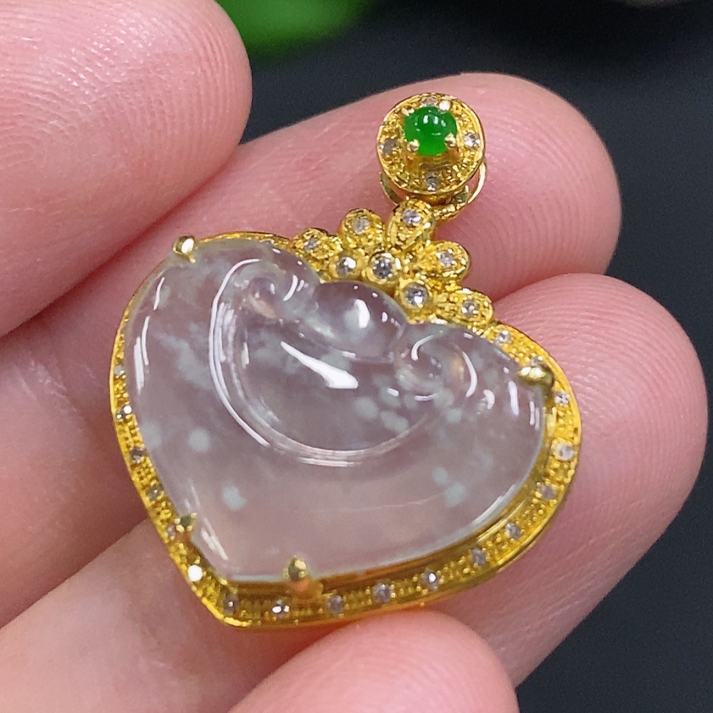 Jadeite Ruyi Inlaid Pendant 18K Gold Total Weight Approx. 2g