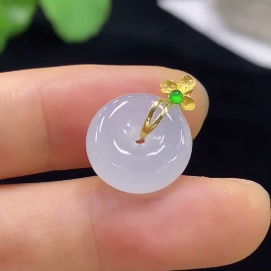 JadeitePeace Pendant with 18K Gold, Total Weight Approximately 2.52g