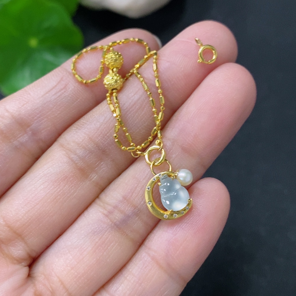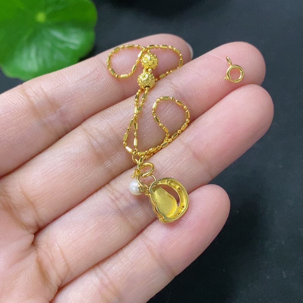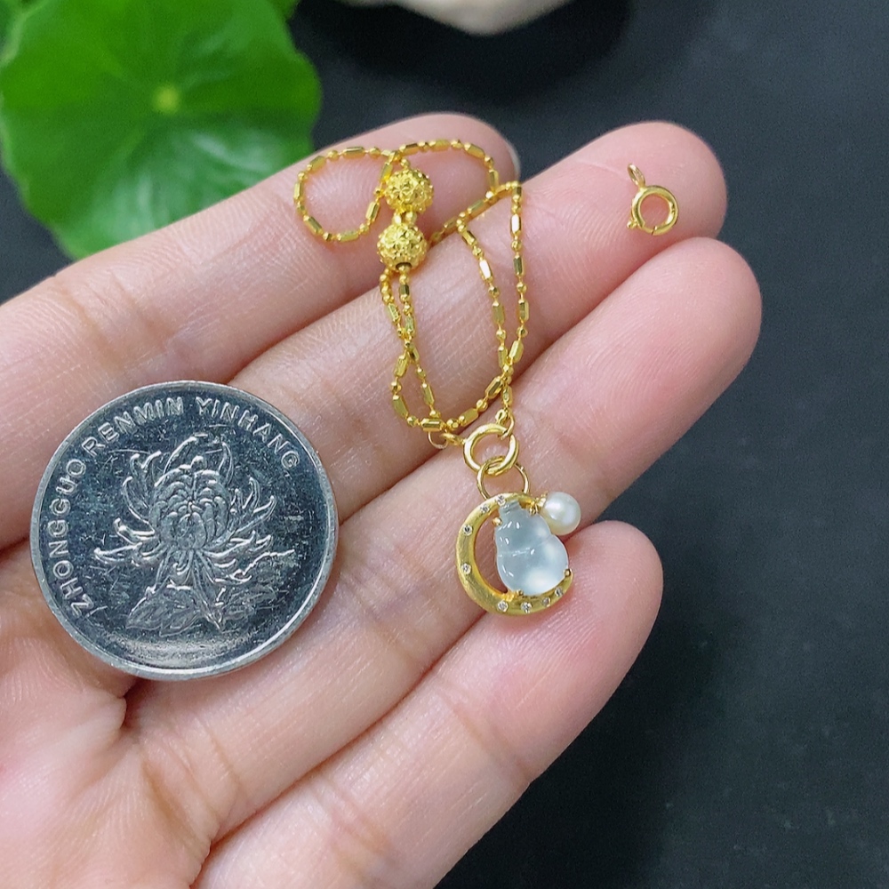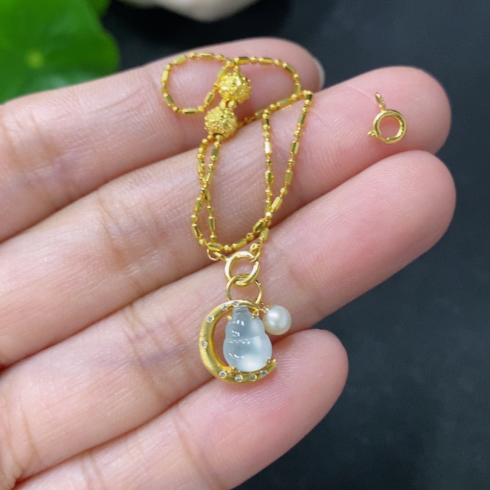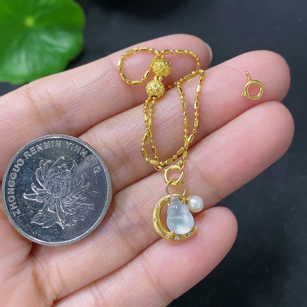 Jadeite Gourd Inlaid Bracelet 18k Gold Inlaid Total Weight Approx. 1.7g With Non-Grade A Stones