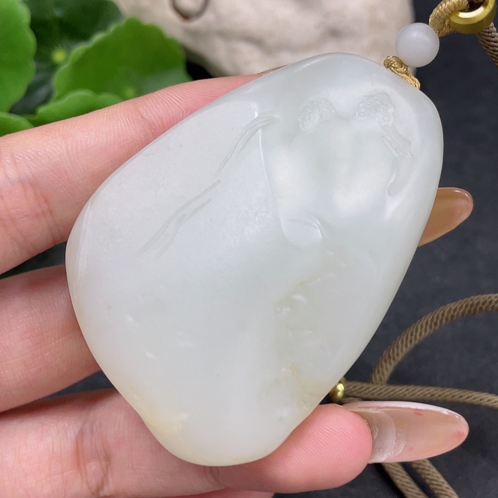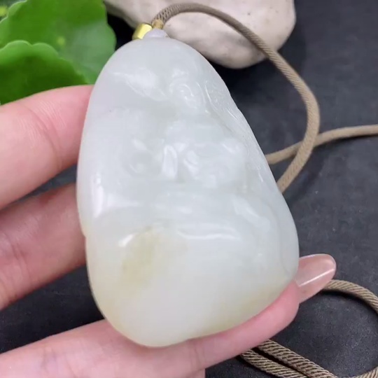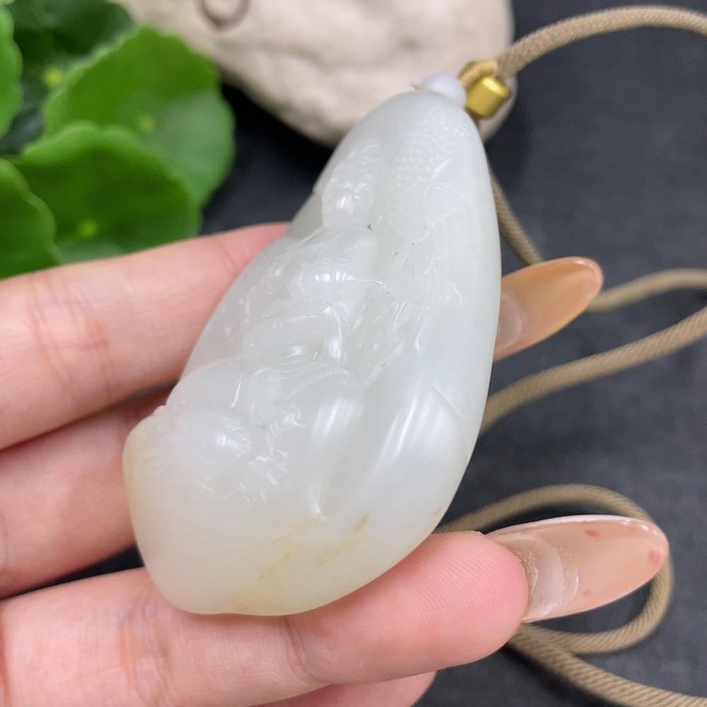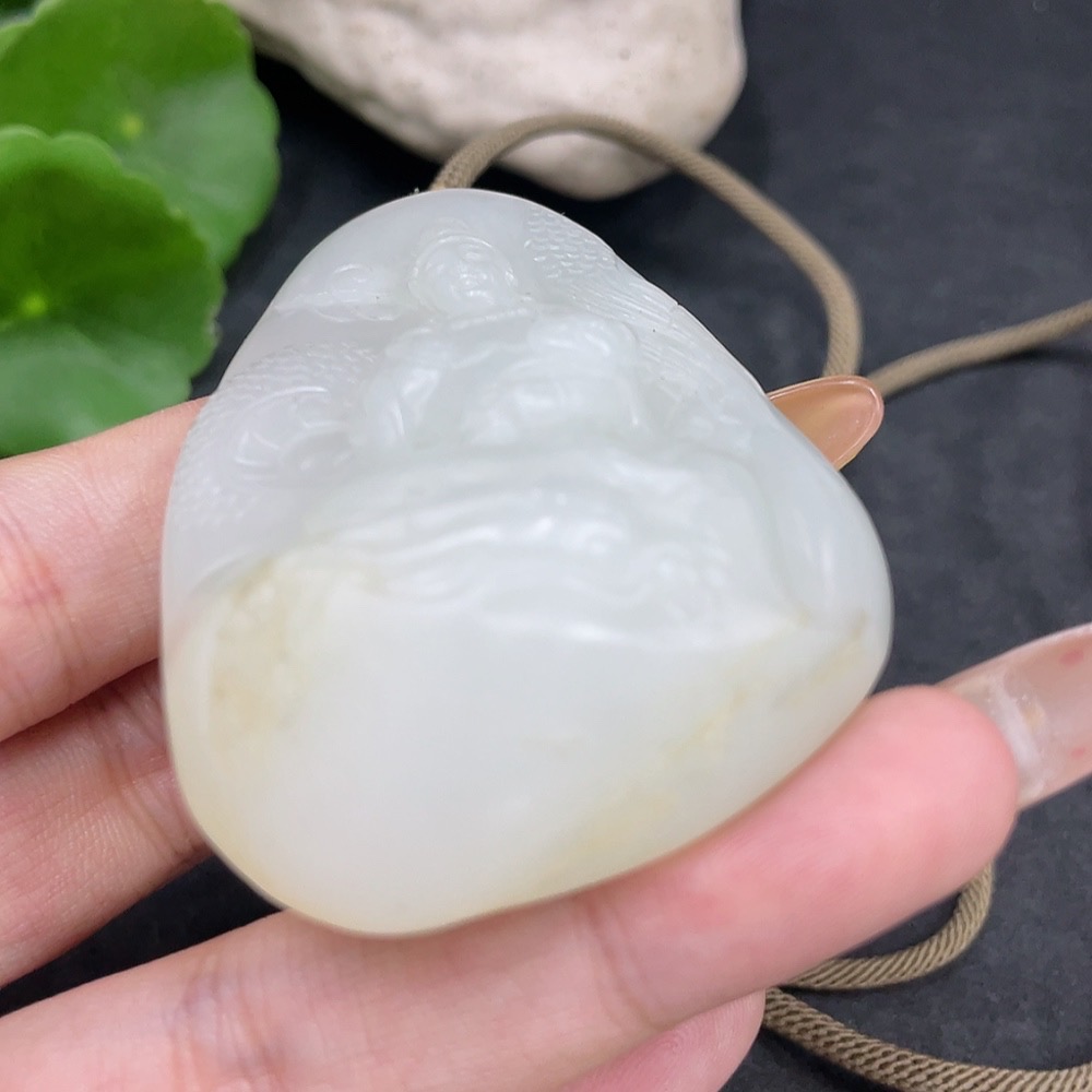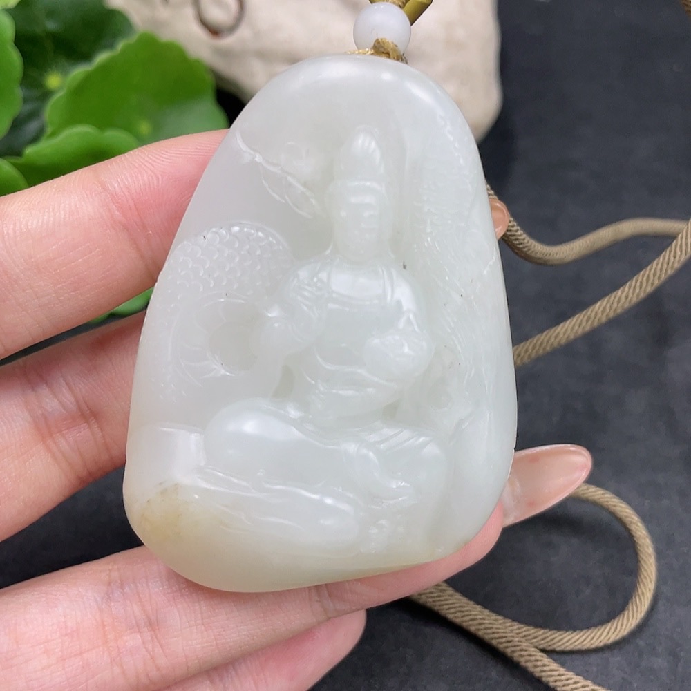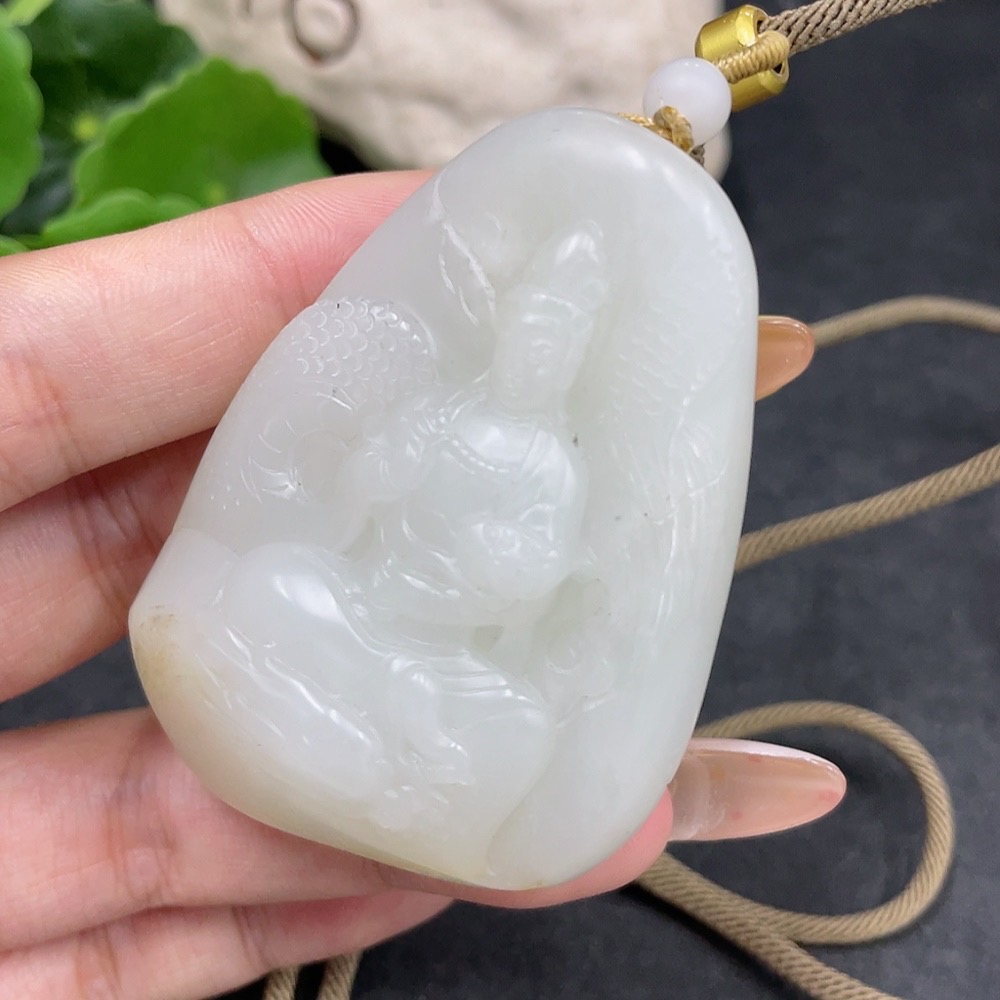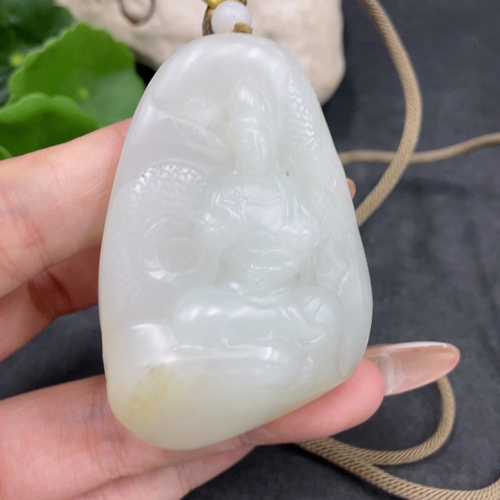 Hetian Jade Pendant Guanyin with Undetermined Skin Color Origin Total Weight (Including Rope) Approx. 79g