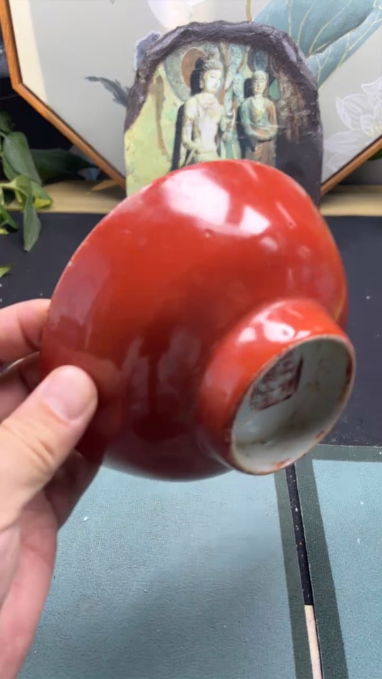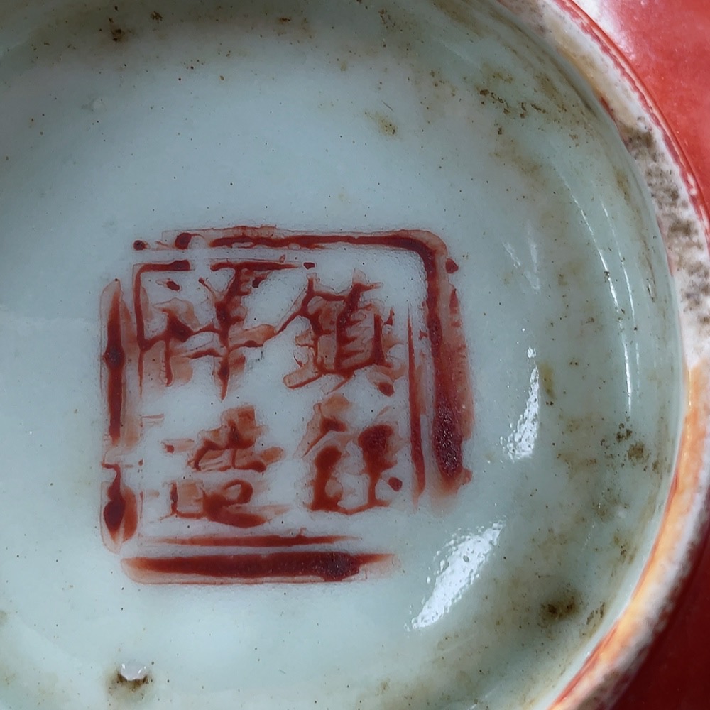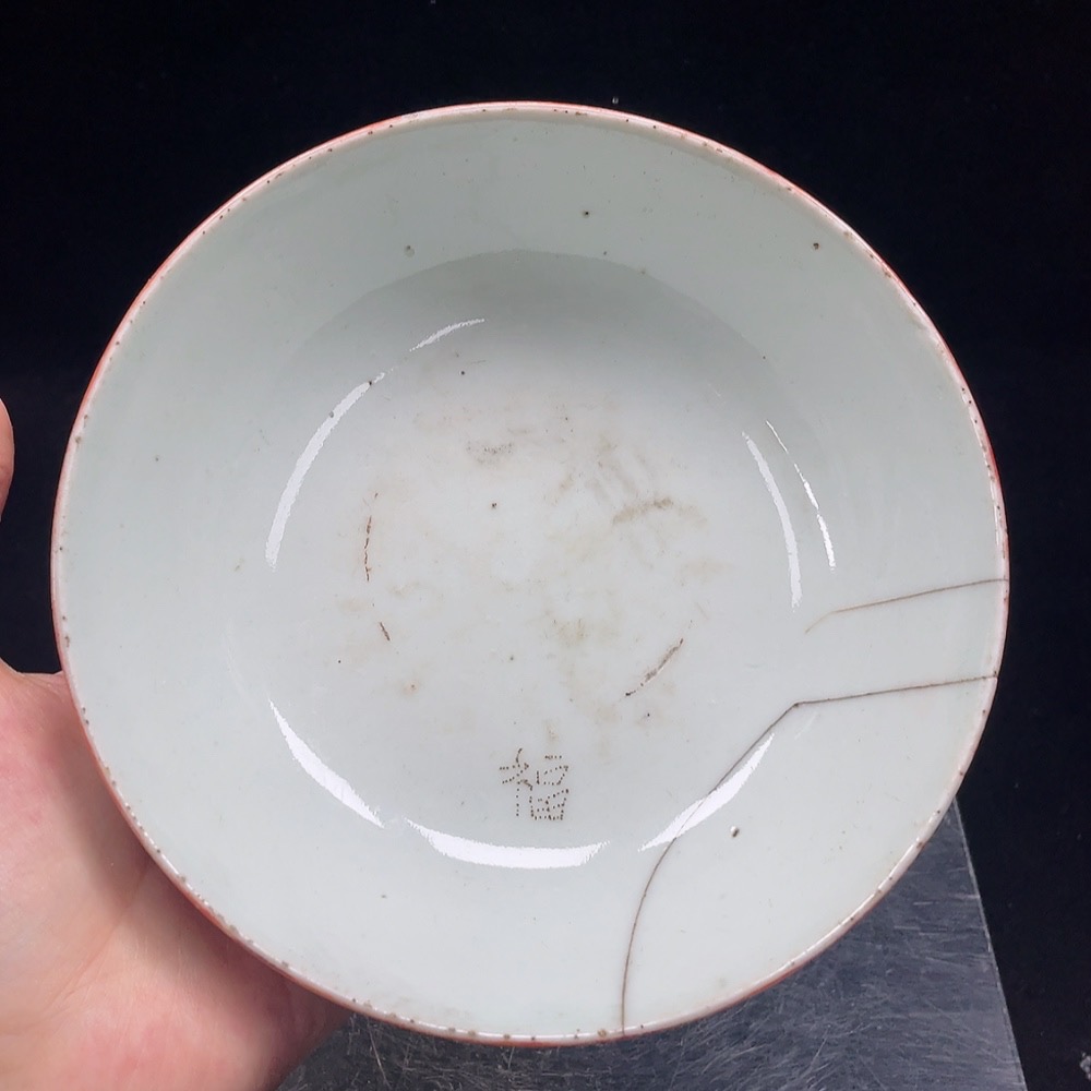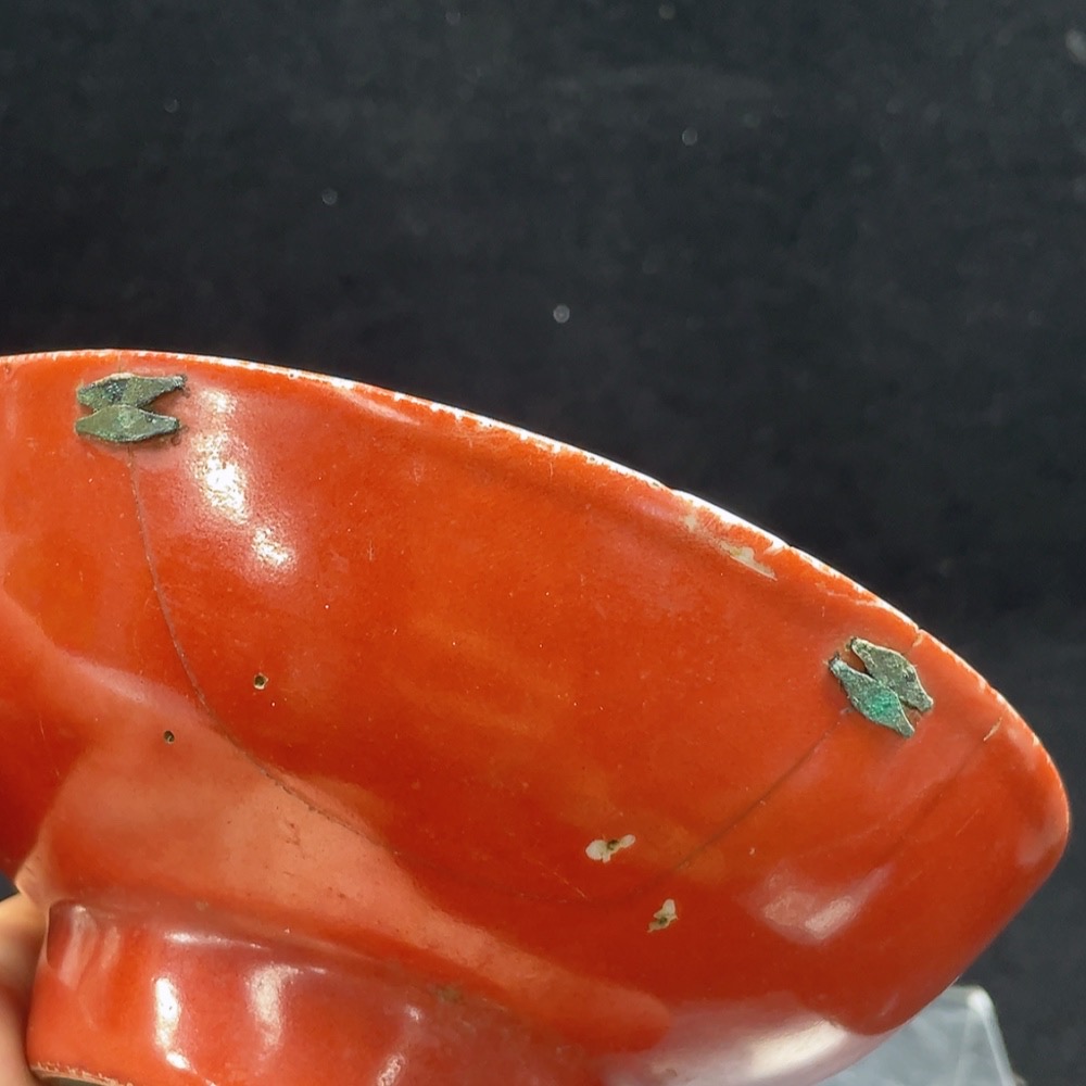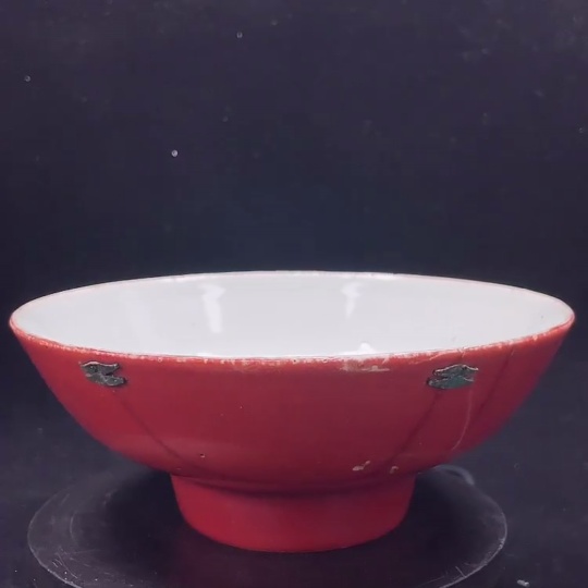 Repaired Republic of China red-glazed ceramic bowl (subject to actual item)