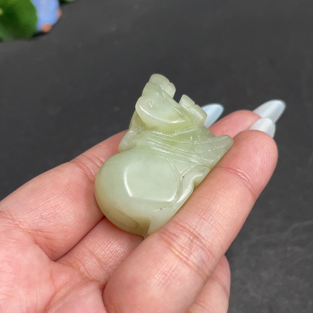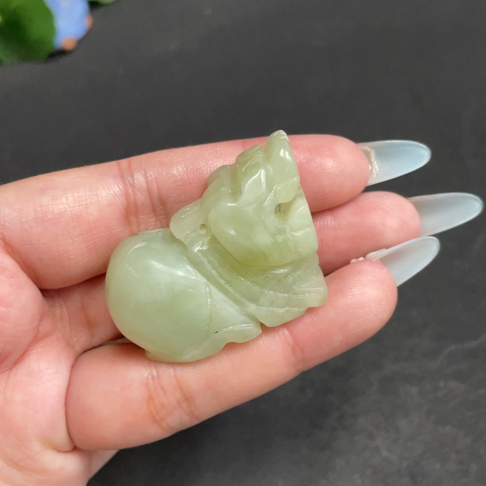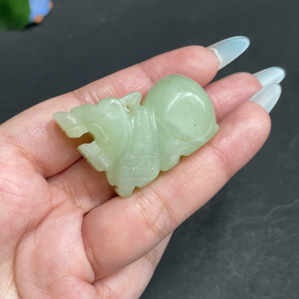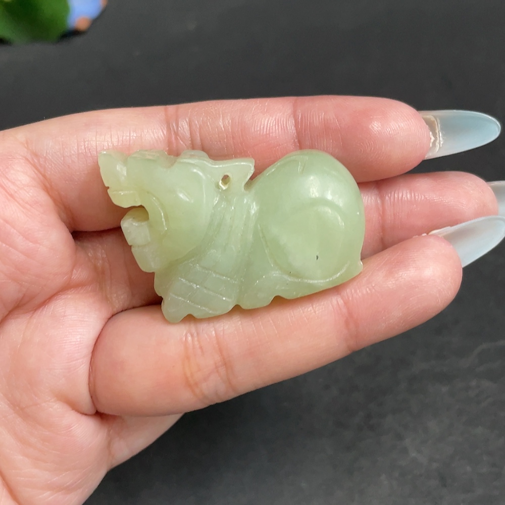 Xiuyu (serpentine jade) pendant, auspicious beast