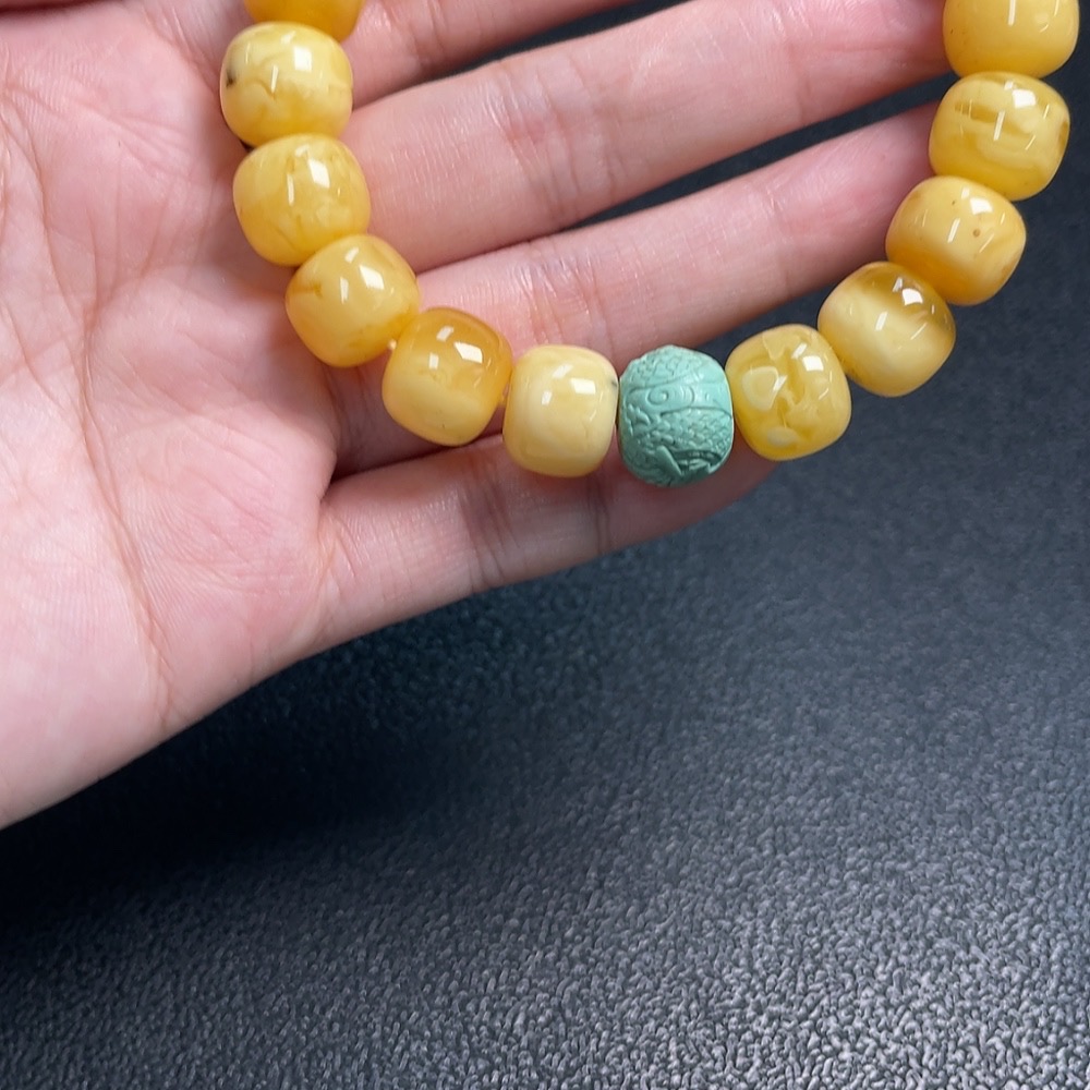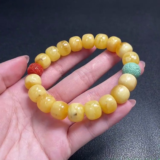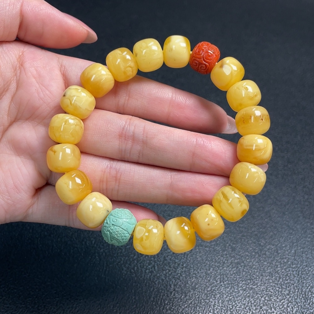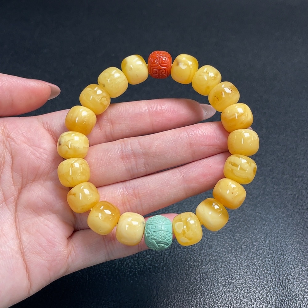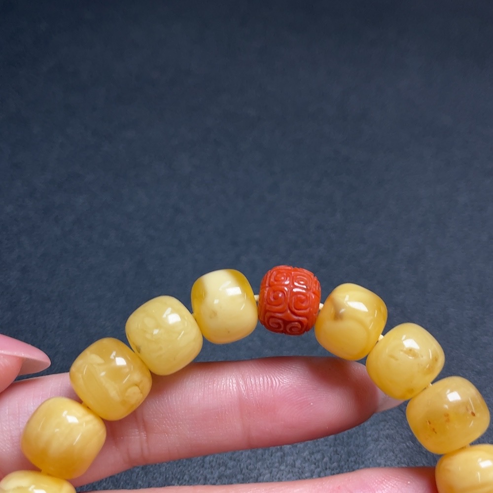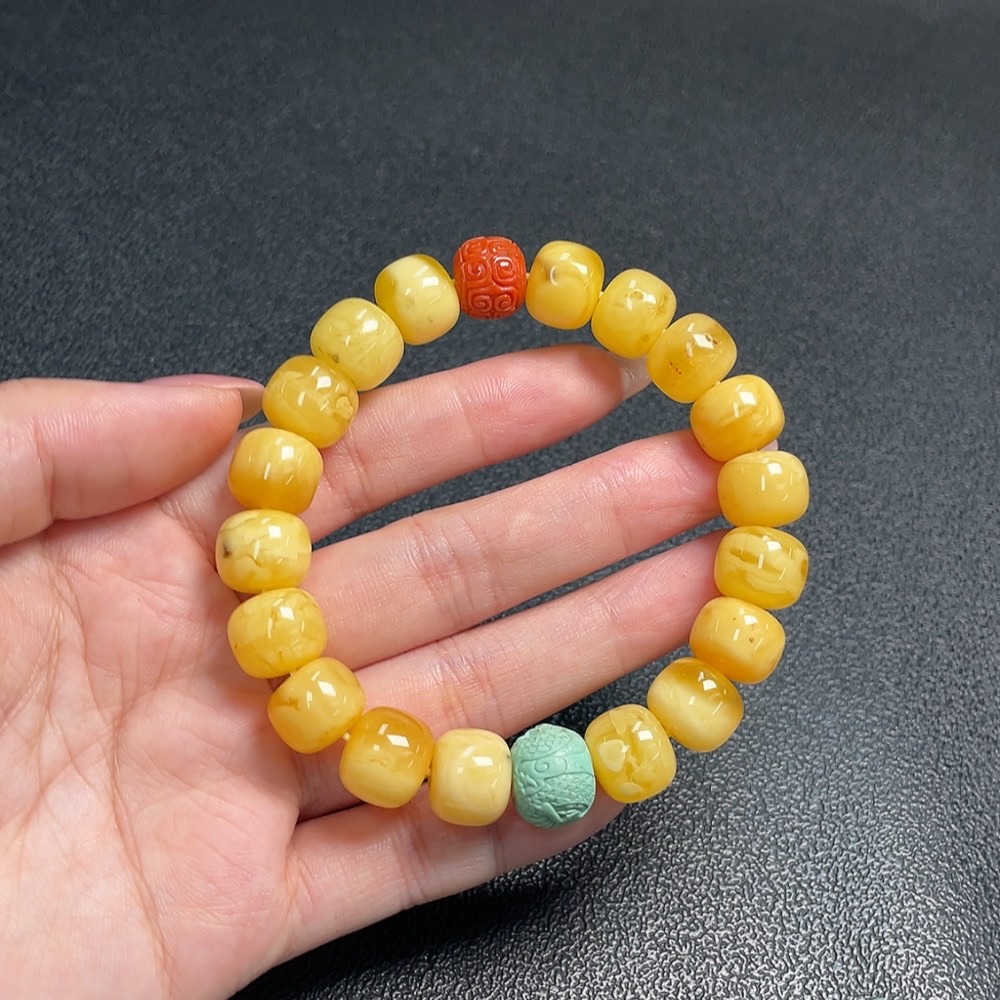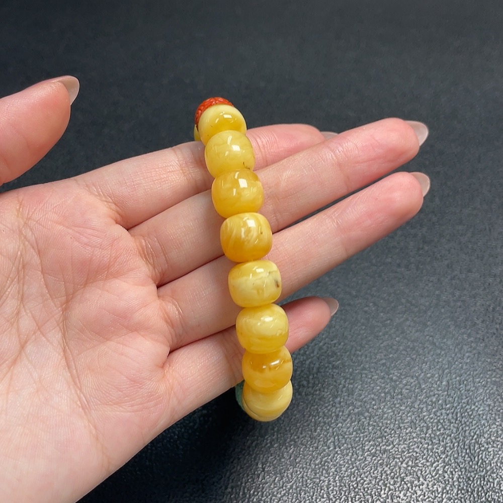 Amber and Beeswax Bracelet with Southern Red Agate, Repaired, Possible Non-Natural Matching Stones, Total Weight Approx. 21.9g, Size About 12.1mm