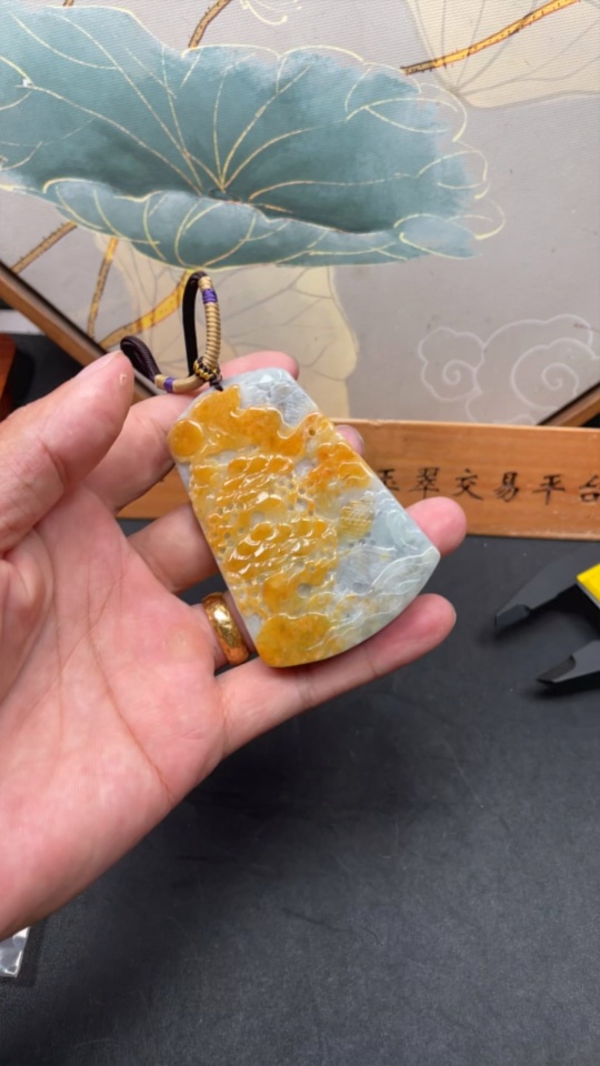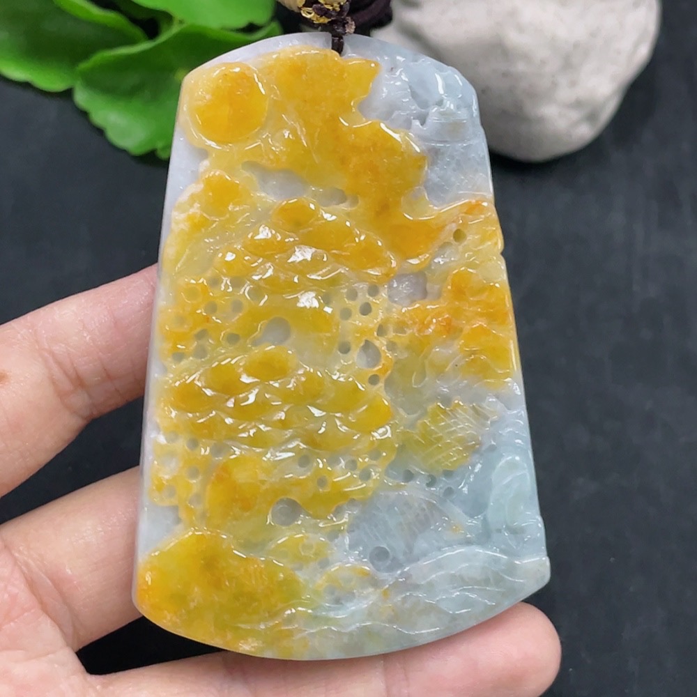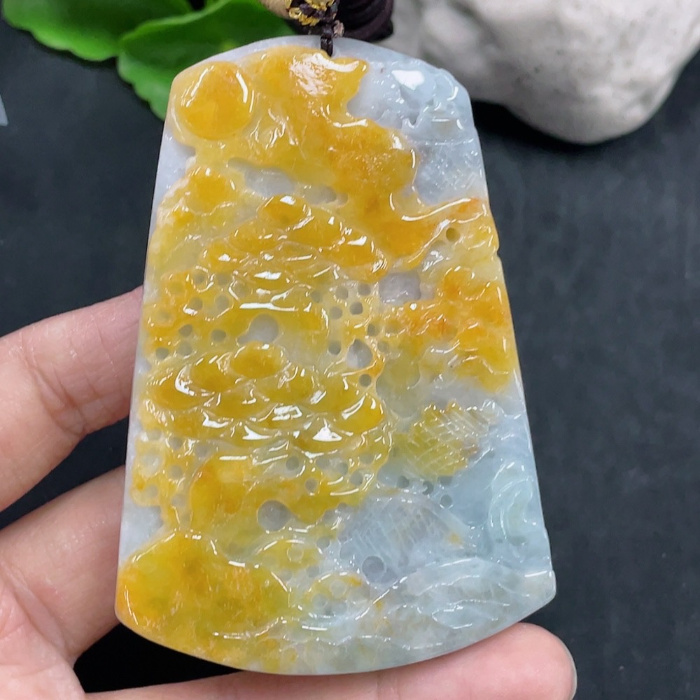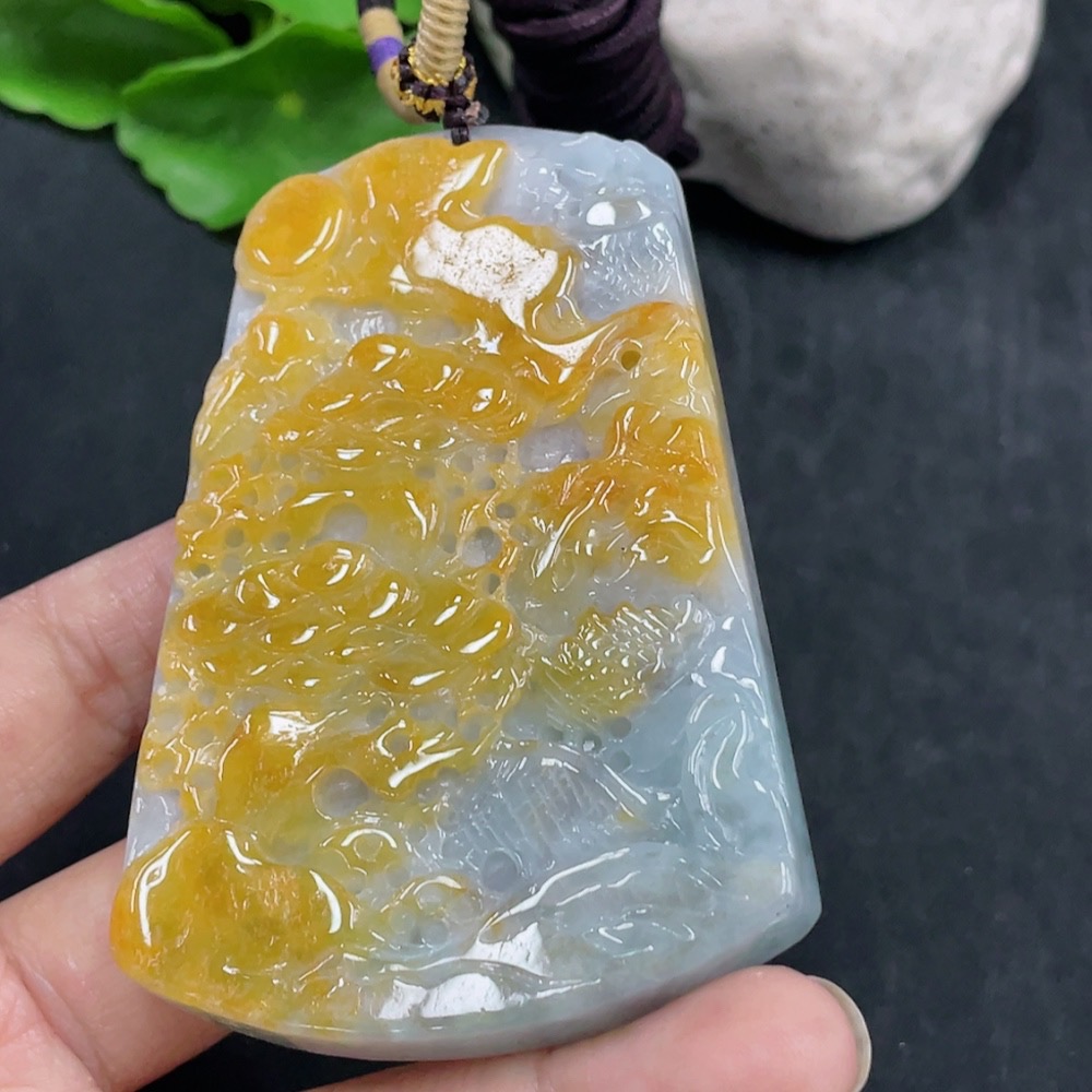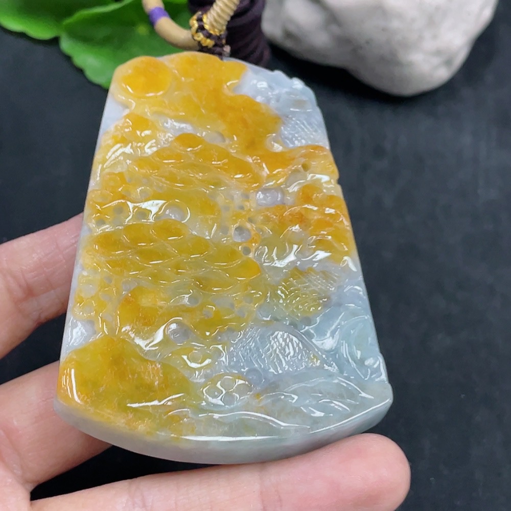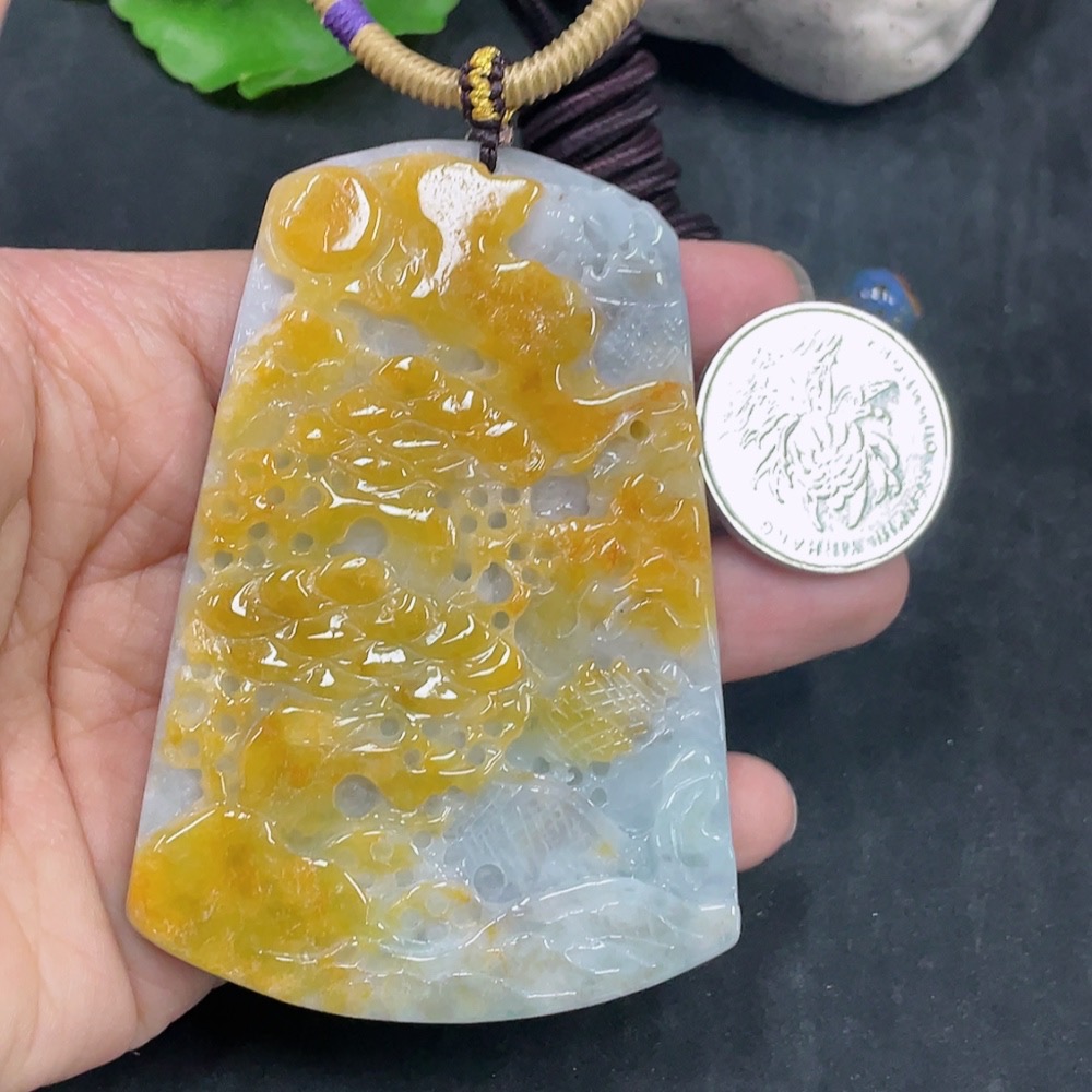JadeiteLandscape Pendant Total Weight Approx. 84.36g (including rope weight) Color origin undetermined