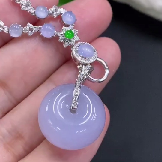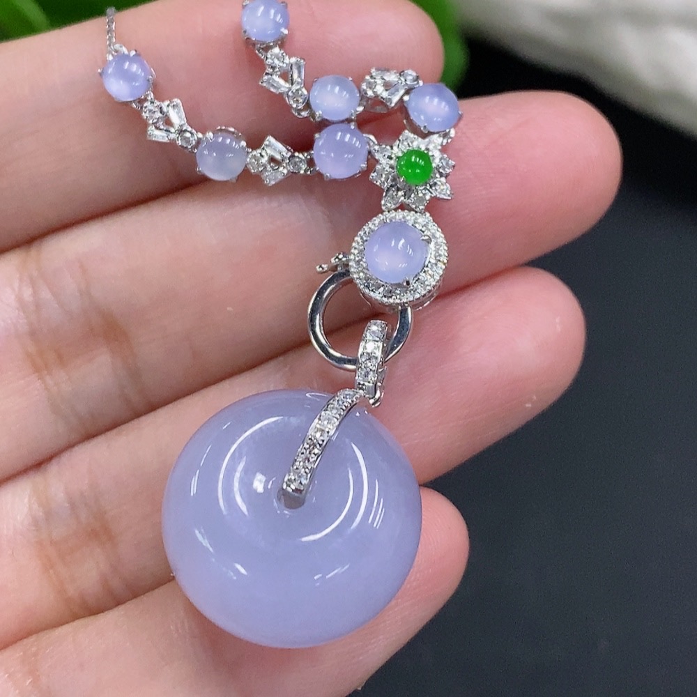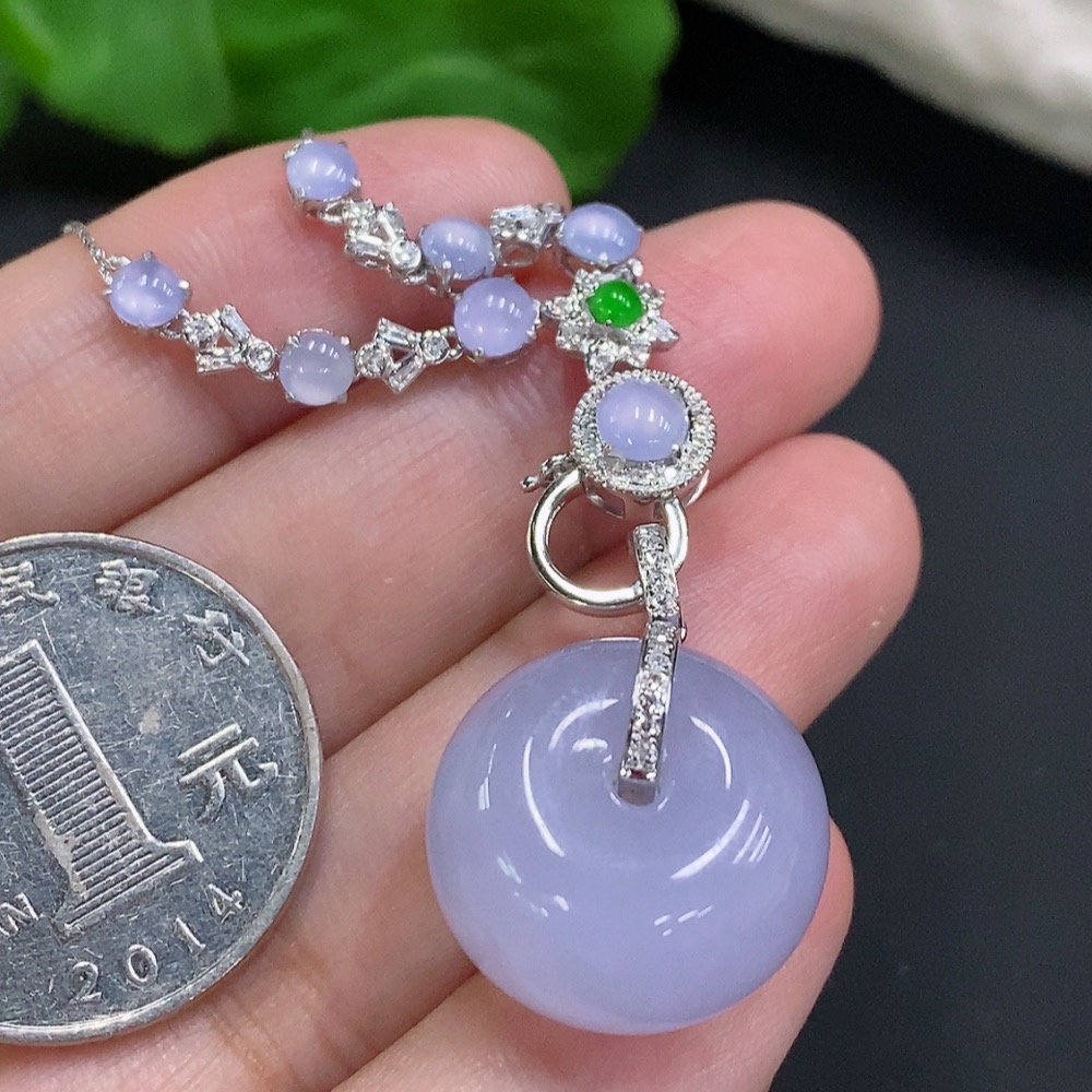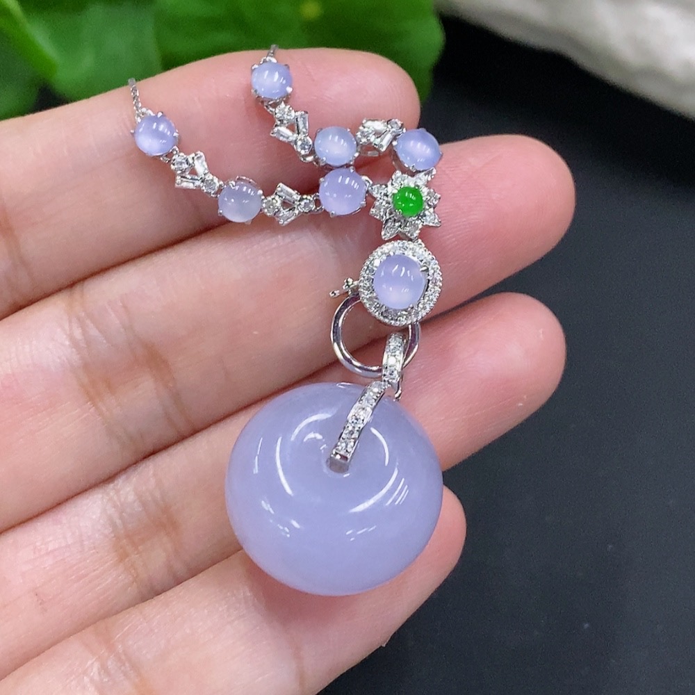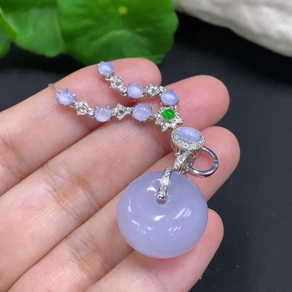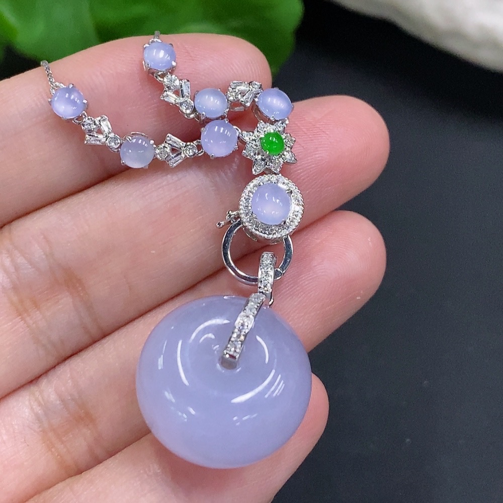Jadeite Safety Pendant with 18K Gold, Total Weight Including Chain Approx. 13g