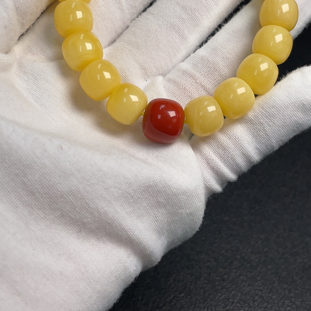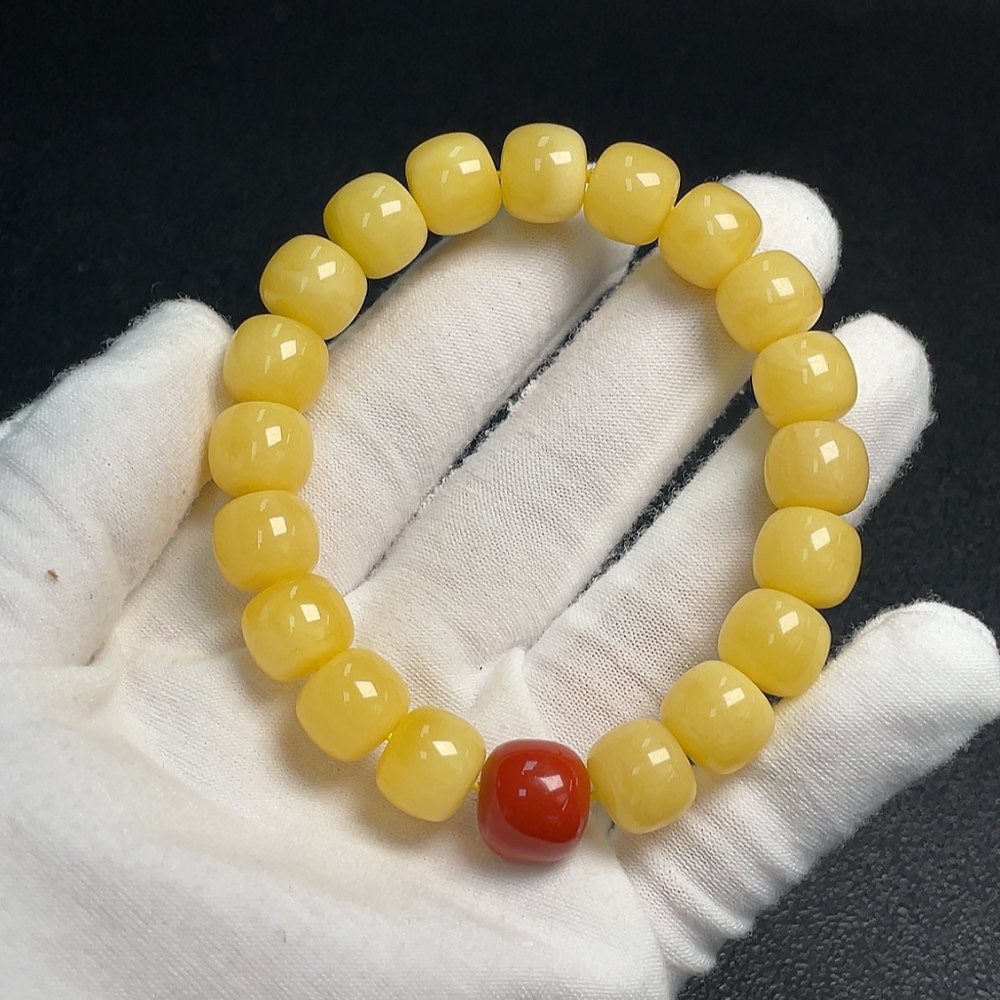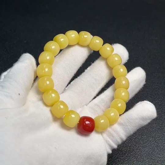 Amber and Beeswax Bead Bracelet