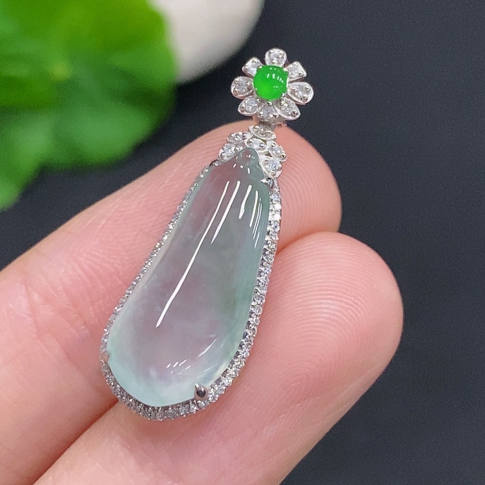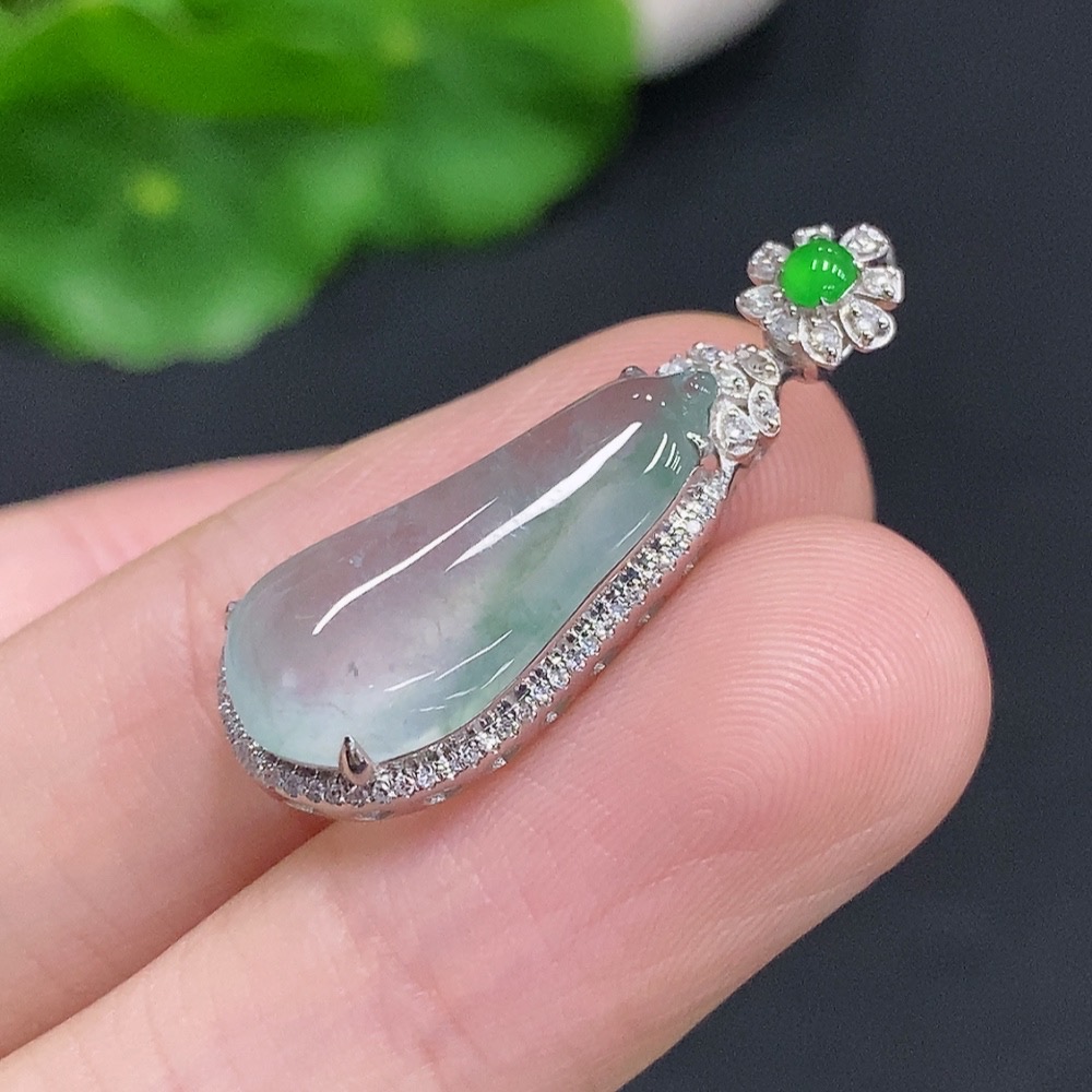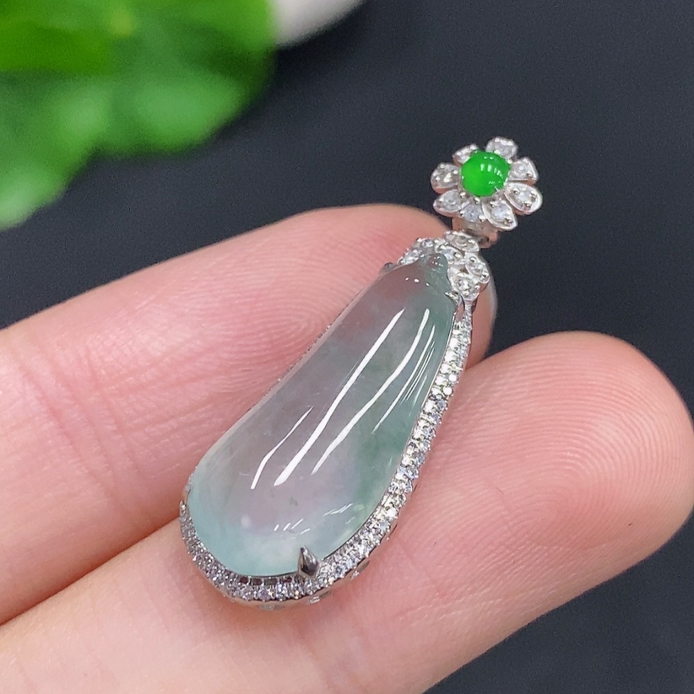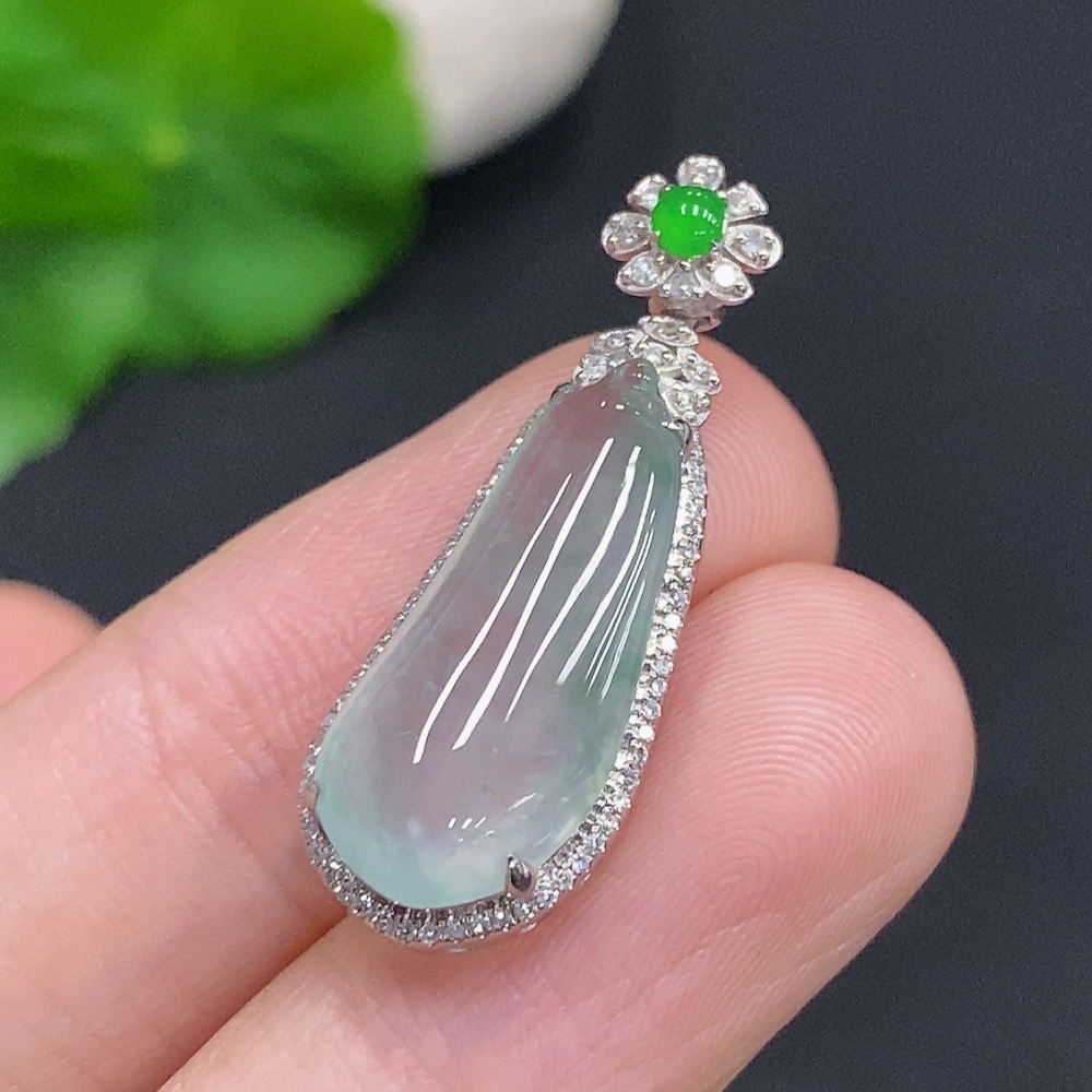 Jadeite Blessing Melon Pendant with 18K Gold and Diamond Accents (Total Weight Approx. 3g)