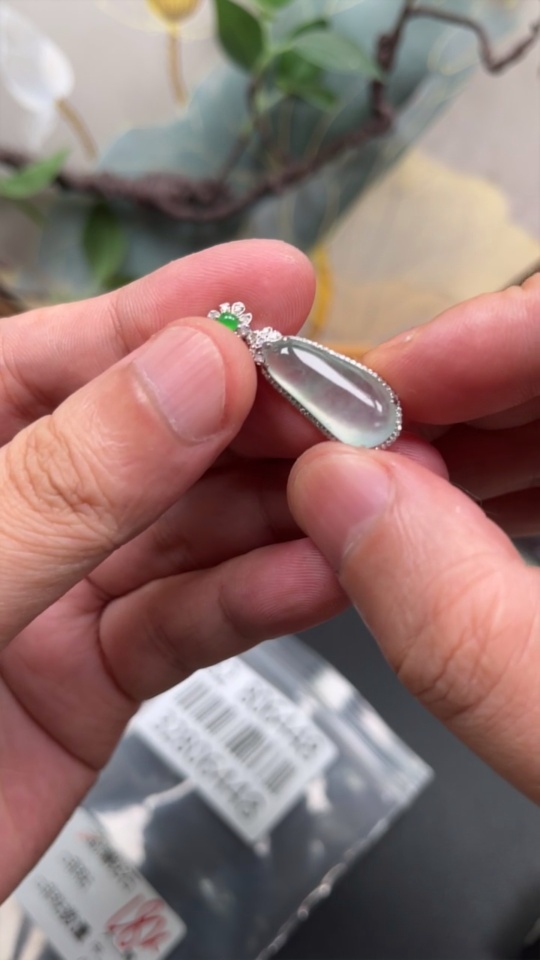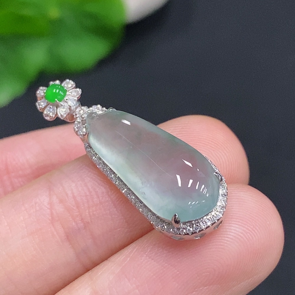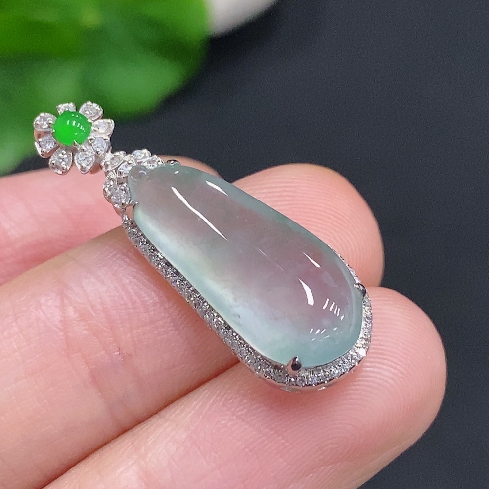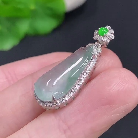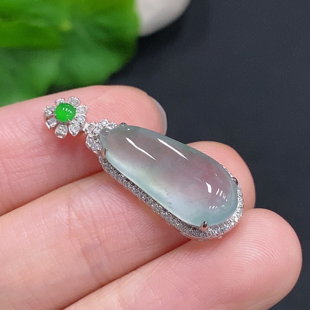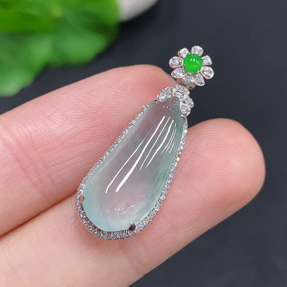 Jadeite Blessing Melon Pendant with 18K Gold and Diamond Accents (Total Weight Approx. 3g)