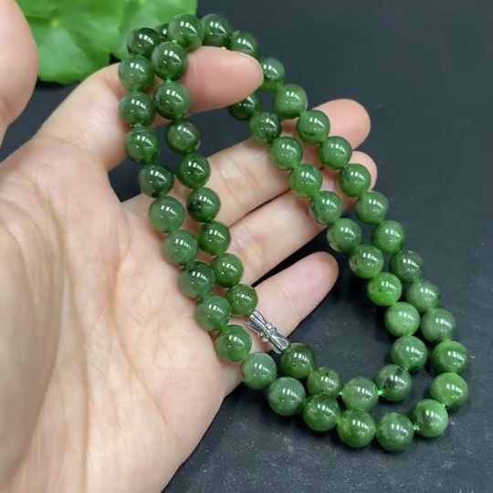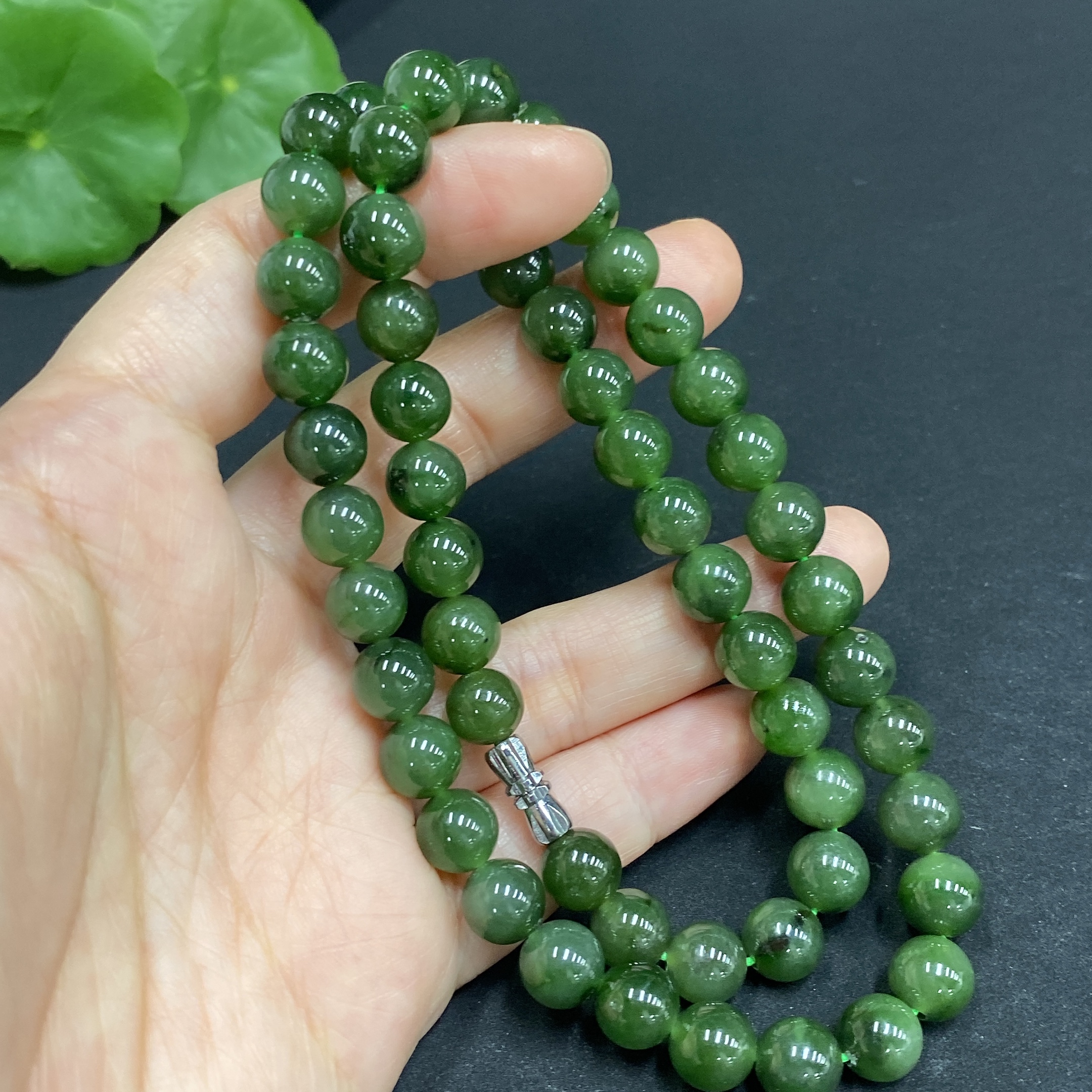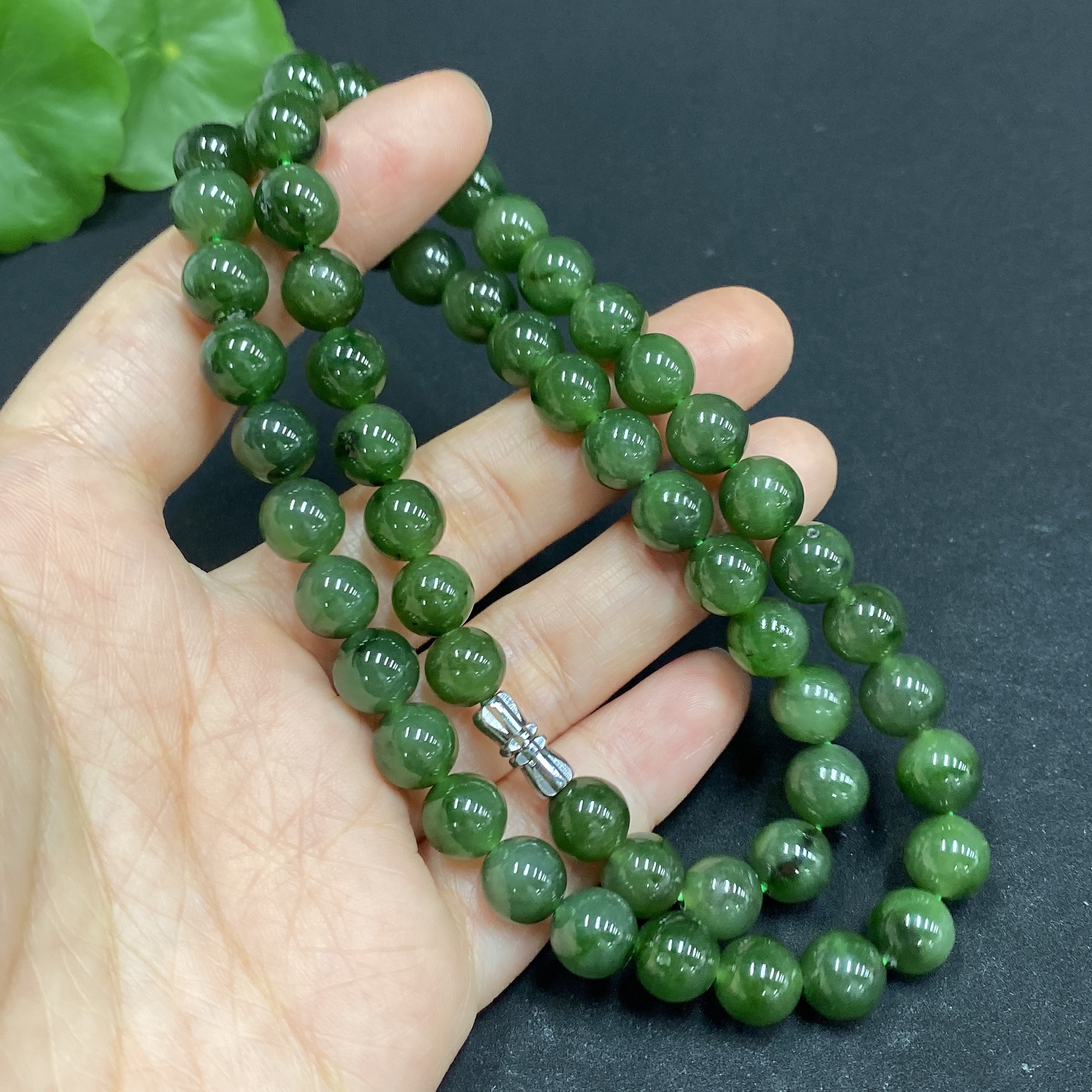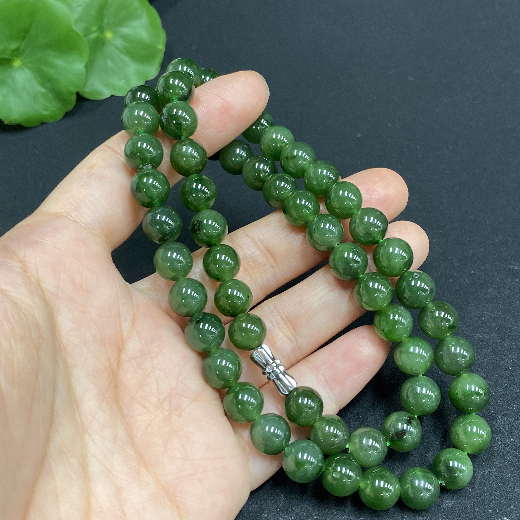 Hetian Jade Bead Necklace, approx. 7.9mm, total weight approx. 48.4g