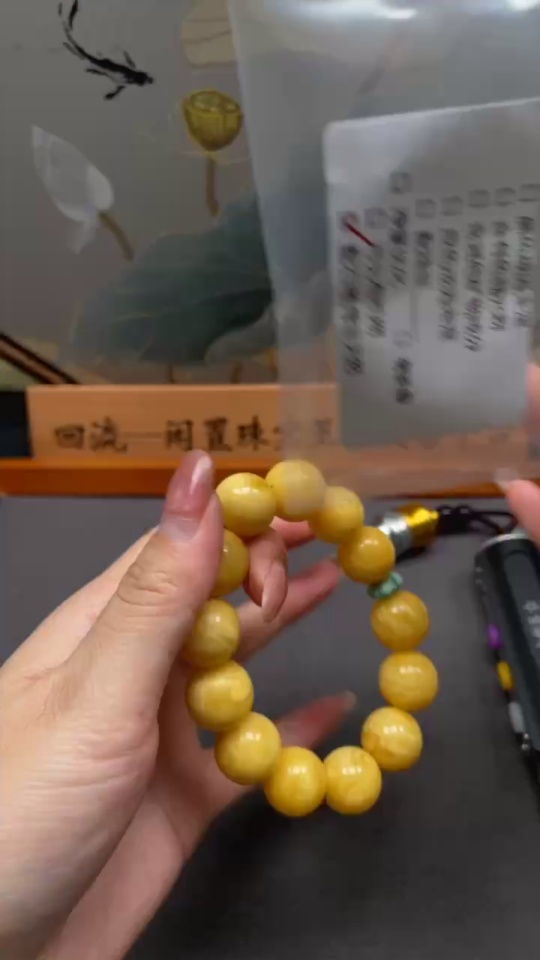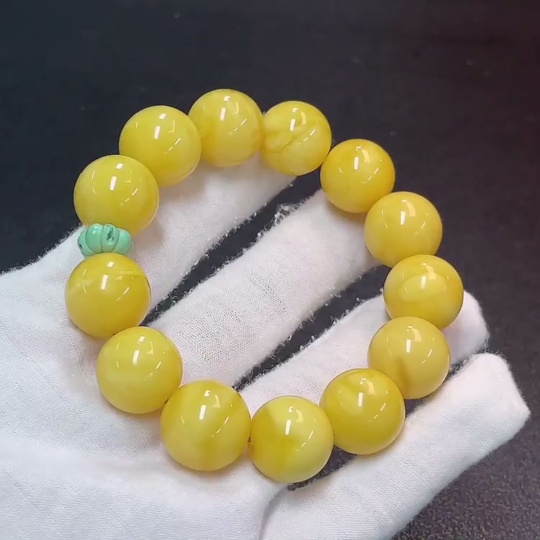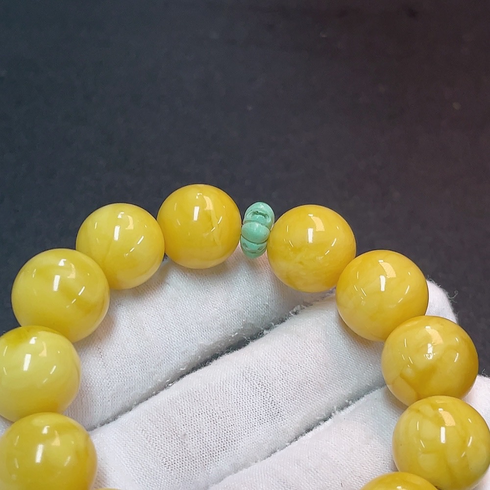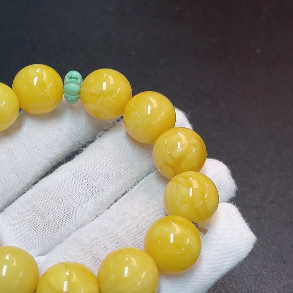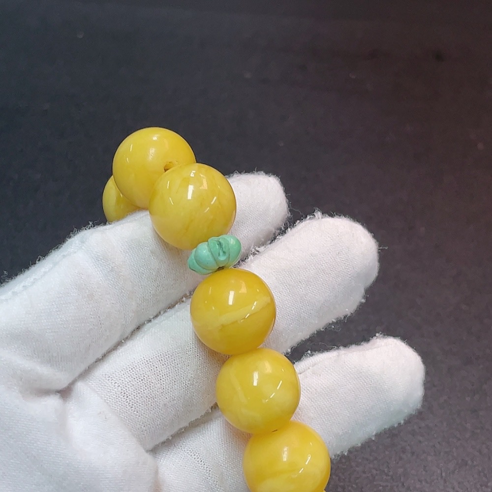Amber Beeswax Bracelet with Non-Natural Accent Stones, Total Weight Approx. 28.64g, Bead Size 15.4mm