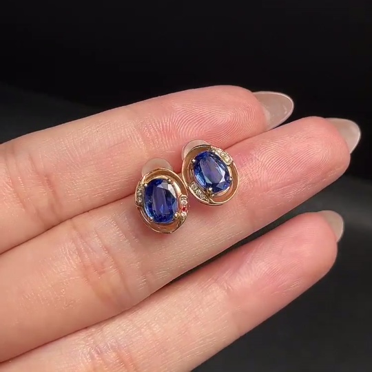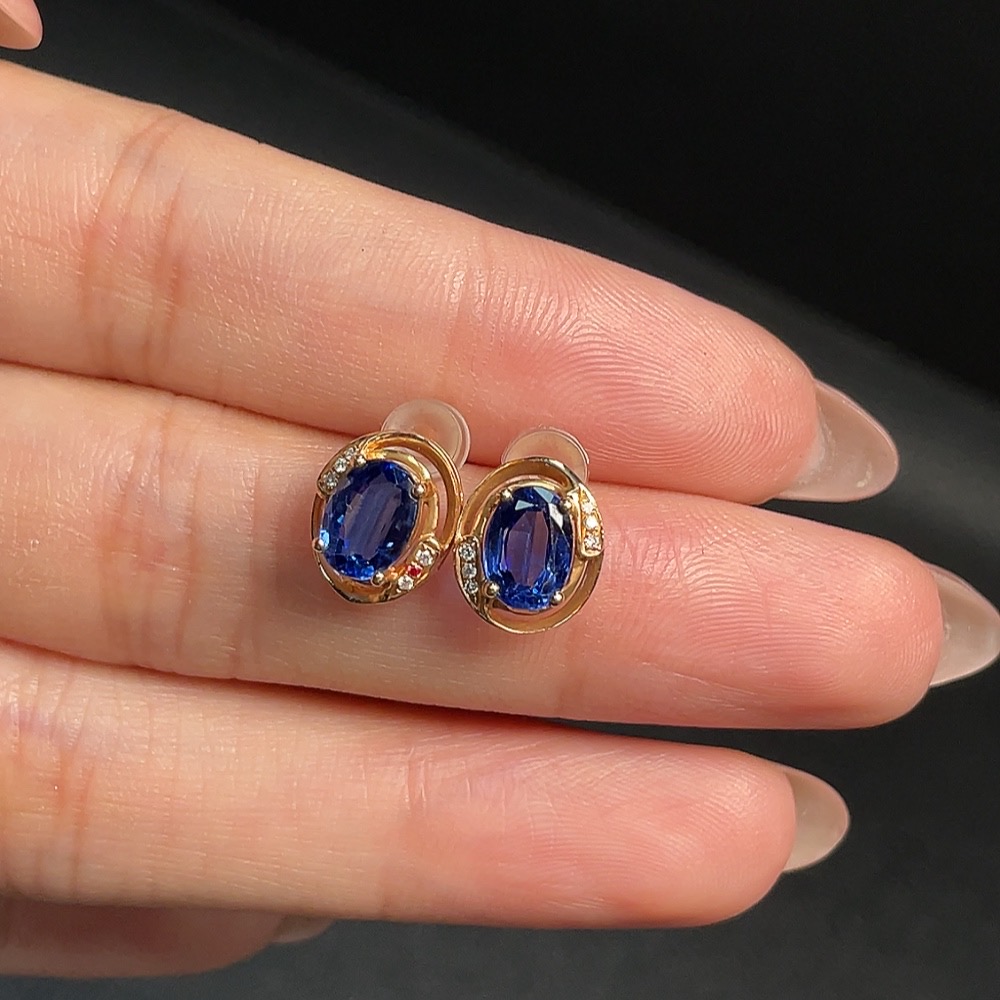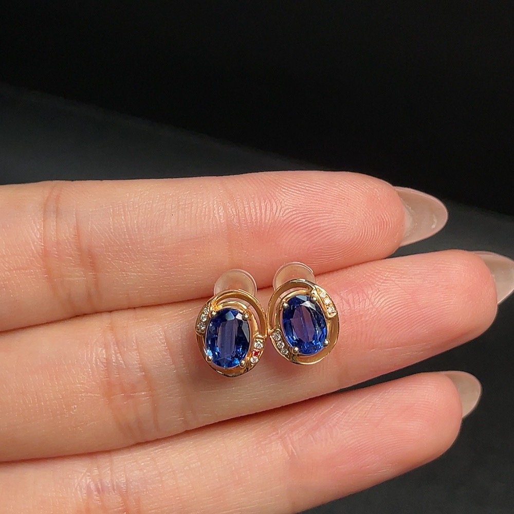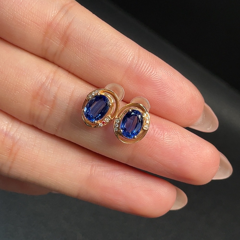 18K Gold Blue Spinel Earrings with Diamond Accents, Non-Diamond Quantity Exceeds 1 Piece, Total Product Weight Approximately 2.08g