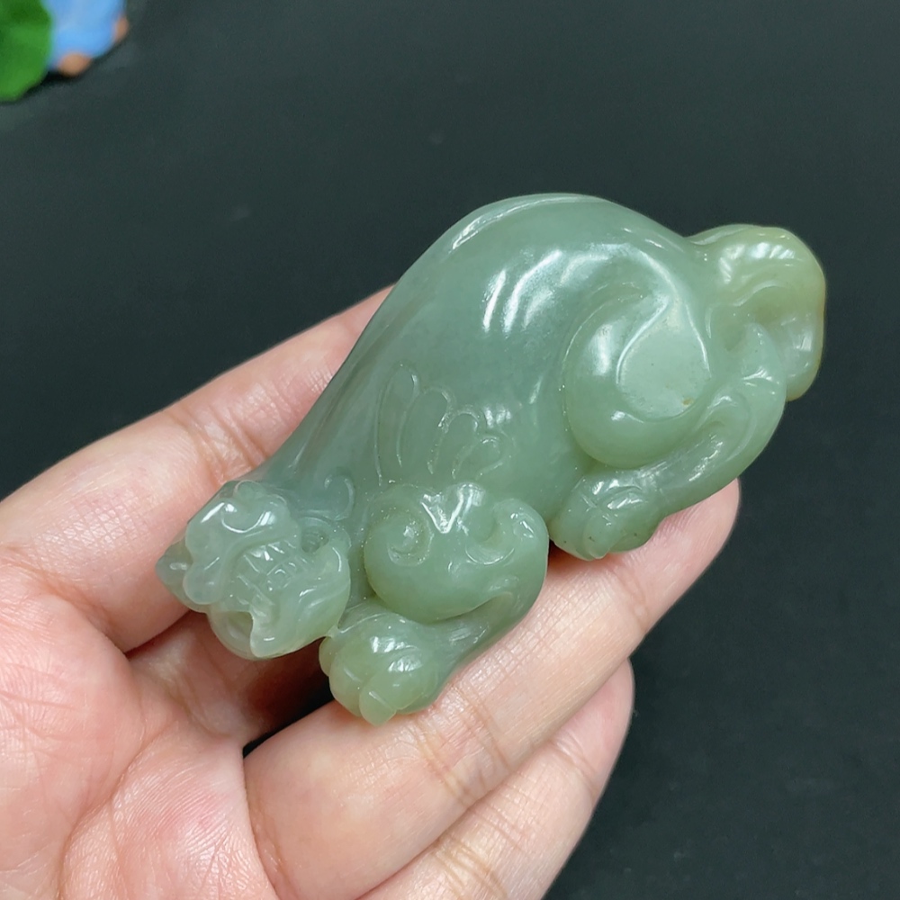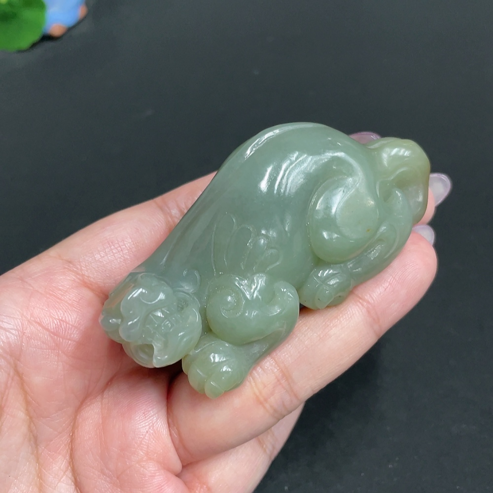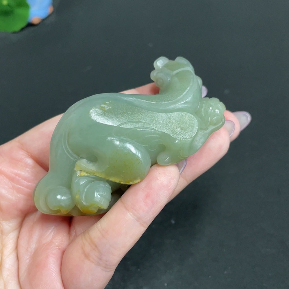 Hetian Jade Handheld Piece - Pixiu - Undetermined Skin Color Origin - Total Weight Approx. 100.6g
