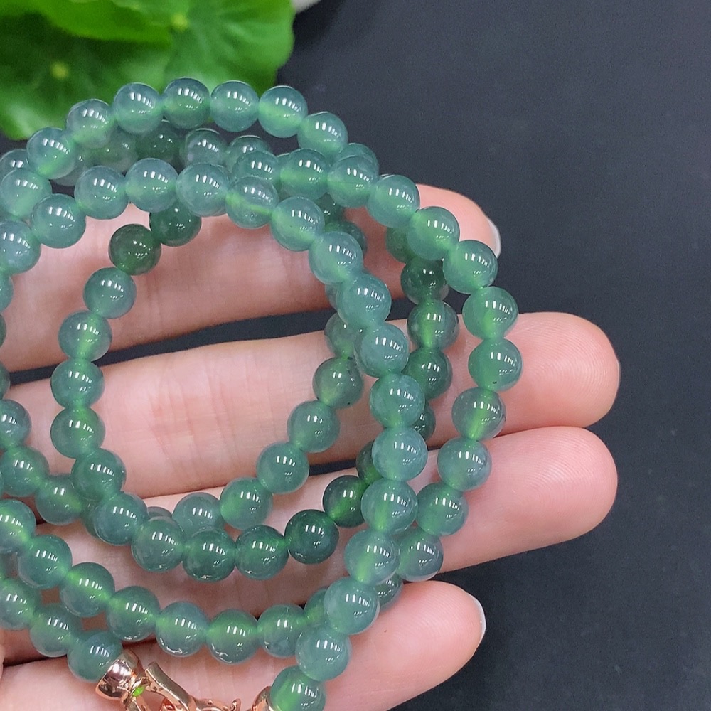 Jadeite Bead Necklace Non-Gold Setting Total Weight Approx. 42g Size About 5.9mm