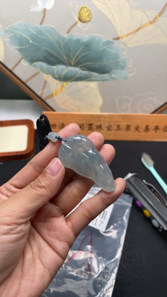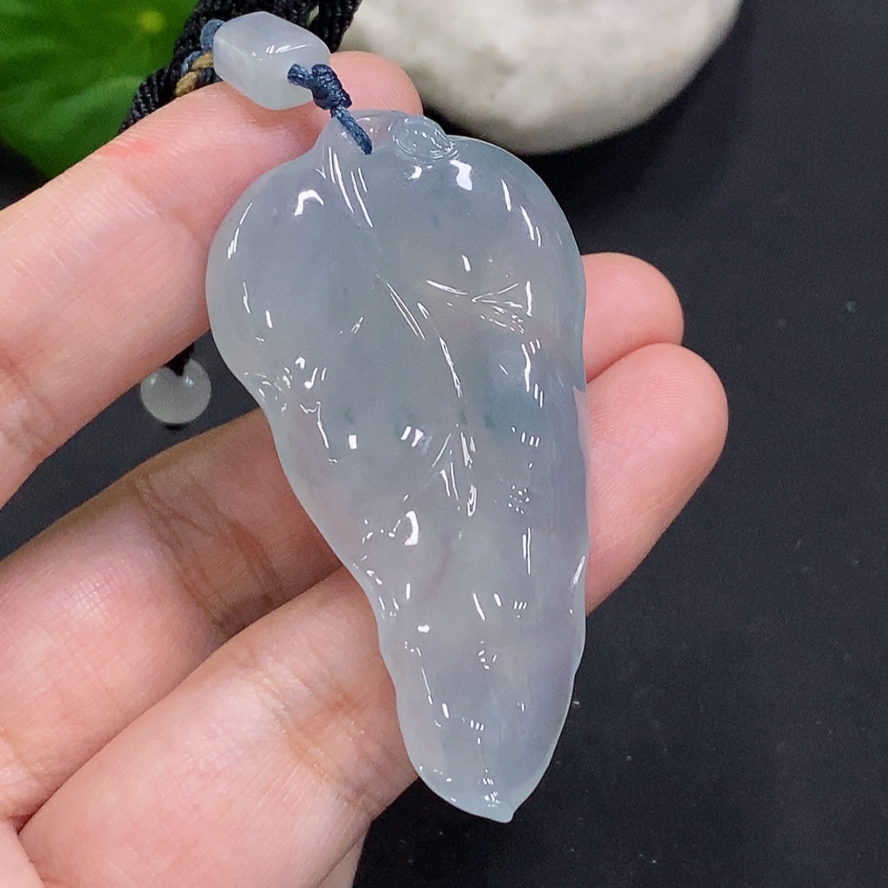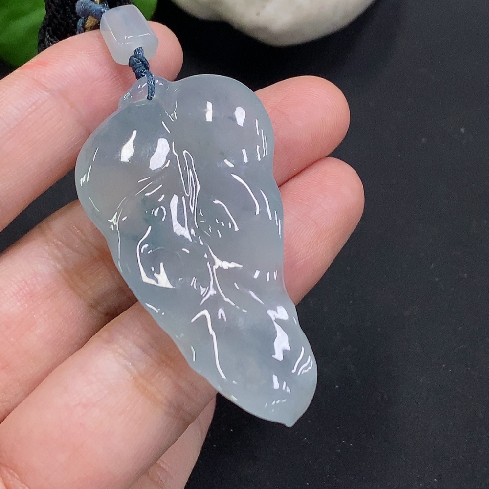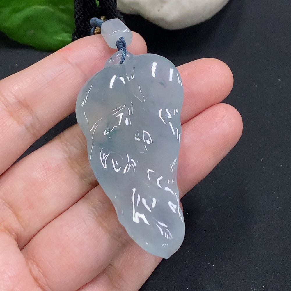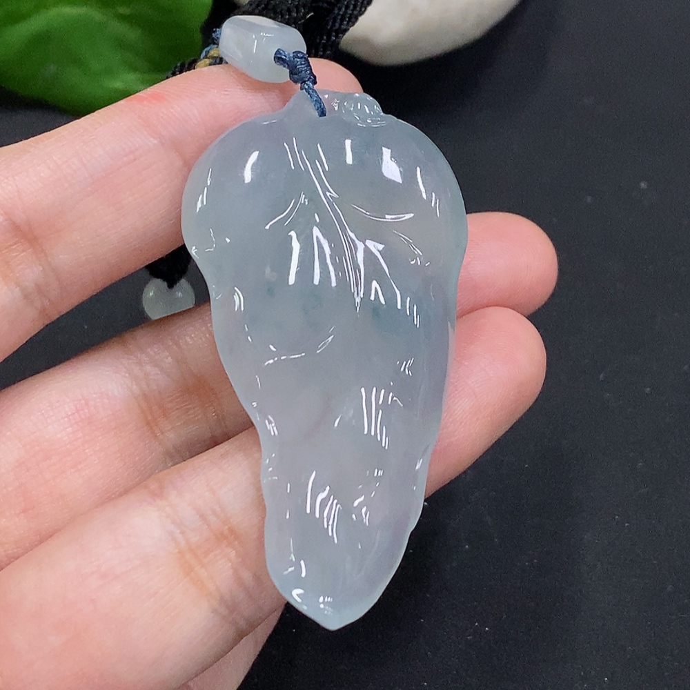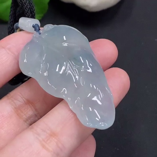 Jadeite Leaf Pendant with Cord, Total Weight Approx. 21.5g