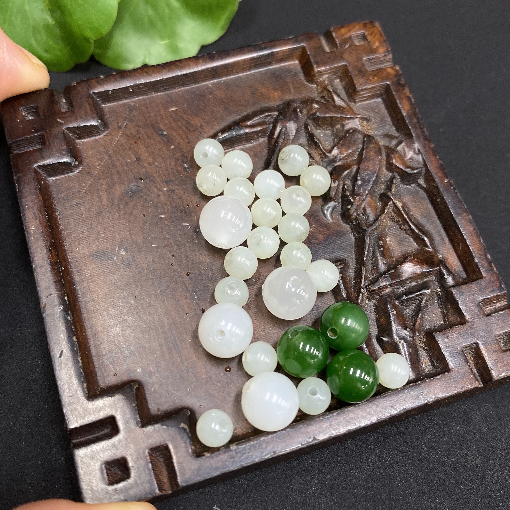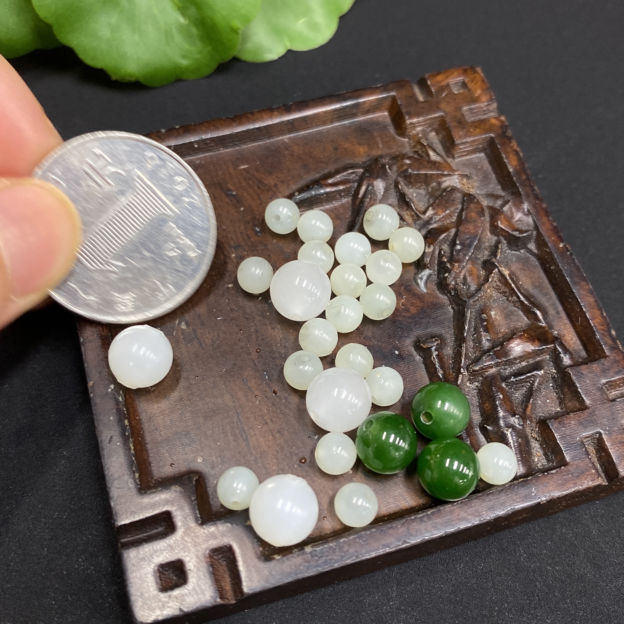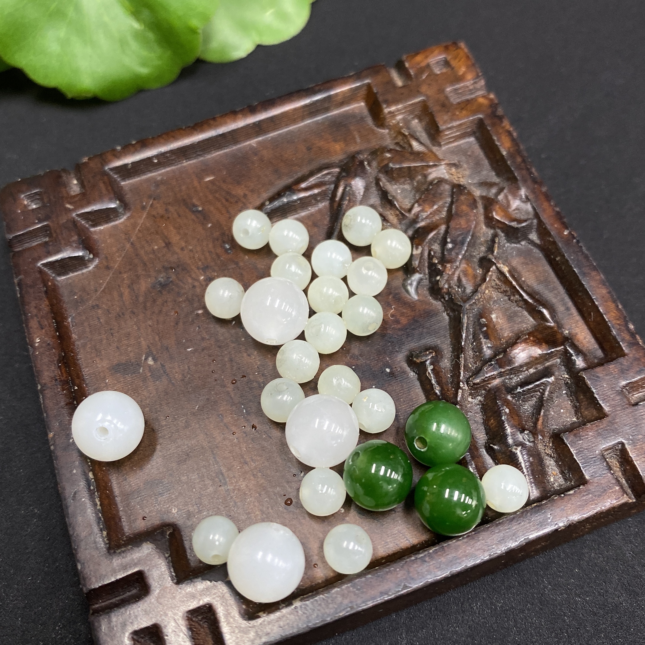 Hetian Jade Loose Beads Approx. 7.7 mm Total Weight: ~8.5g Sold as a Lot