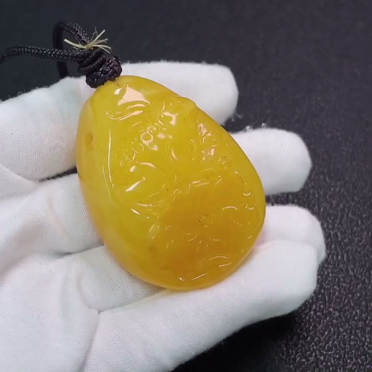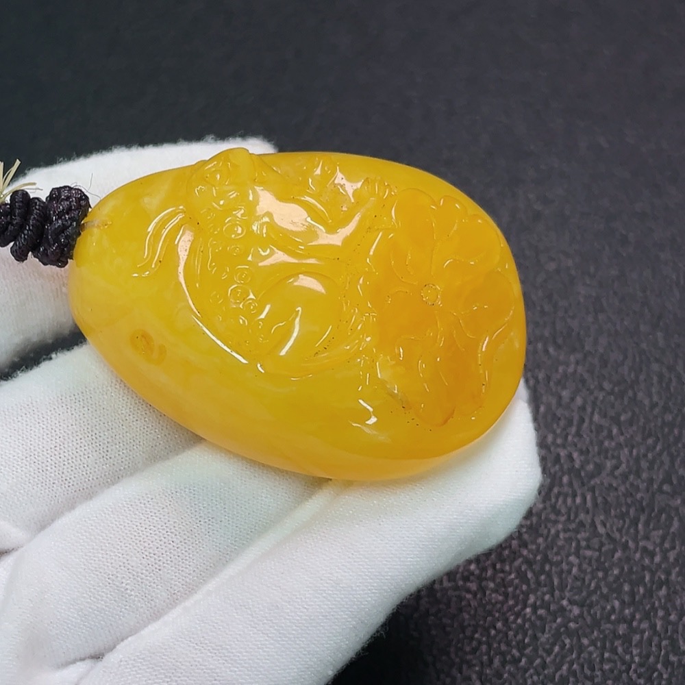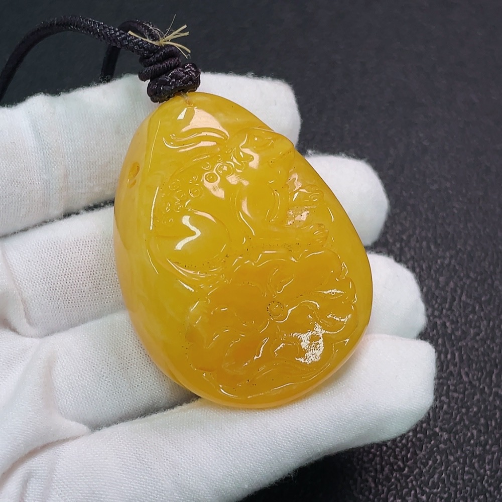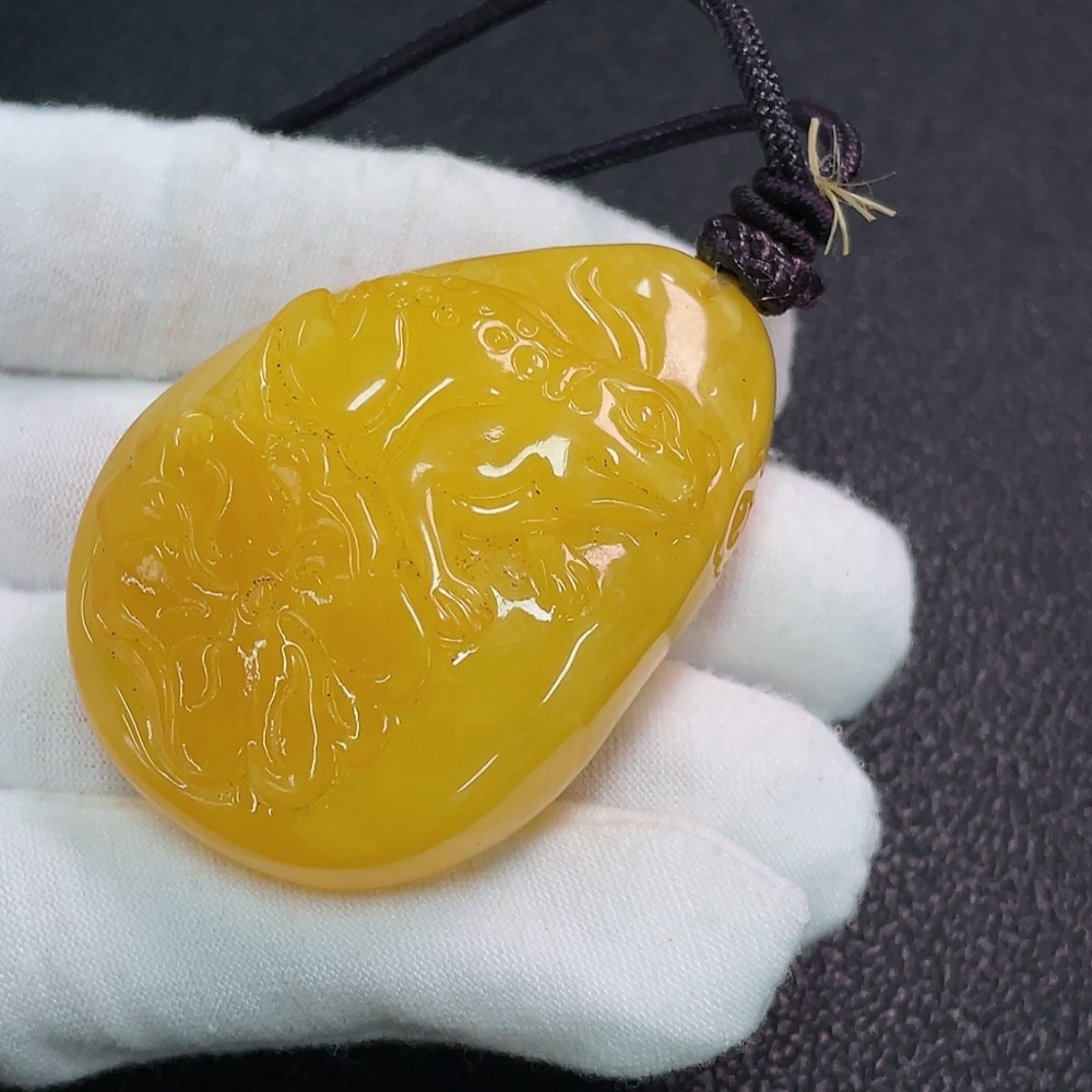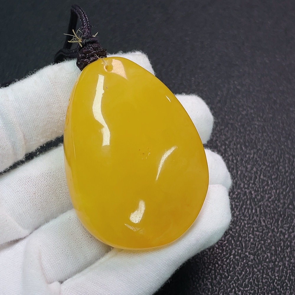Amber Beeswax Pendant Coated Partial Repair Total Weight Approx. 26.89g Including Rope