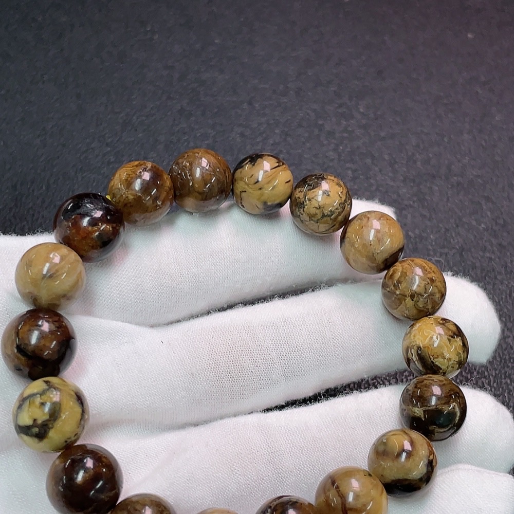 Amber Beeswax Bracelet with Other Mineral Components, Total Weight Approx. 19.01g, Bead Size About 11.8mm