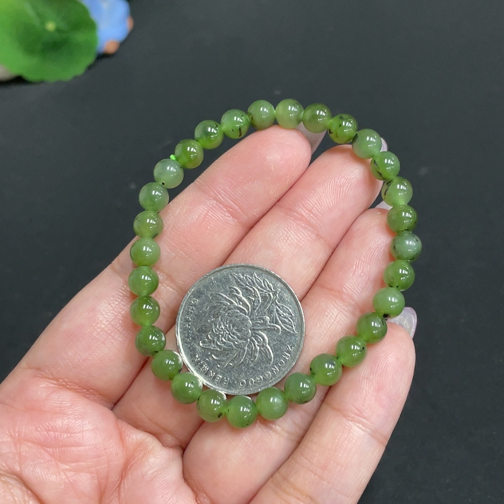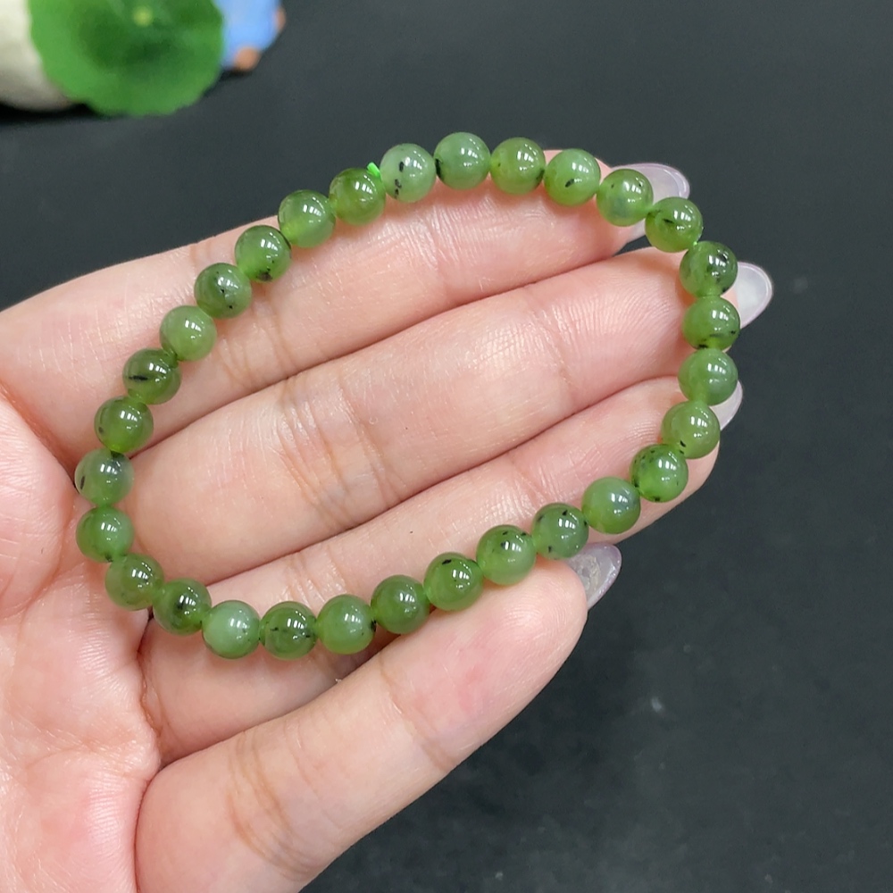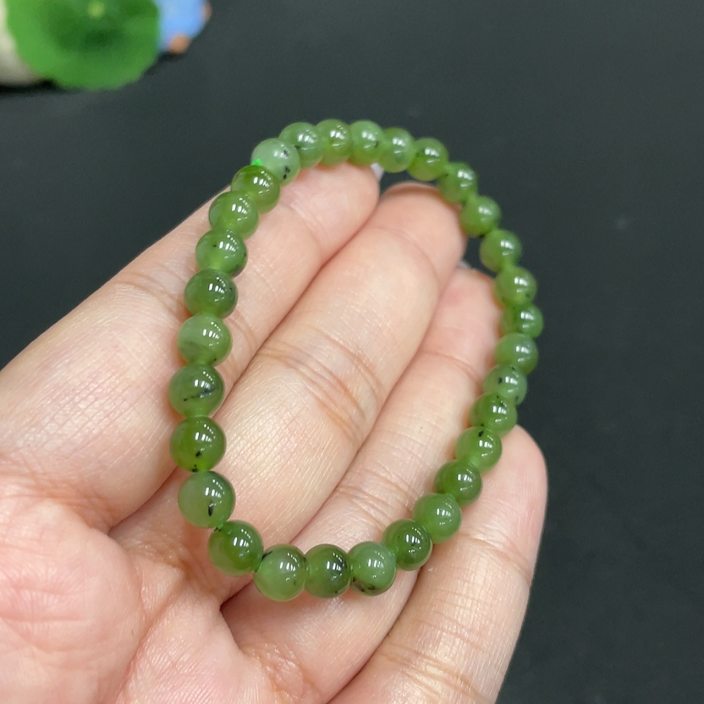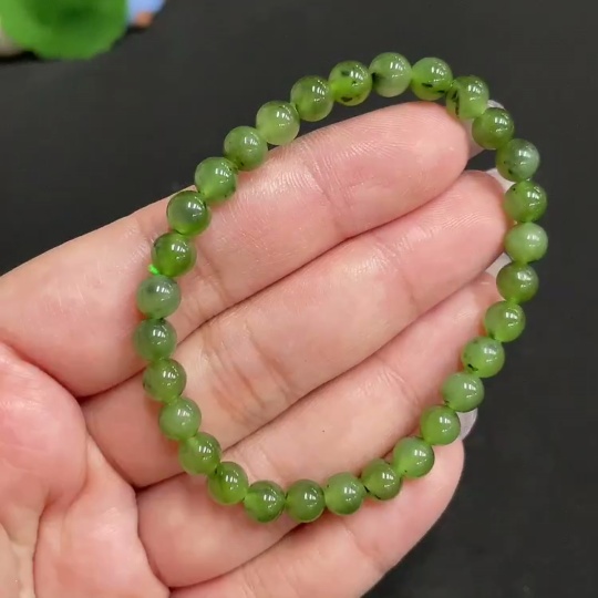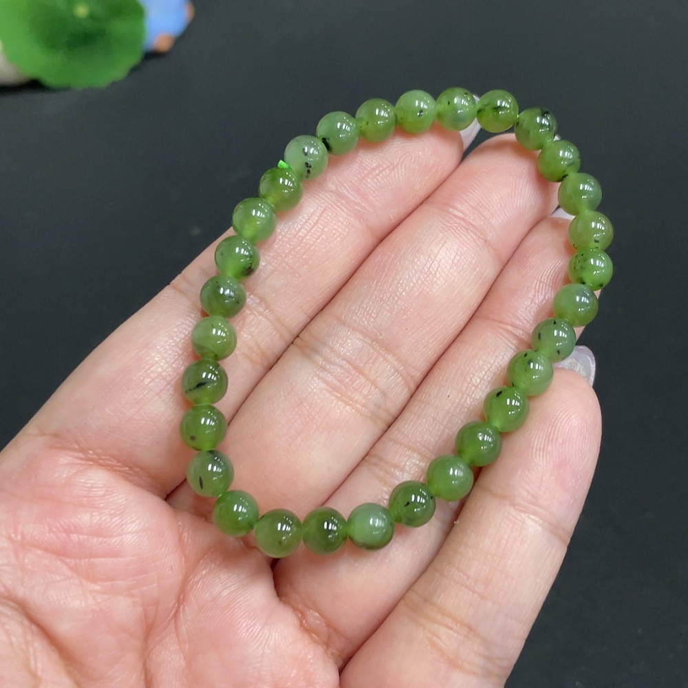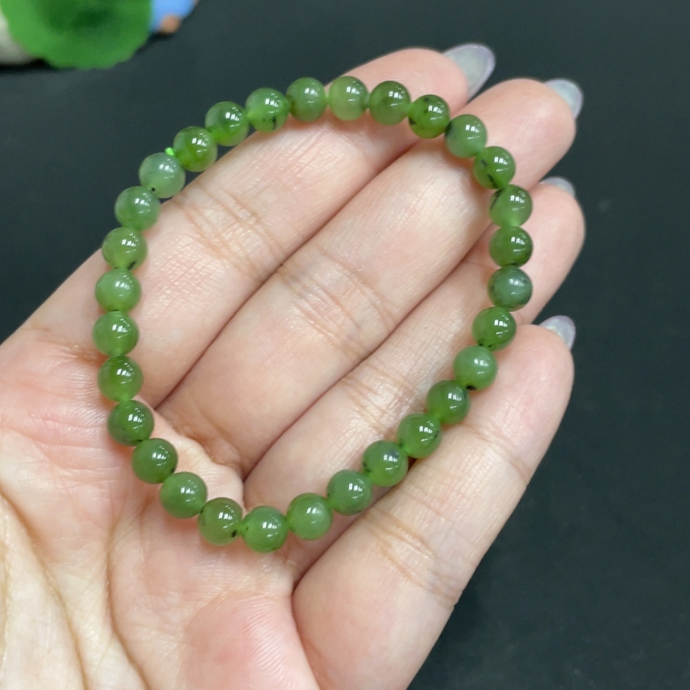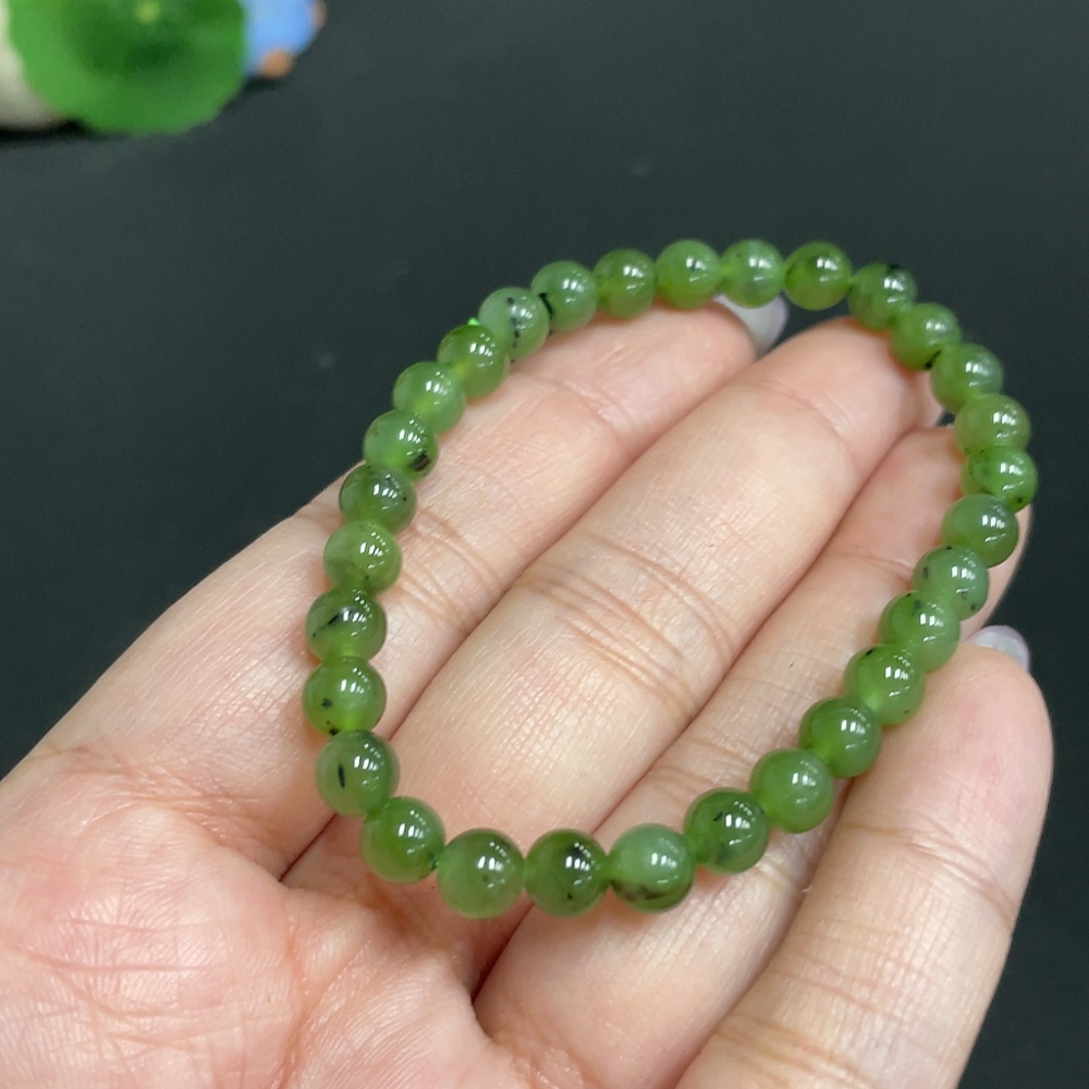 Hetian Jade Bracelet, approx. 5.7 mm beads, total weight about 9.5g