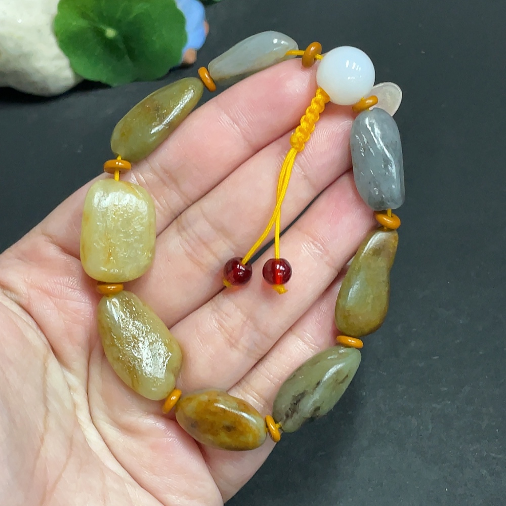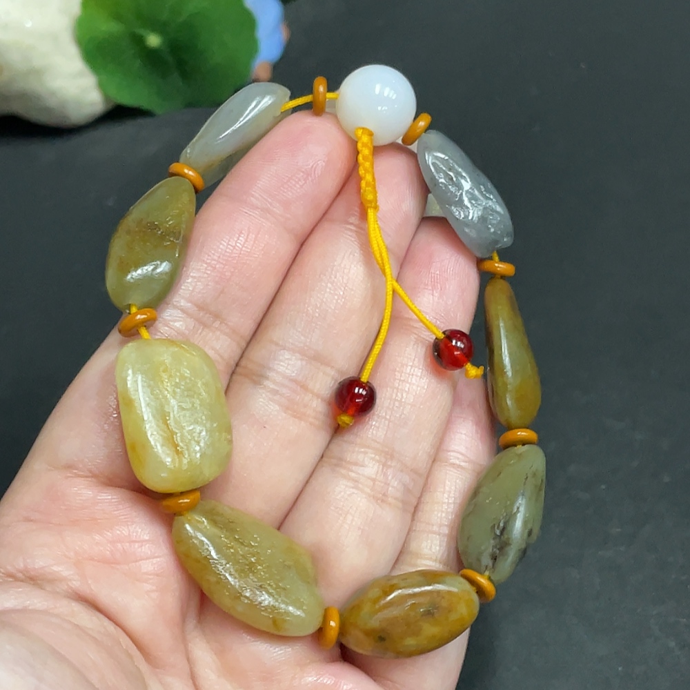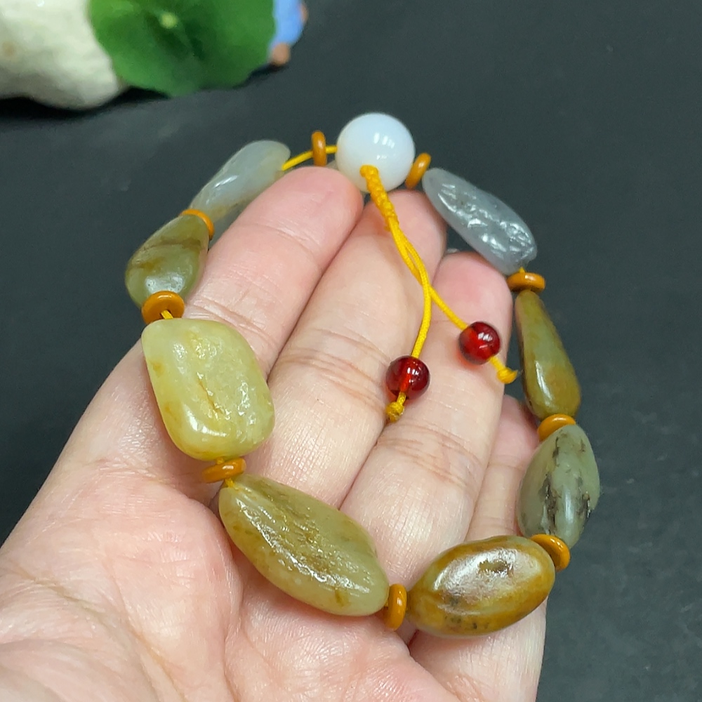 Hetian Jade Bracelet with Other Mineral Components, Undetermined Skin Color Origin, Total Weight Approx. 34.9g