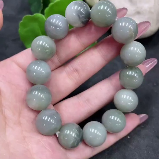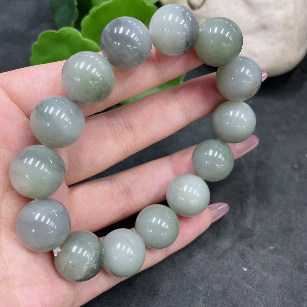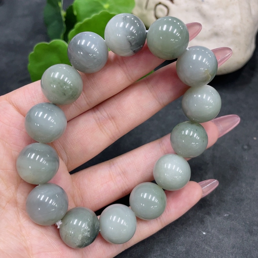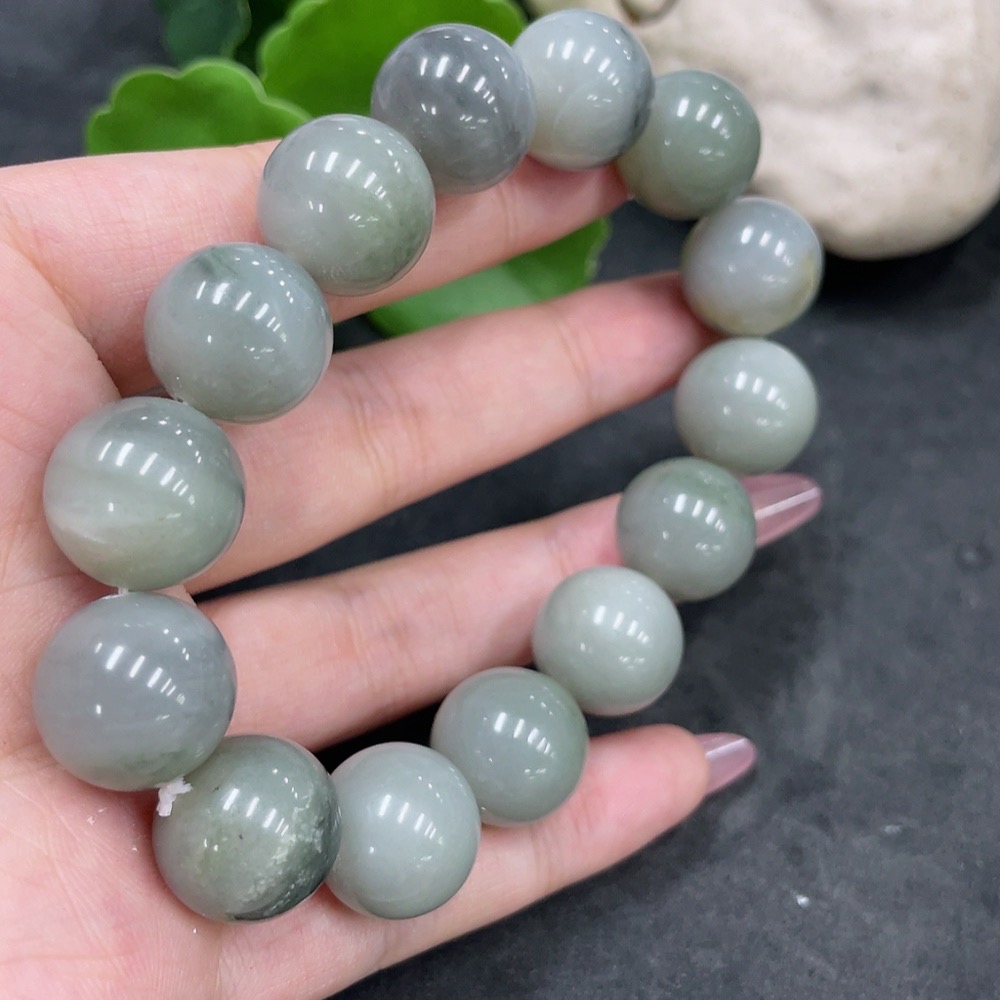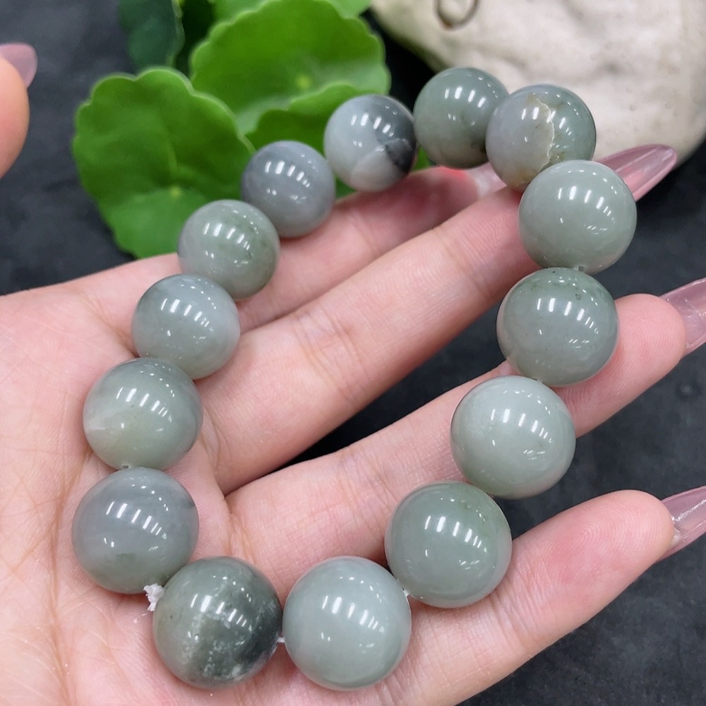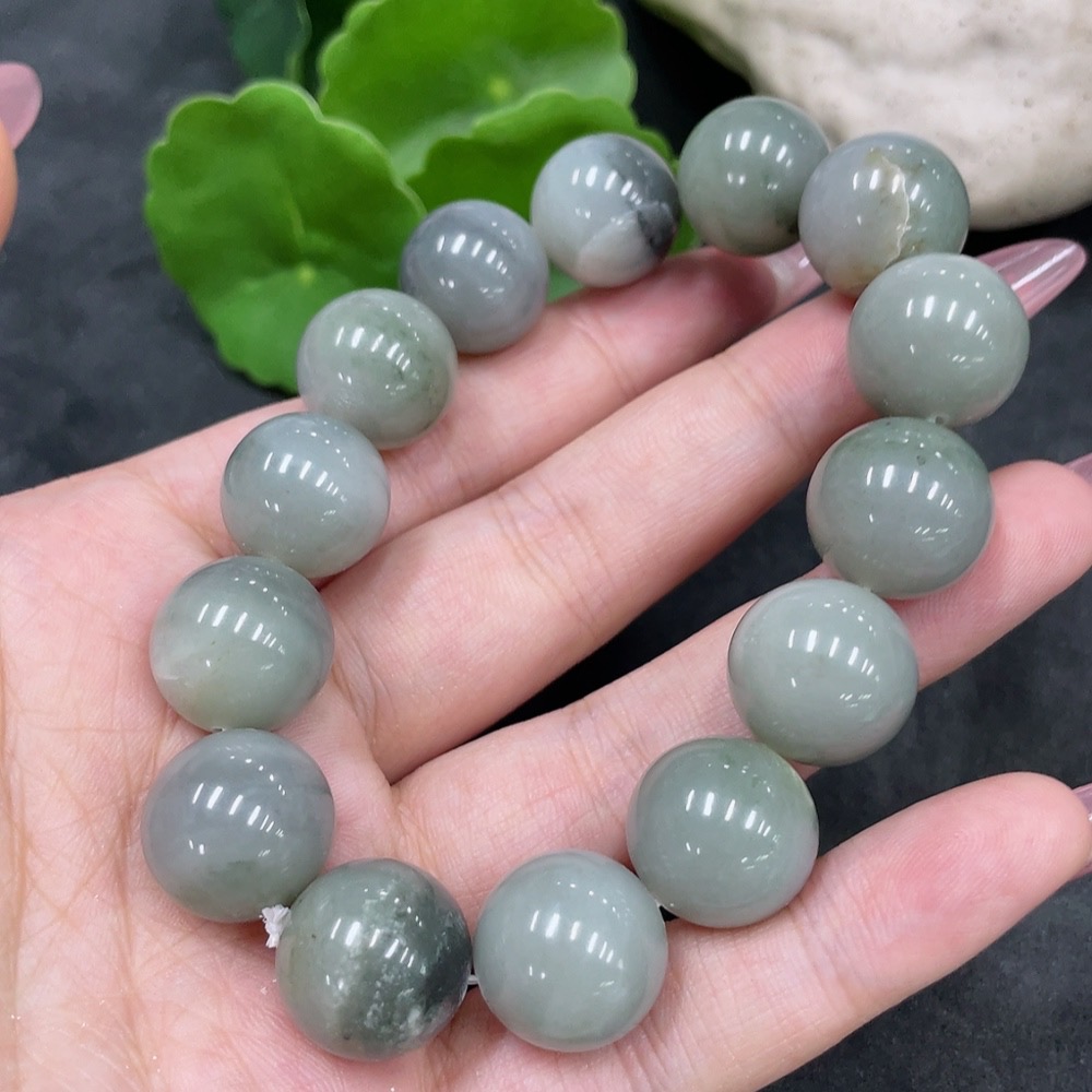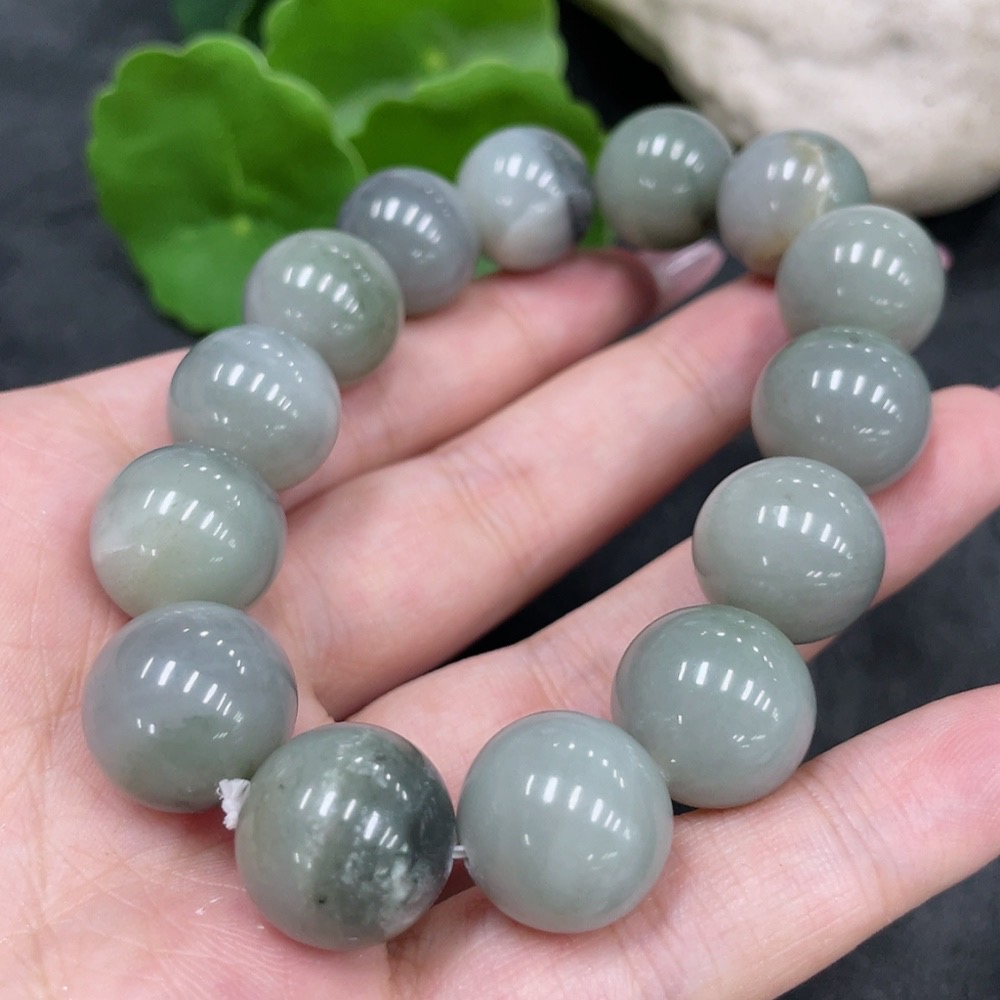Hetian Jade Bracelet, approx. 15mm beads, containing other mineral components, total weight approx. 74g