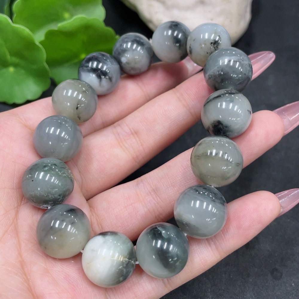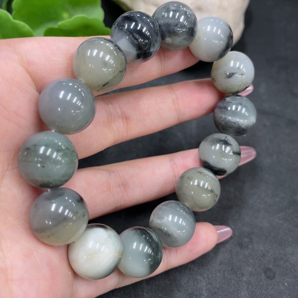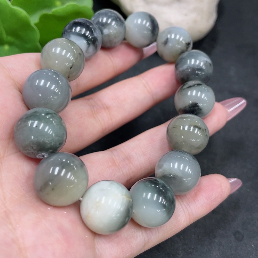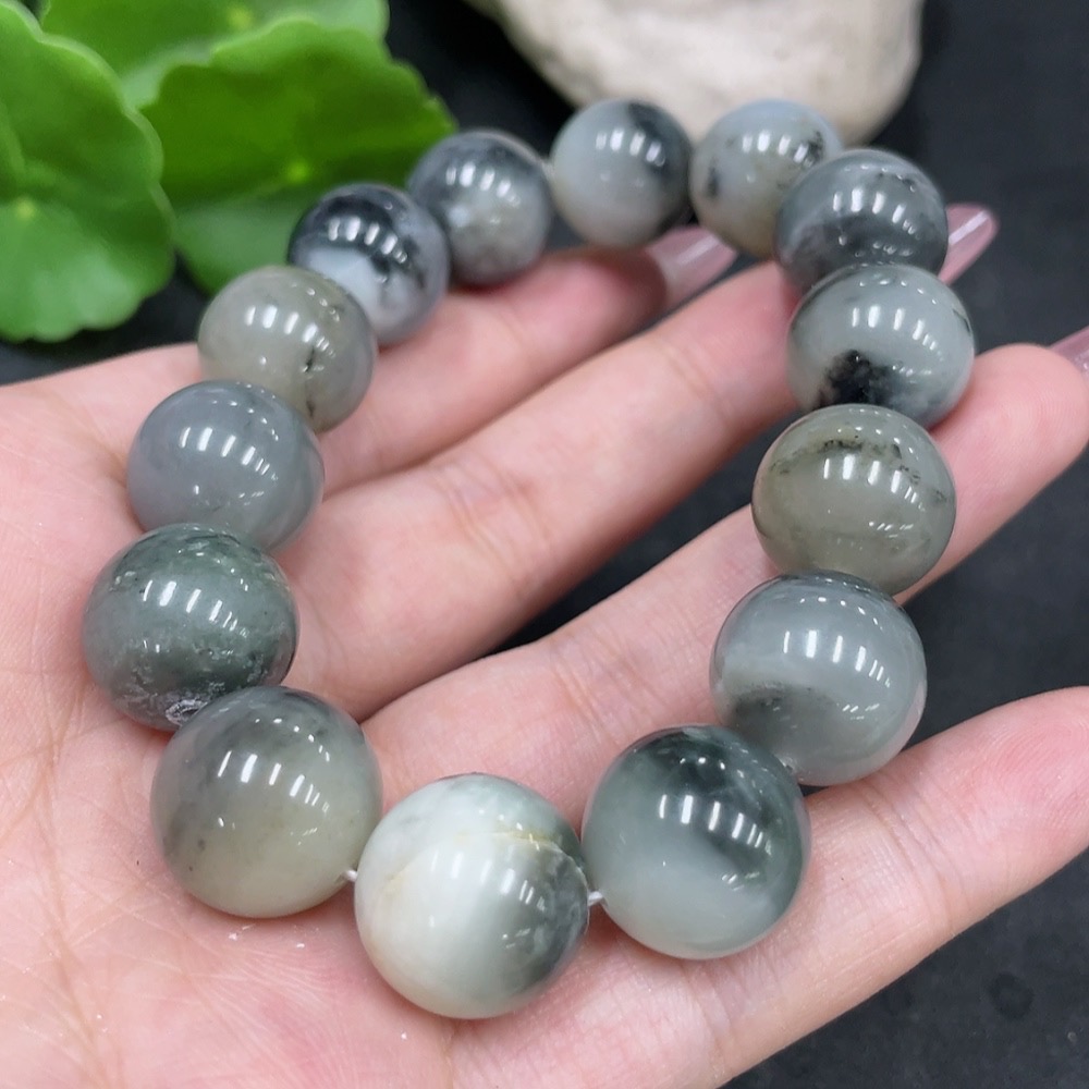Hetian Jade Bracelet, approx. 14.8mm beads, containing other mineral components, total weight approx. 74.3g