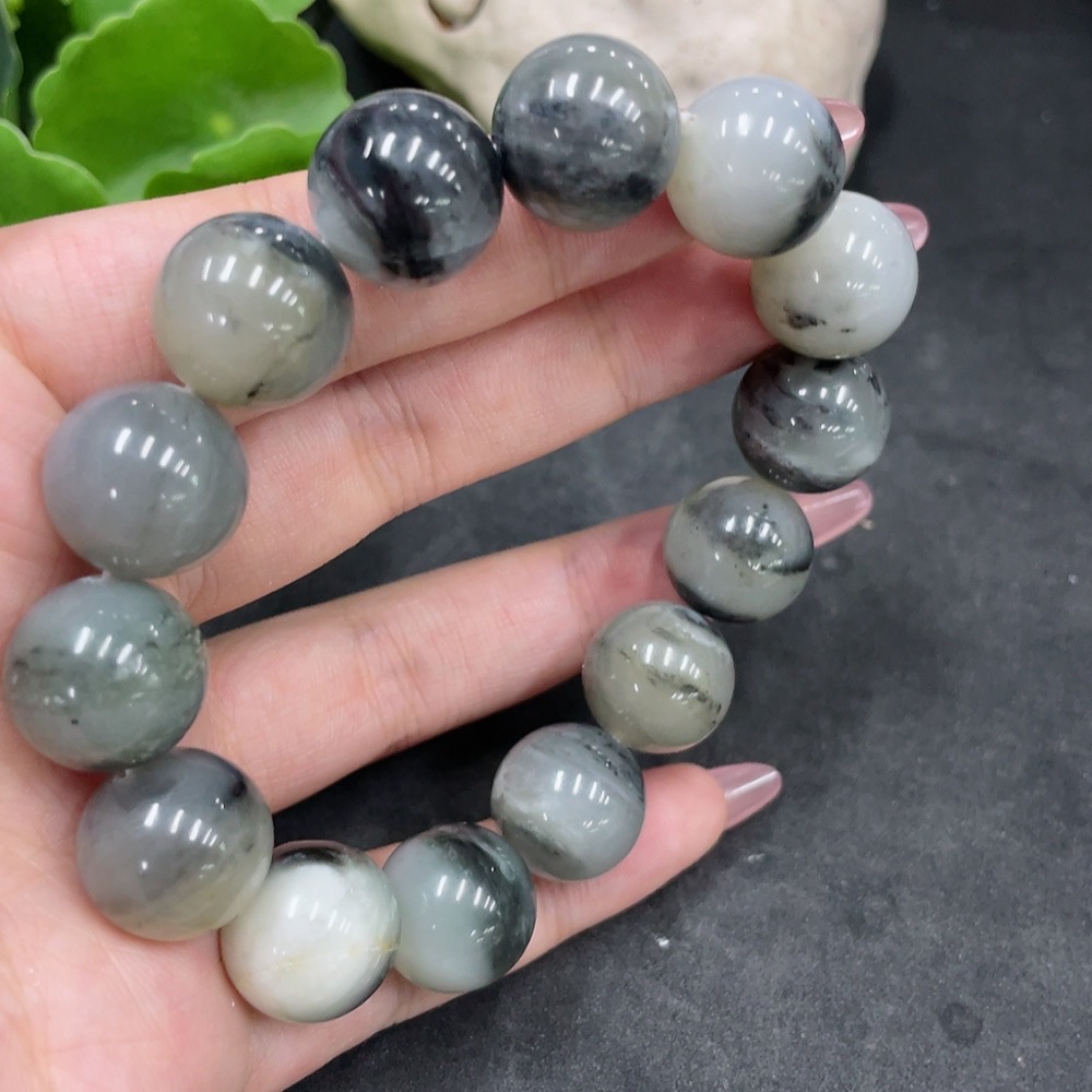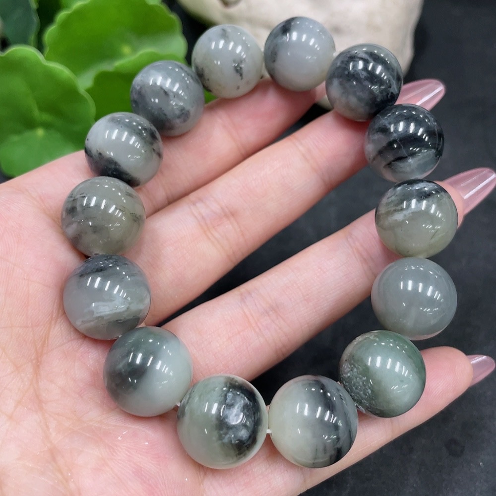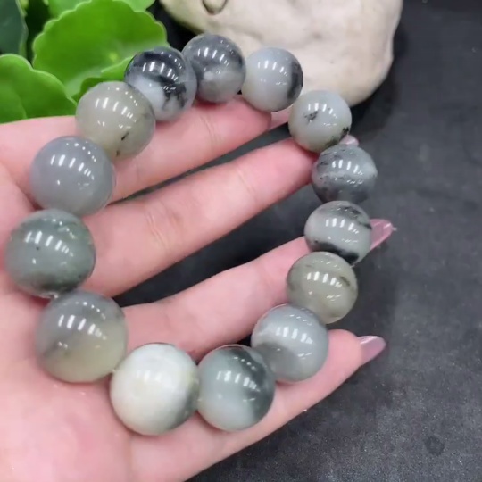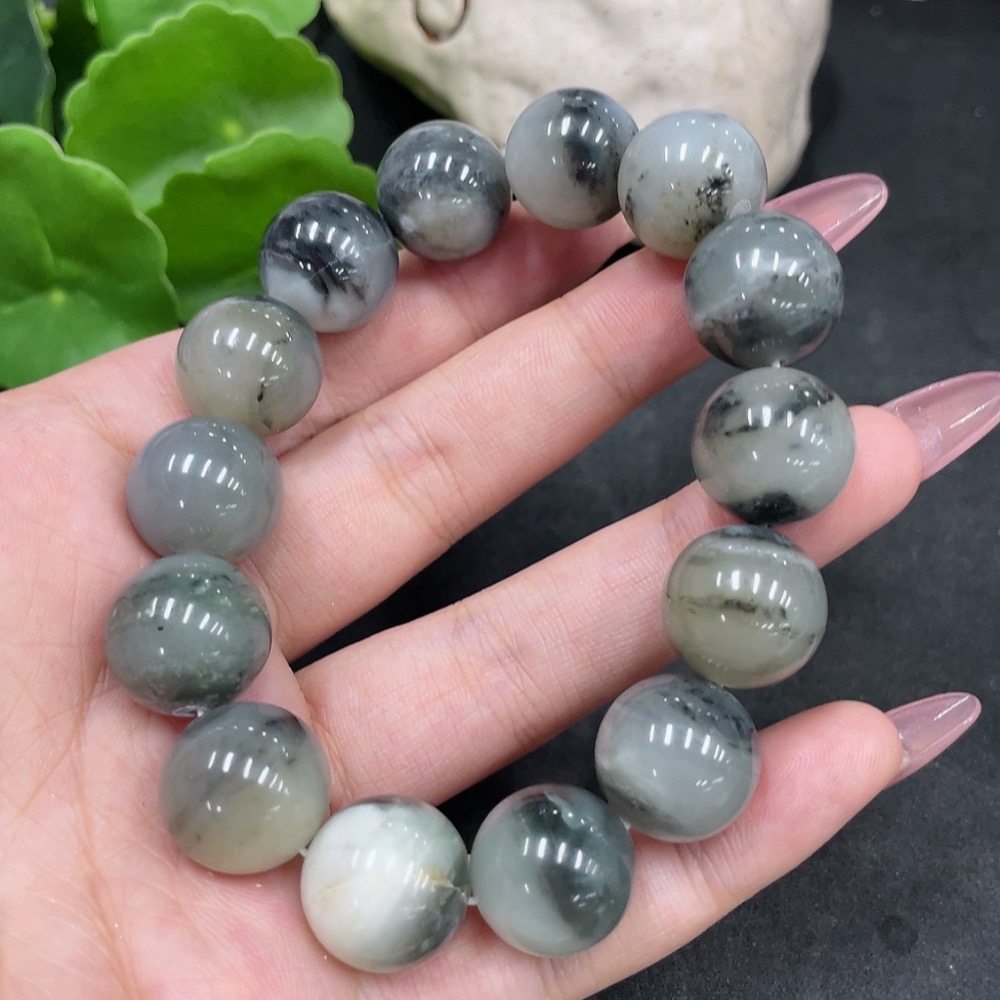 Hetian Jade Bracelet, approx. 14.8mm beads, containing other mineral components, total weight approx. 74.3g