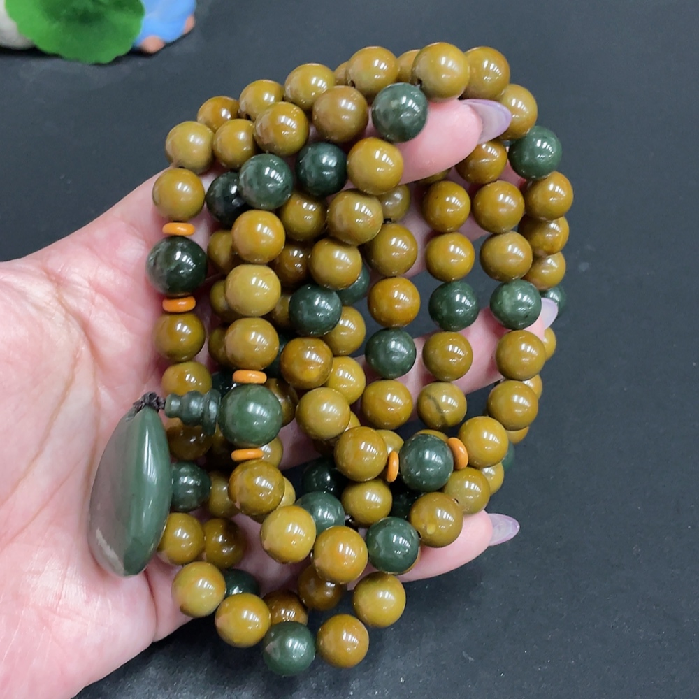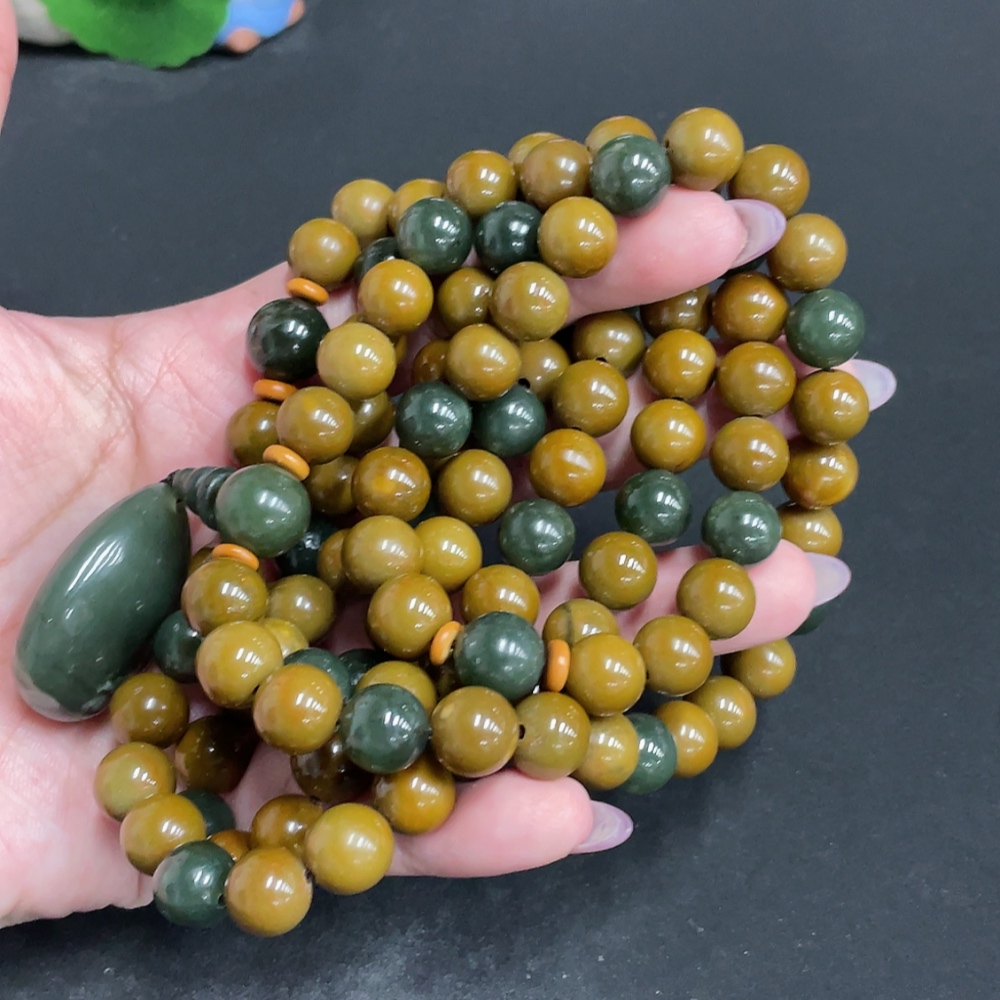 Hetian Jade Bead Necklace (approx. 9.5mm, total weight about 193.2g, color origin undetermined)