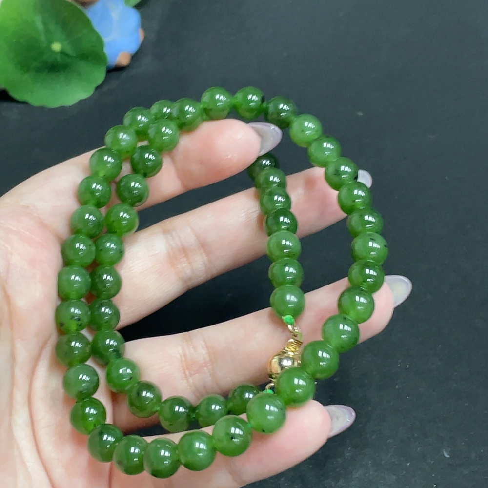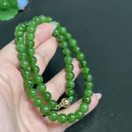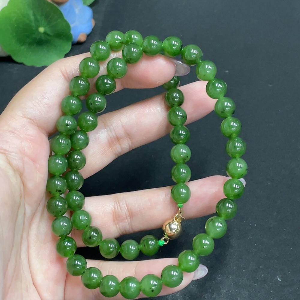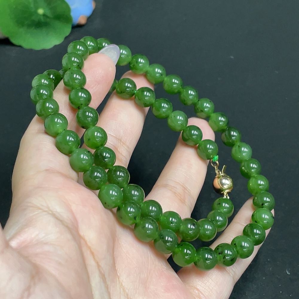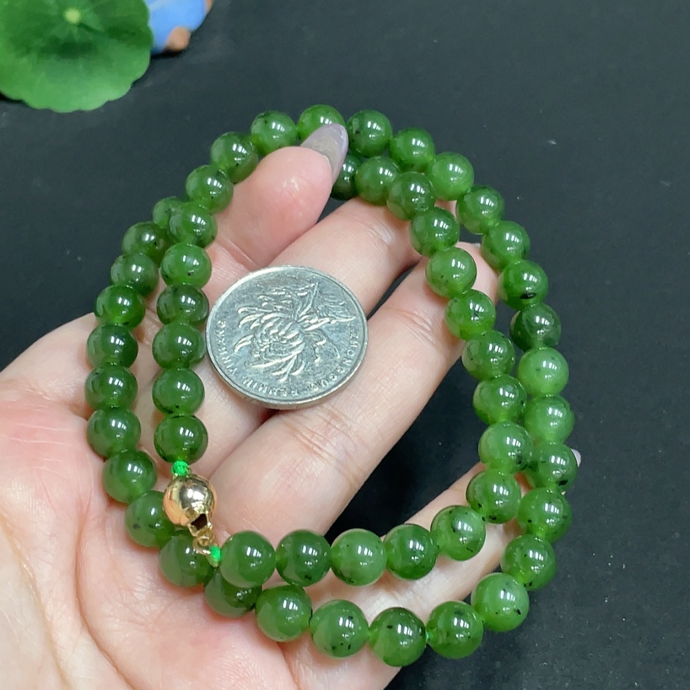 Hetian Jade Bead Necklace, Approx. 8mm, Total Weight About 48.3g, Non-Gold